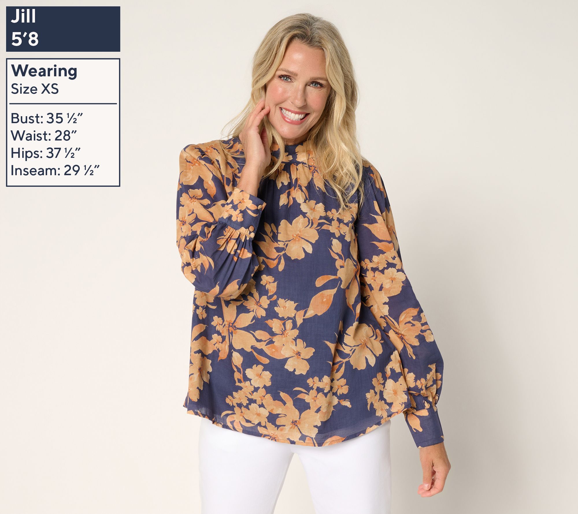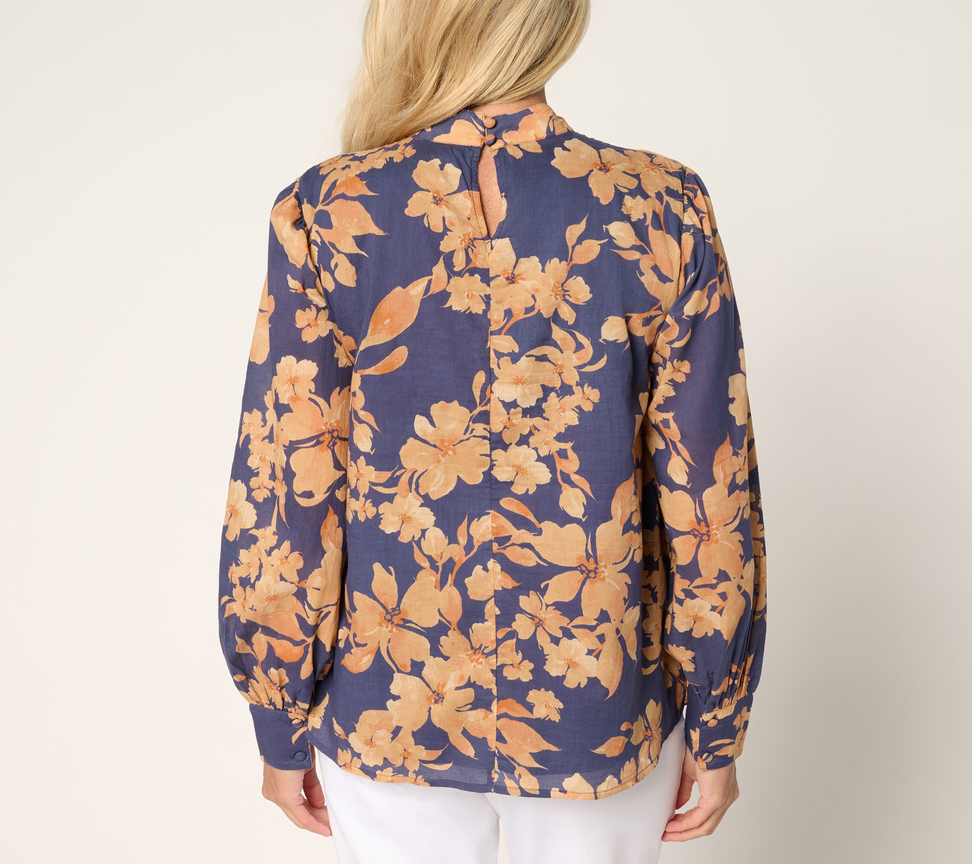 Let your confidence shine in this stunning 100% cotton blouse. A polished print, blouson sleeves, and a coverage-providing neckline create an effortlessly on-point look, whether you're at your desk or heading out for coffee. From BEAUTIFUL by Lawrence Zarian.