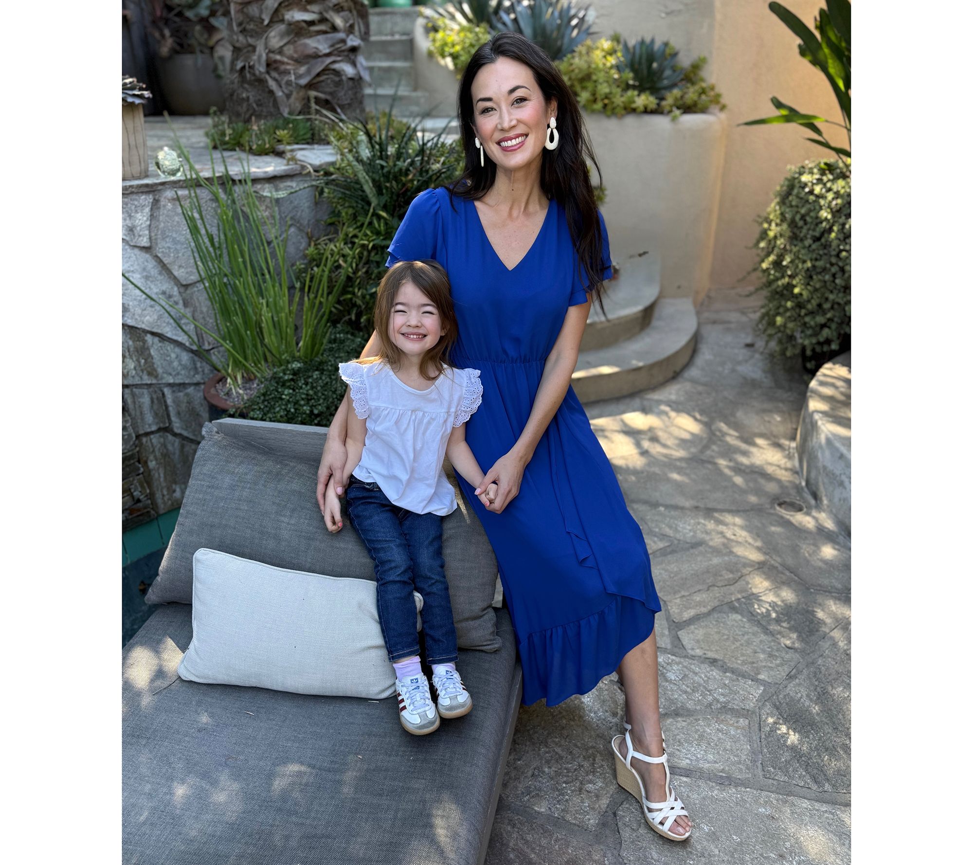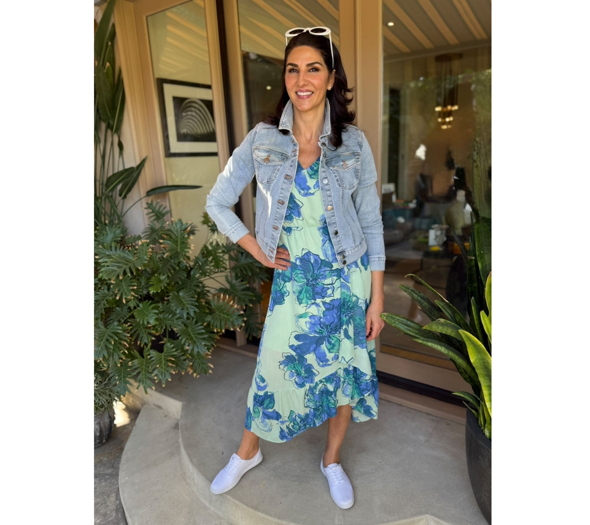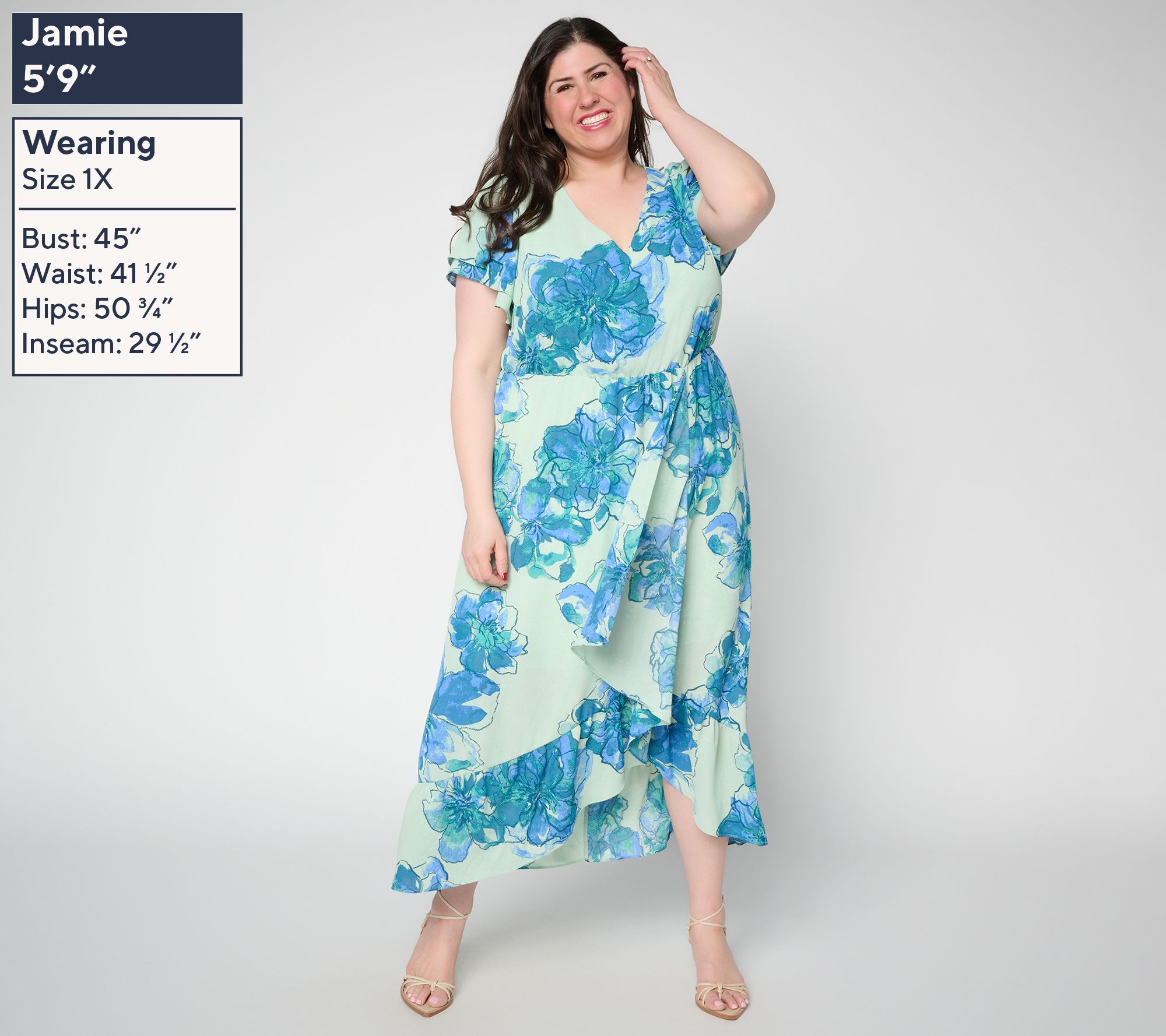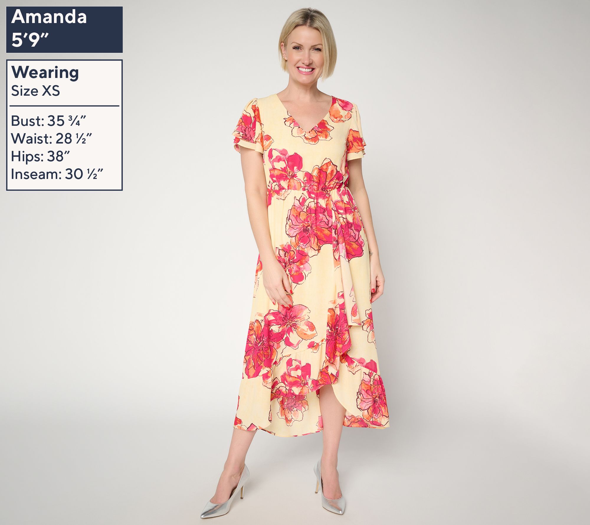 Dreamy fabrication and flutter sleeves make this maxi dress an inspired choice for family celebrations, garden parties, or dinners out. The faux-wrap silhouette, shirring at the shoulder, and a flounce hem offer graceful movement, while the elastic waistband brings subtle shaping and comfort to your look. From BEAUTIFUL by Lawrence Zarian.