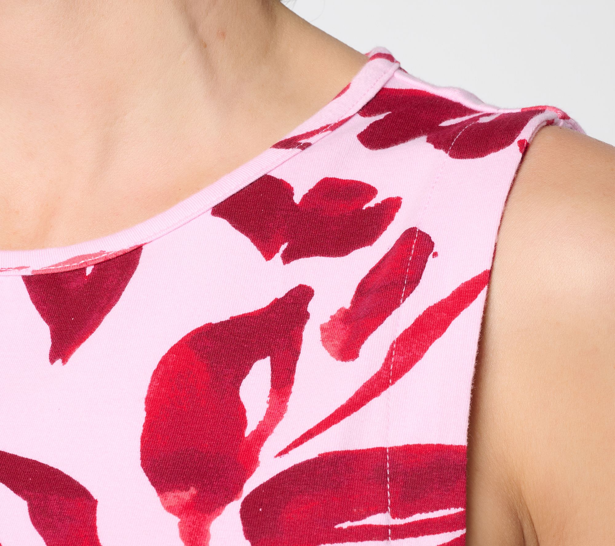 Features: print, sleeveless, crew neckline, princess seam at back, peplum at back hem