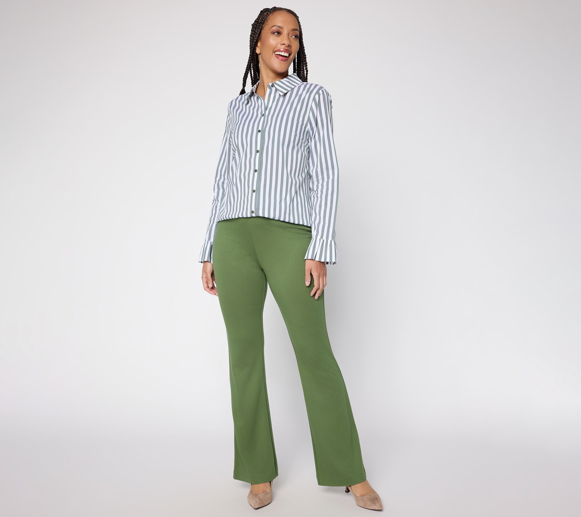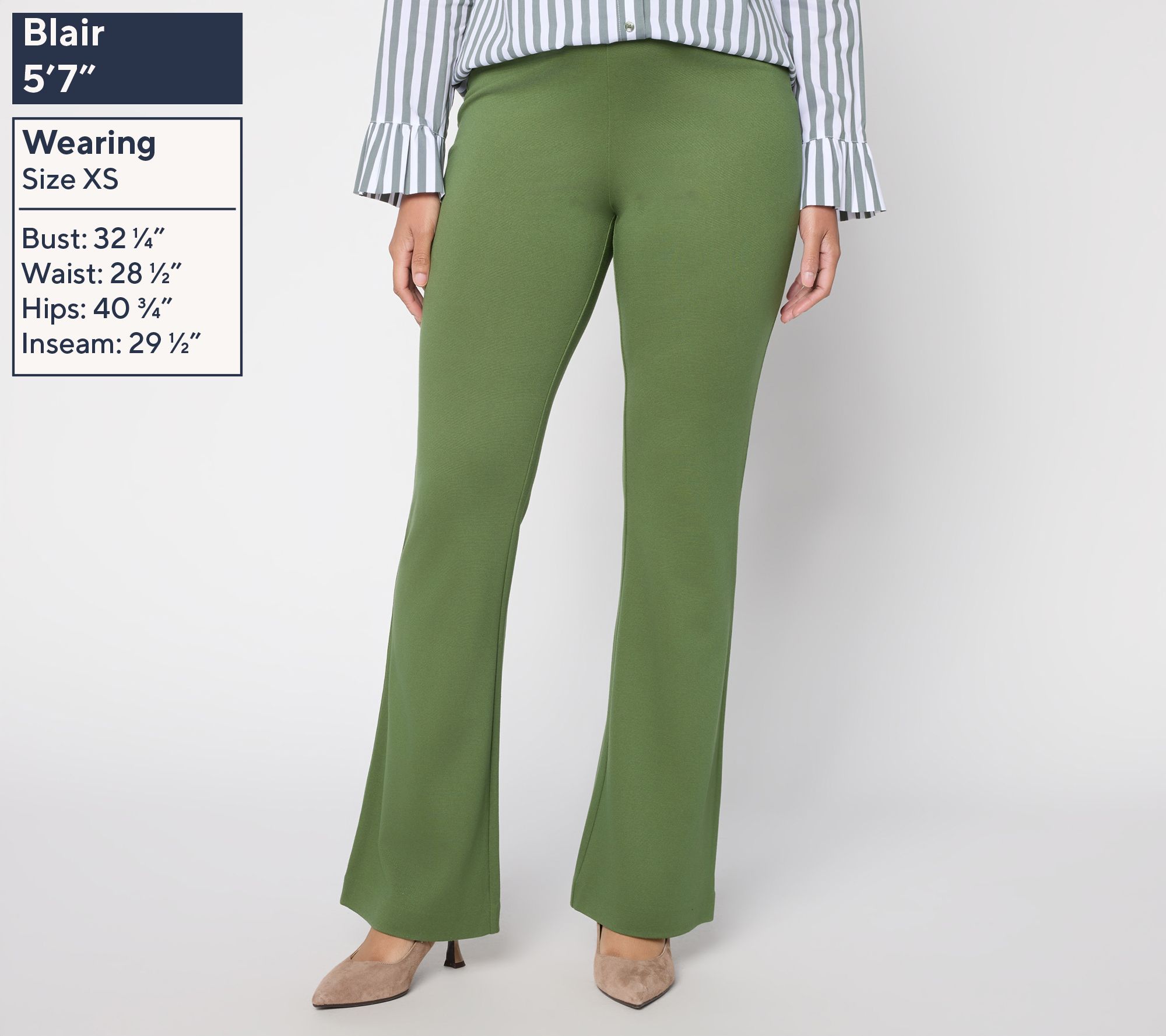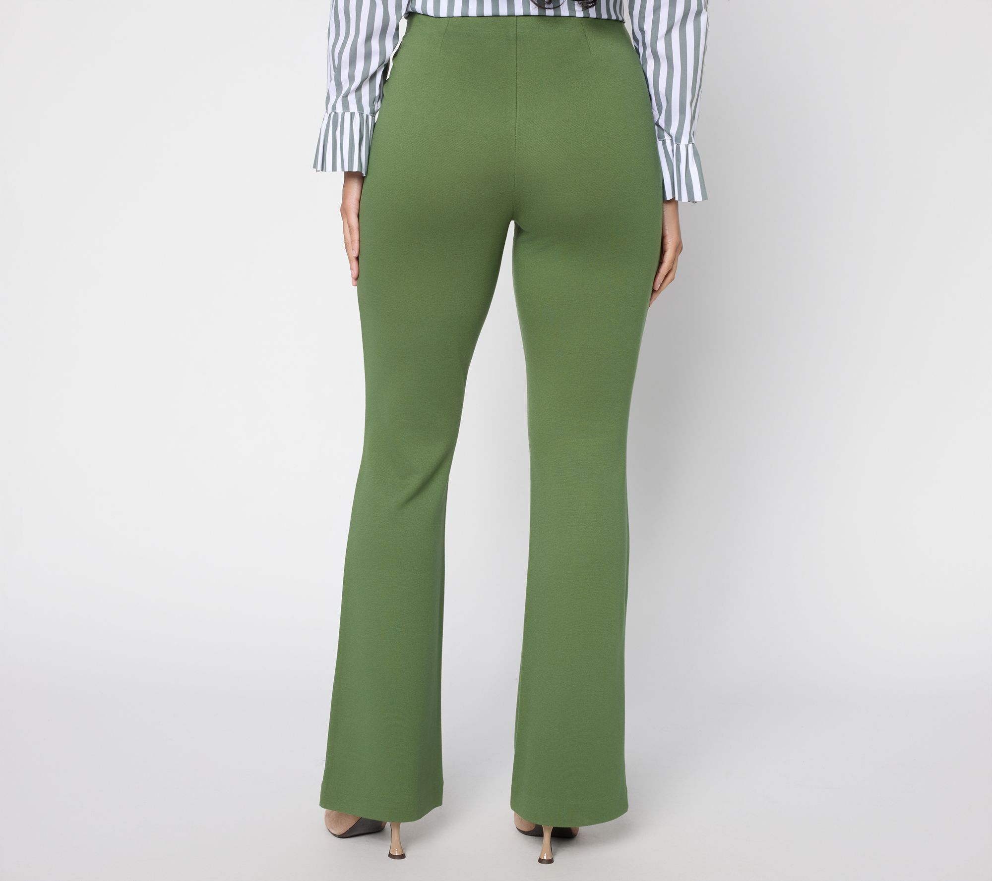 This pair's got flair! From busy office meetings to dinner plans, silky ponte skinny flare pants bring together modern style and a smooth, flattering finish. The pull-on waistband feels supportive without pinching, while the blind-hem detail and full-length leg create a refined silhouette for dressing up or down. From BEAUTIFUL by Lawrence Zarian.