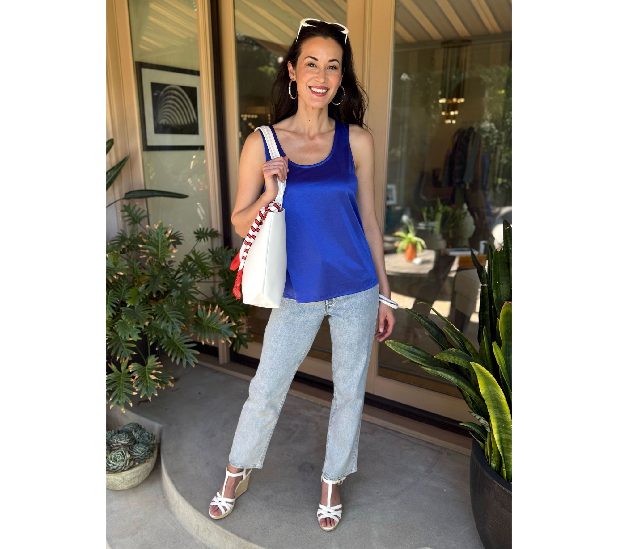 Whether you're meeting friends for coffee or layering under a blazer for work, this satin knit tank top offers a chic addition to your everyday wardrobe. The sleeveless, scoop-neck design and gently flared hem keep the look effortless and versatile enough for any occasion. From BEAUTIFUL by Lawrence Zarian.