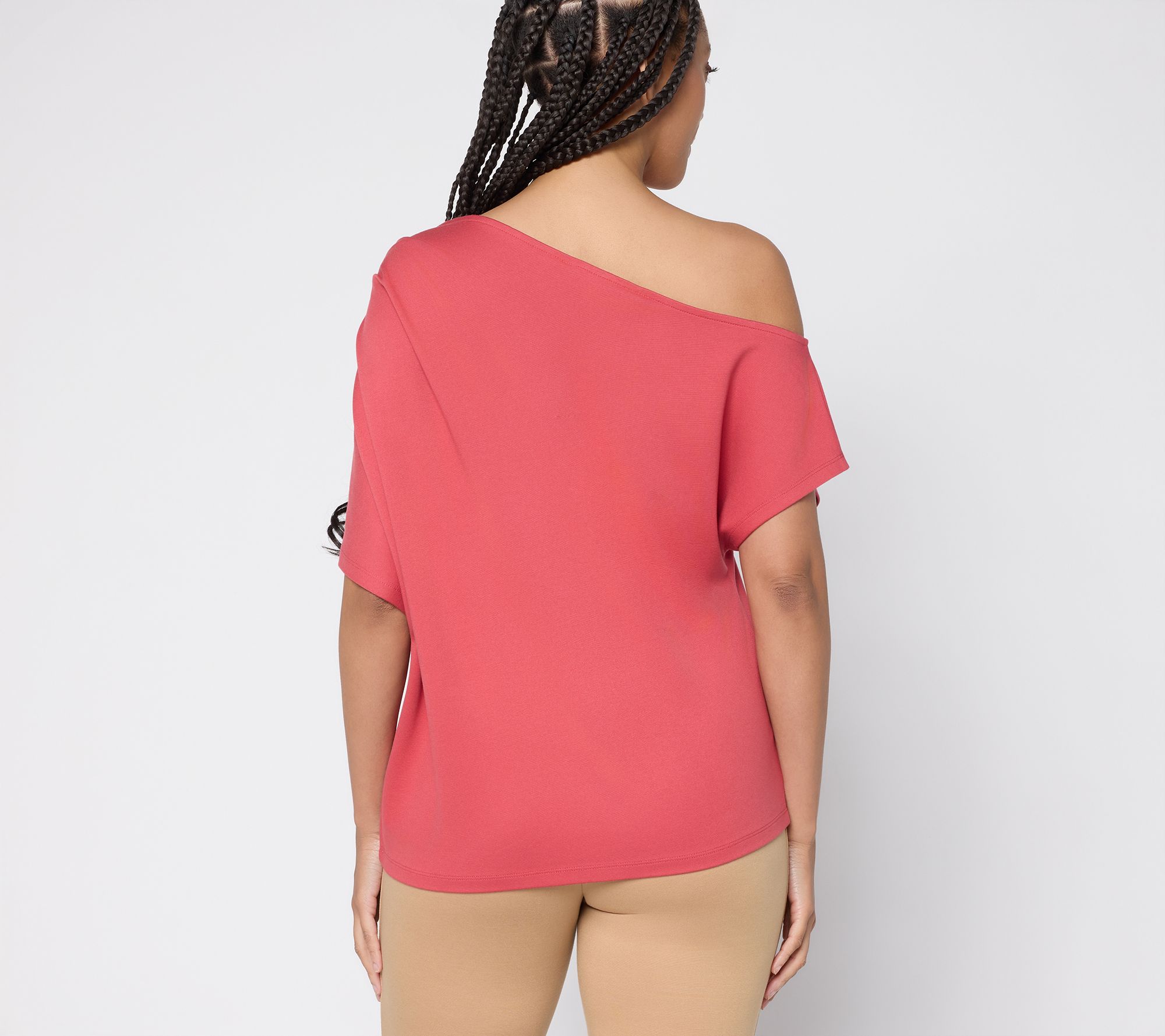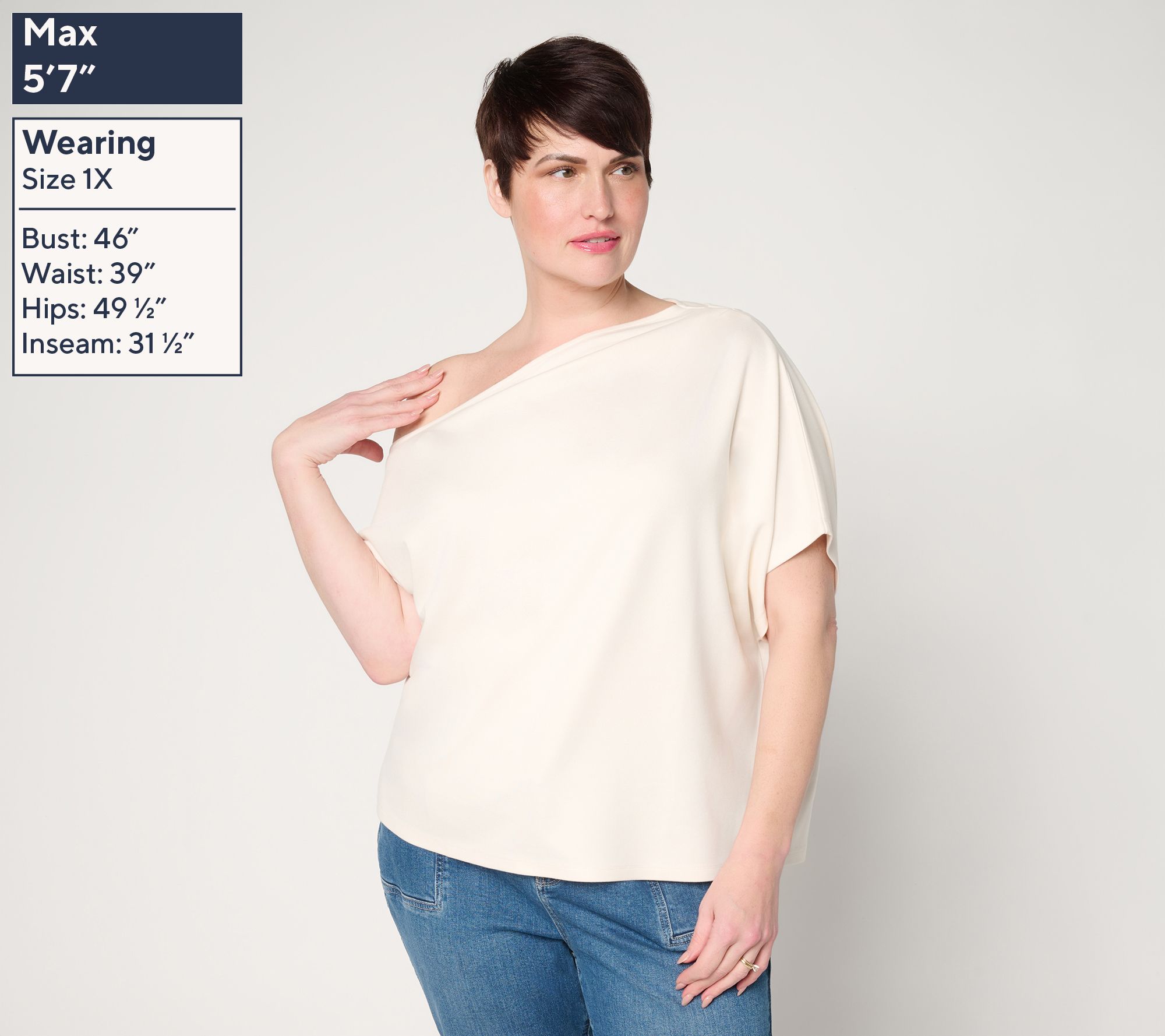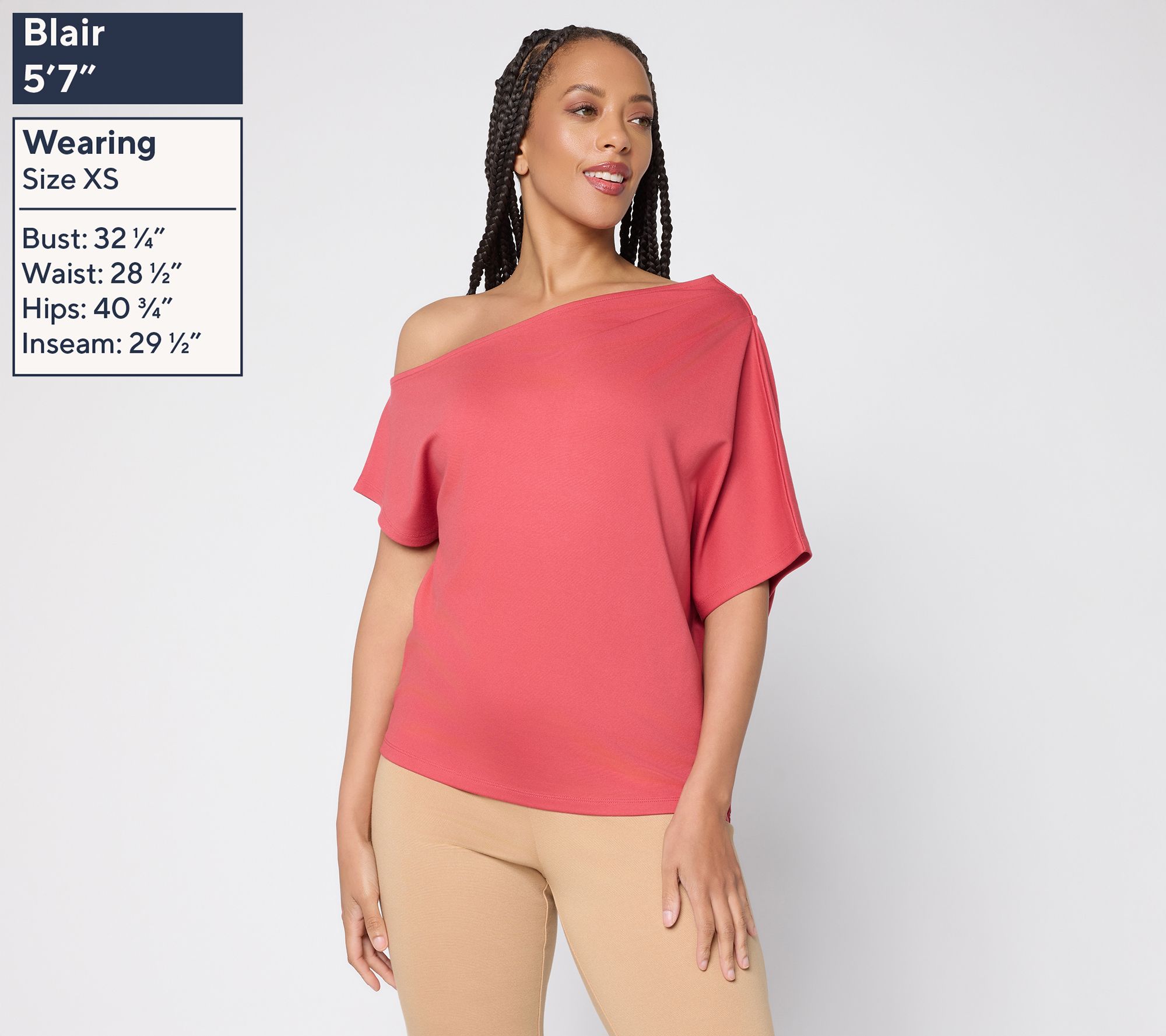 All eyes on you! Heading to an event or catching up with friends, this silky ponte pleated top brings a modern edge to your look with its off-the-shoulder design and chic dolman sleeves. From BEAUTIFUL by Lawrence Zarian.