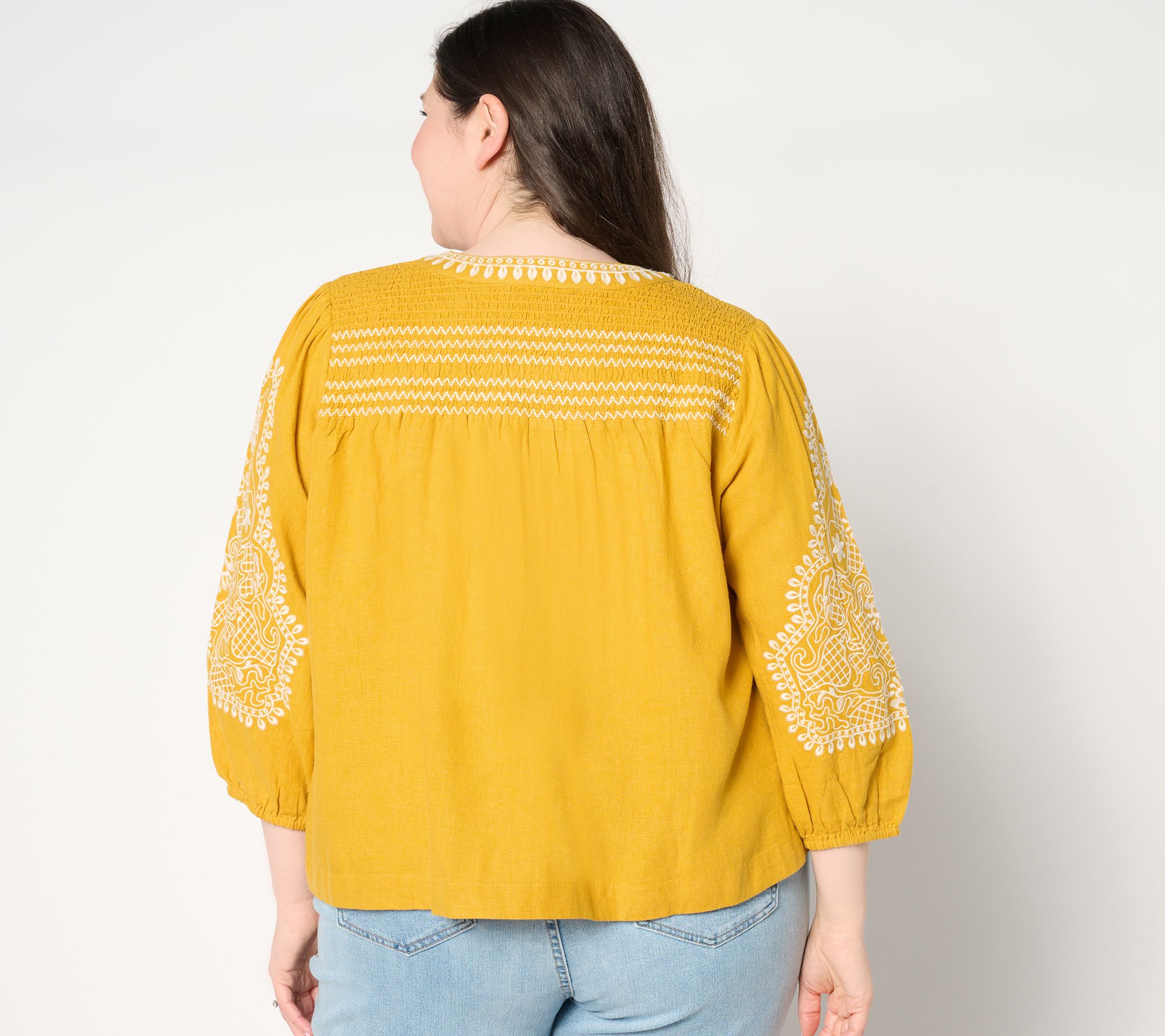 It just wouldn't be summer without something lightweight and linen! Top off your tees, tanks, and sleeveless tops with this boutique-style jacket, featuring a breezy linen-blend feel and trend-fresh embroidery. From BEAUTIFUL by Lawrence Zarian.