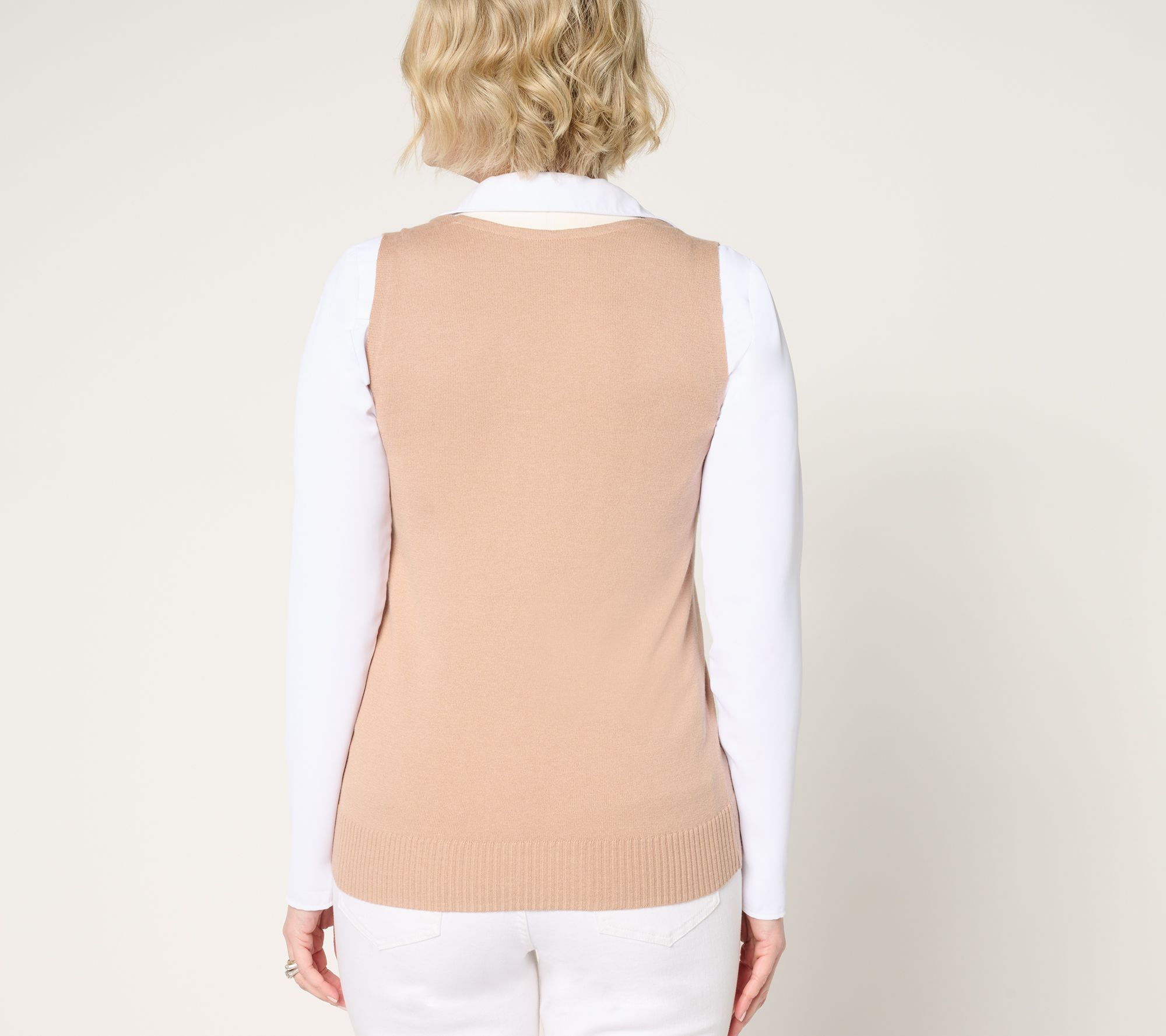 Perfect for layering, this distinctive sweater vest adds a touch of sophistication with contrast trim and a button placket. From BEAUTIFUL by Lawrence Zarian.