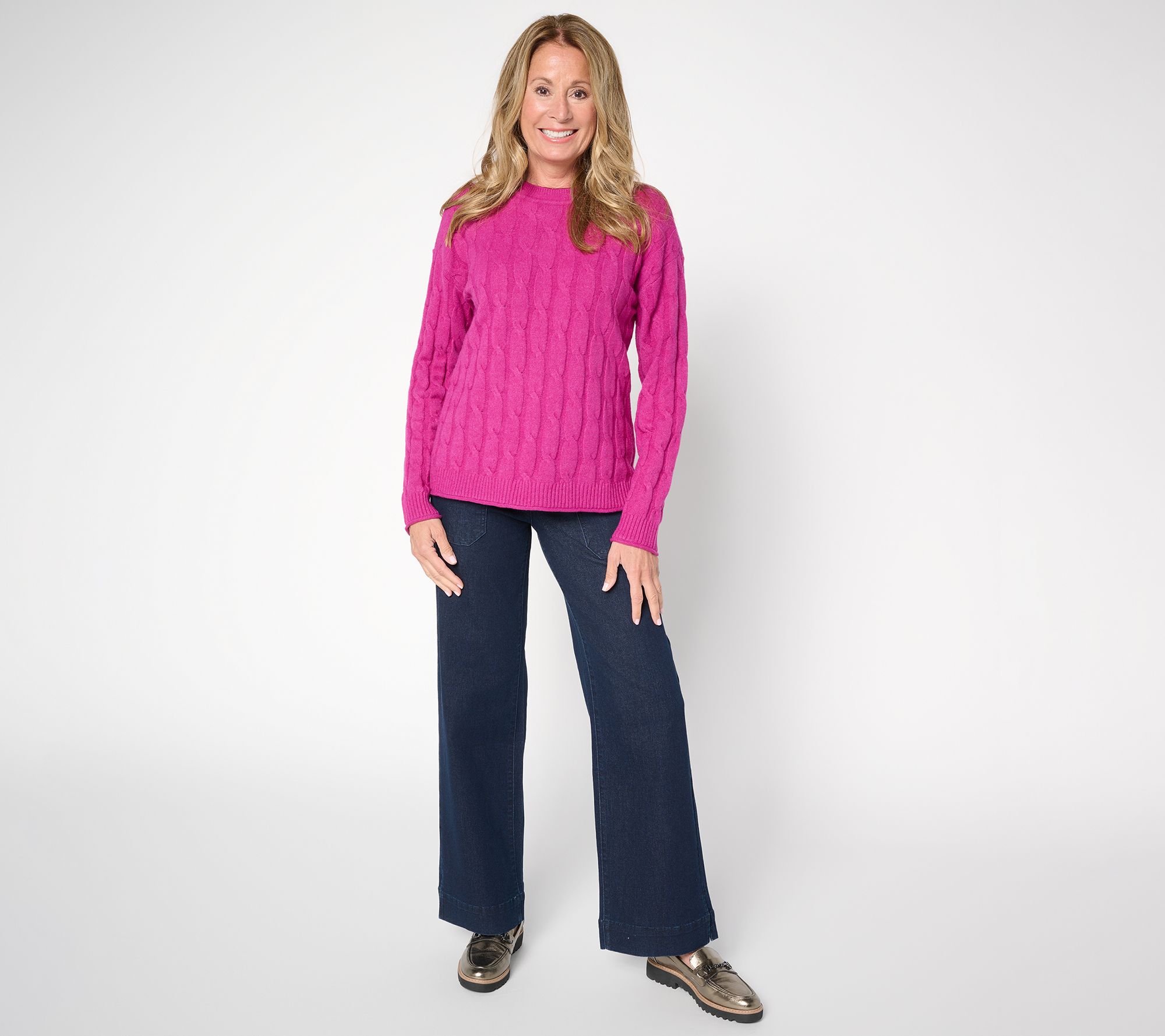 This classic cable-stitch sweater is a cozy choice for everyday. Pair it with anything from dress pants to jeans to a skirt to achieve a smart look you'll love. From BEAUTIFUL by Lawrence Zarian.