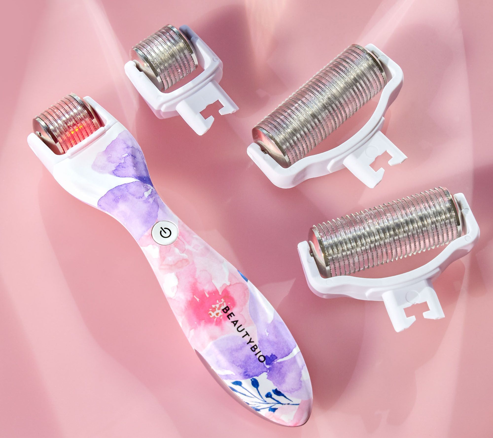 BeautyBio GloPRO is a patented facial tool with interchangeable attachments designed to help exfoliate the skin by removing dead skin cells to help brighten its appearance, to improve the appearance of fine lines and wrinkles, and to help skin appear firmer, more luminous, and refined.