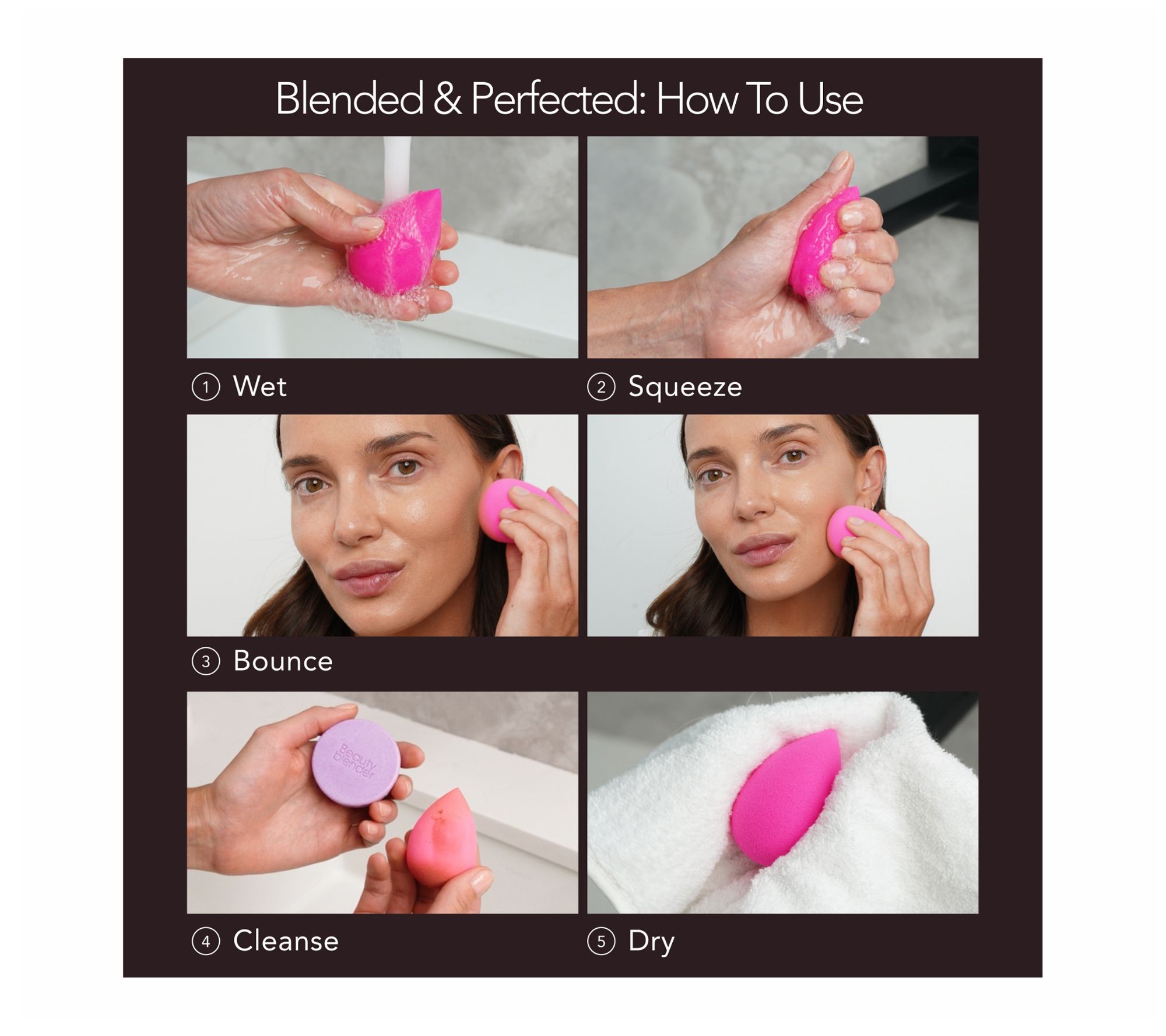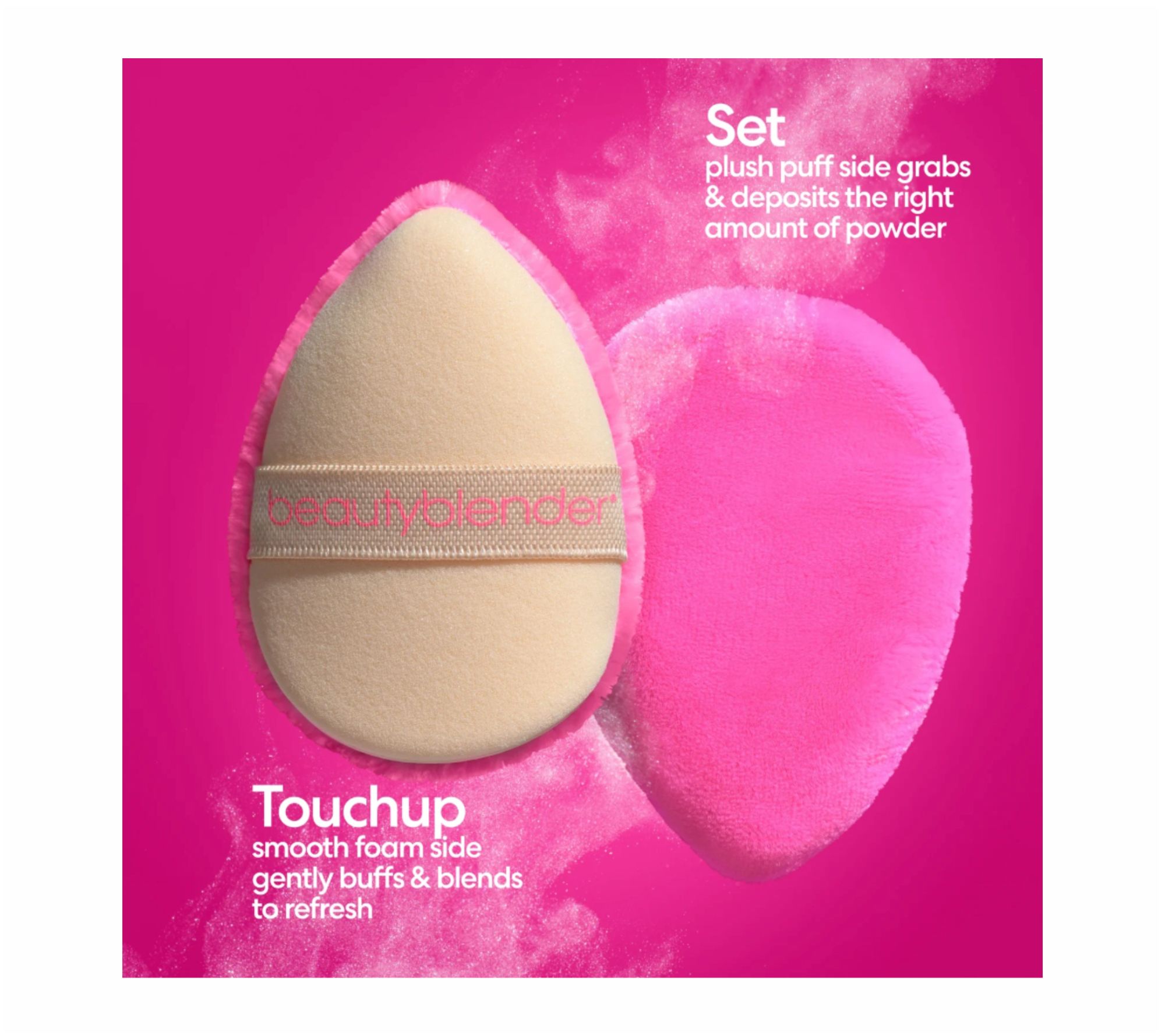 How do I use it: Wet Beautyblender in warm water. Squeeze out excess liquid. Bounce across skin with your favorite complexion or skincare product for a flawless skin-like finish. Cleanse with an ample amount of Blendercleanser. Rinse and blot tools, then allow to dry completely in a clean, well-ventilated area. Use the velour side of the Puff to press powder and lock in makeup. Flip the Puff to blend/refresh throughout the day. Rest hands on puff during application to prevent makeup from smudging.