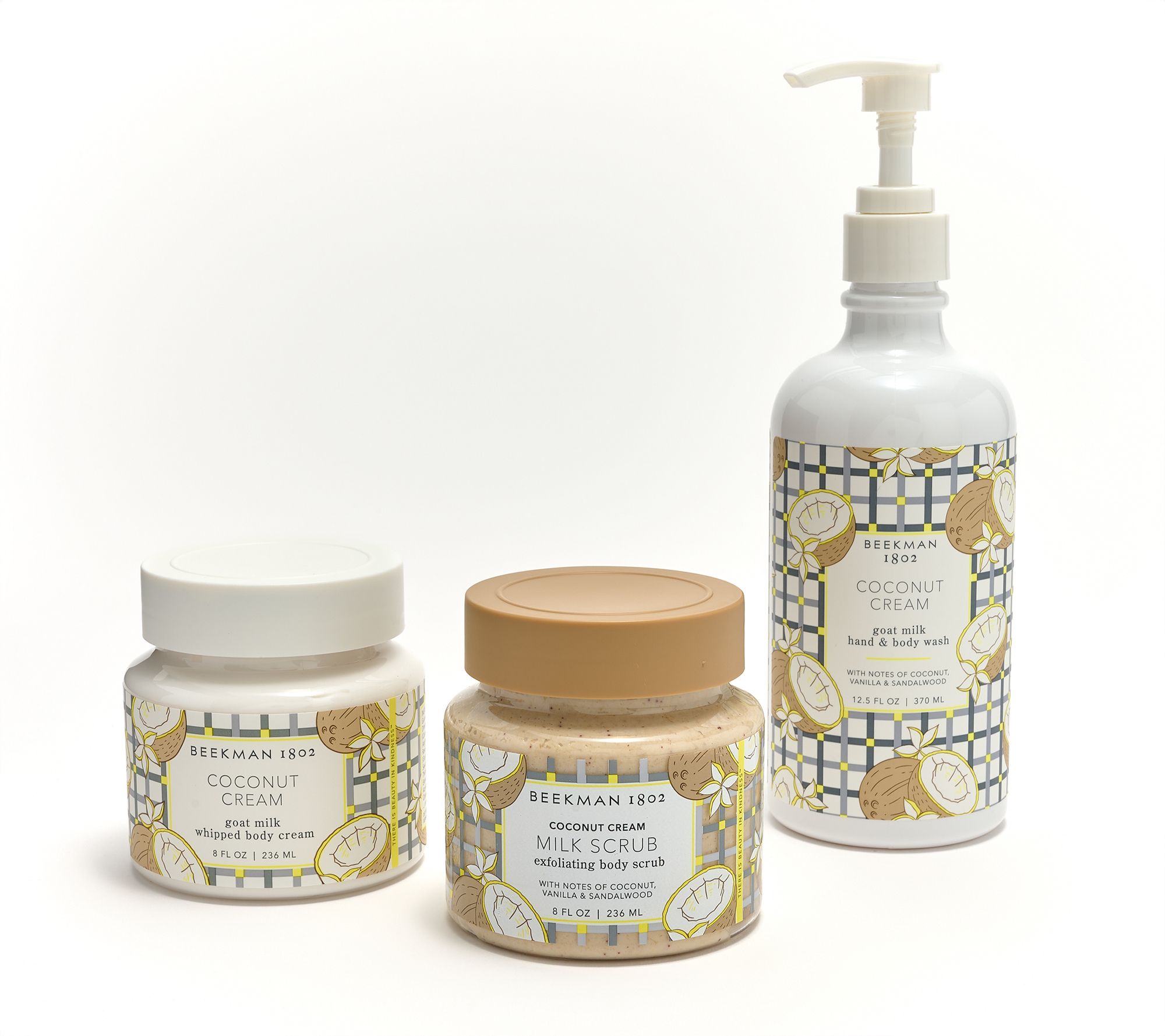 How do I use it: In the shower or bath, gently polish damp skin with scrub; rinse. Massage hand and body wash onto wet skin, lather, and rinse. Apply body cream to skin, as needed.