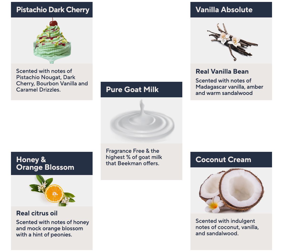 The Body Cream is formulated with goat milk, creamy botanical butters, and aloe -- all known to temporarily moisturize, hydrate, and nourish skin with moisture. This rich, never greasy formula temporarily helps skin feel softer.