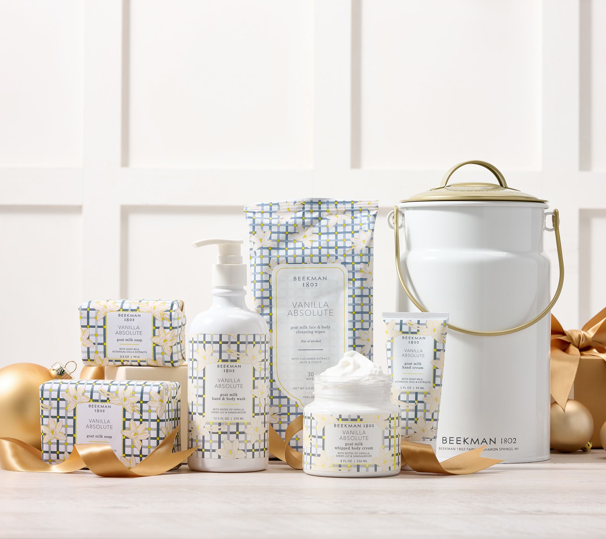Talk about the perfect bow-and-go present! QVC Clean Beauty brand Beekman 1802 brings you this delightful bath and body gift set in an adorable milk pail. The set includes all your goat milk favorites -- and maybe a couple you haven't tried yet!