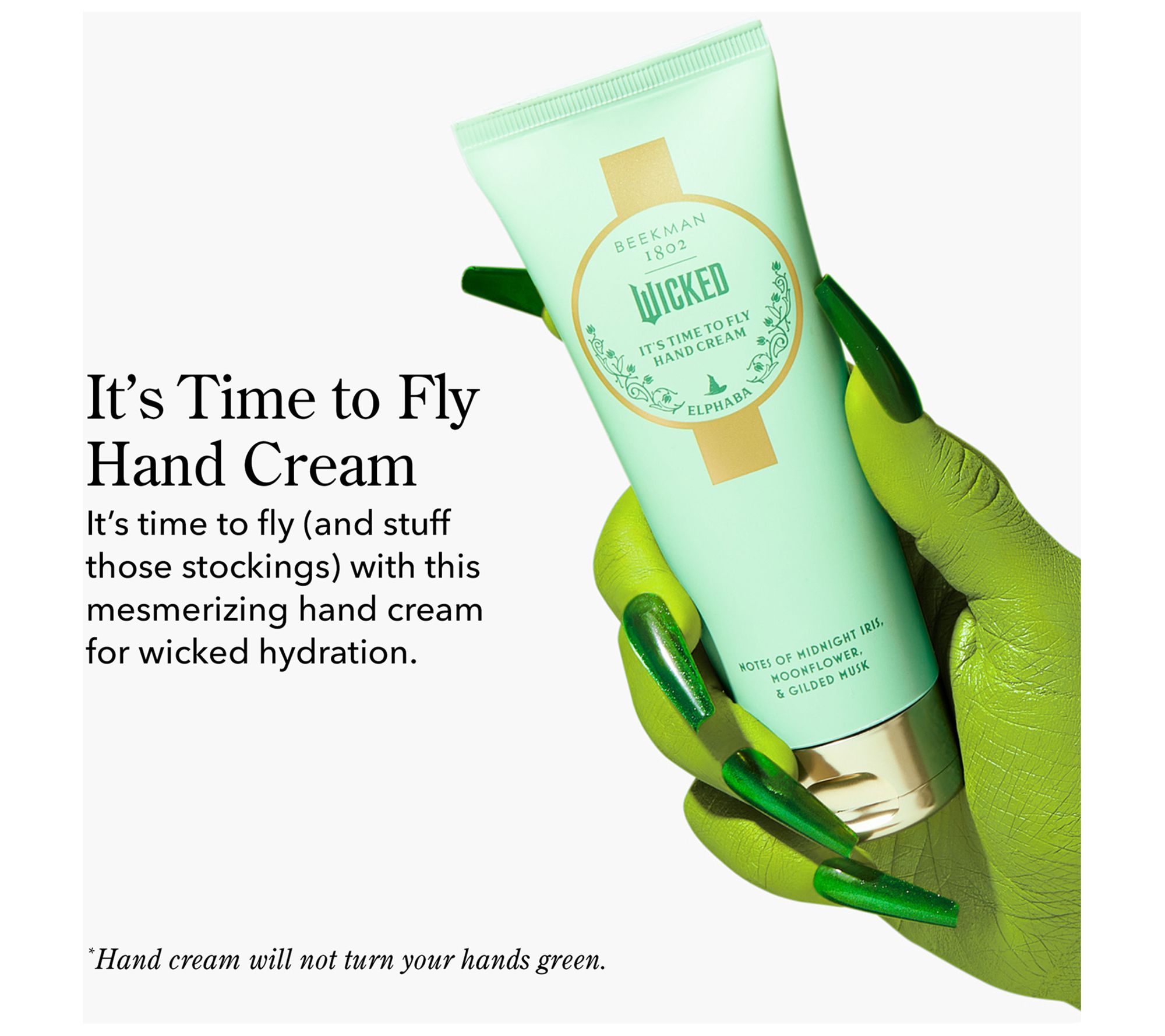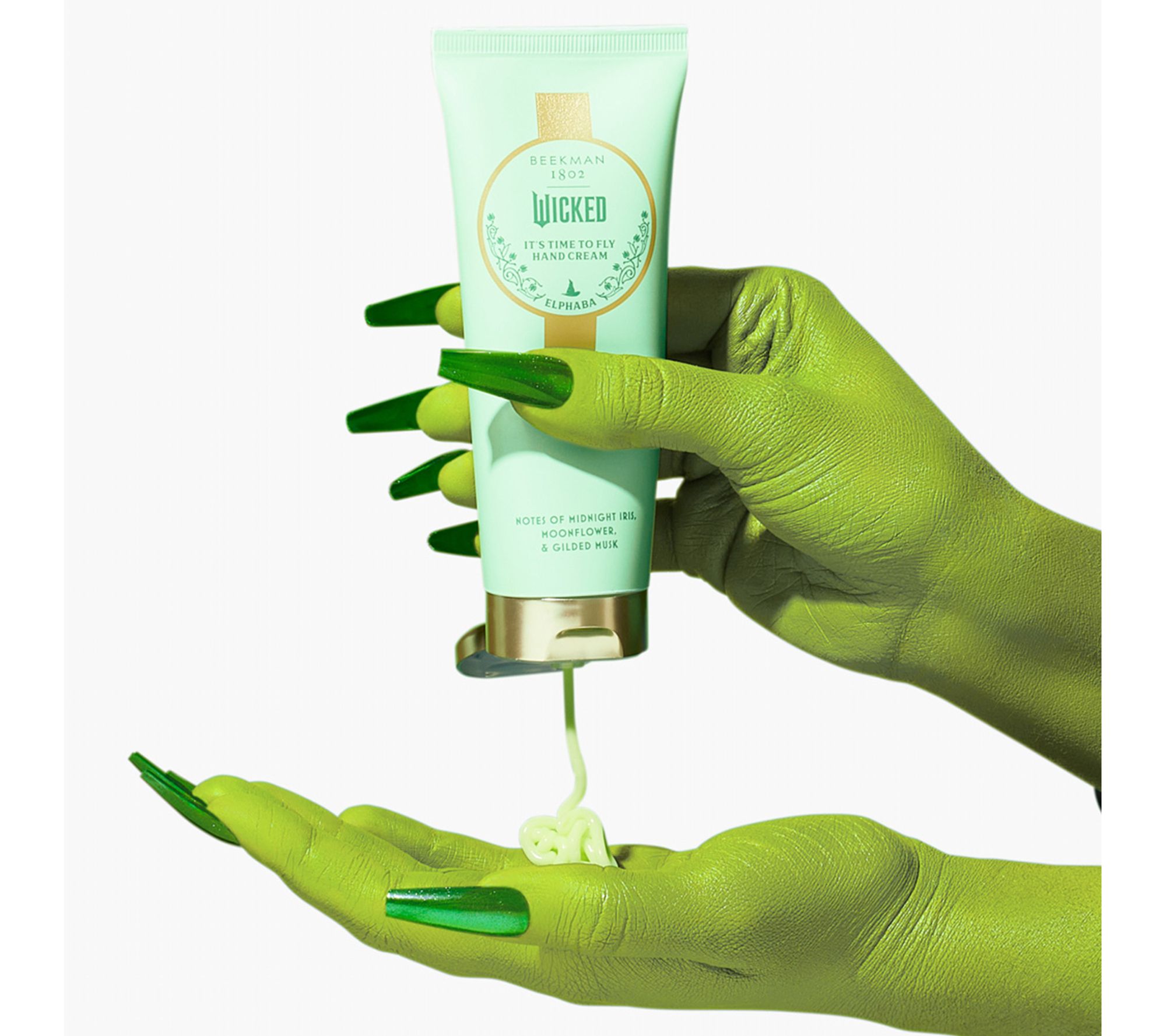 Beekman 1802 and Wicked Part 1 fly together with the It's Time to Fly Hand Cream! It's Time to Fly! This special edition hand cream hydrates with a lightweight, feel so that you can fly free. The magical concoction blends creamy goat milk with Elphaba's signature sweet gourmand scent with a hint of green.