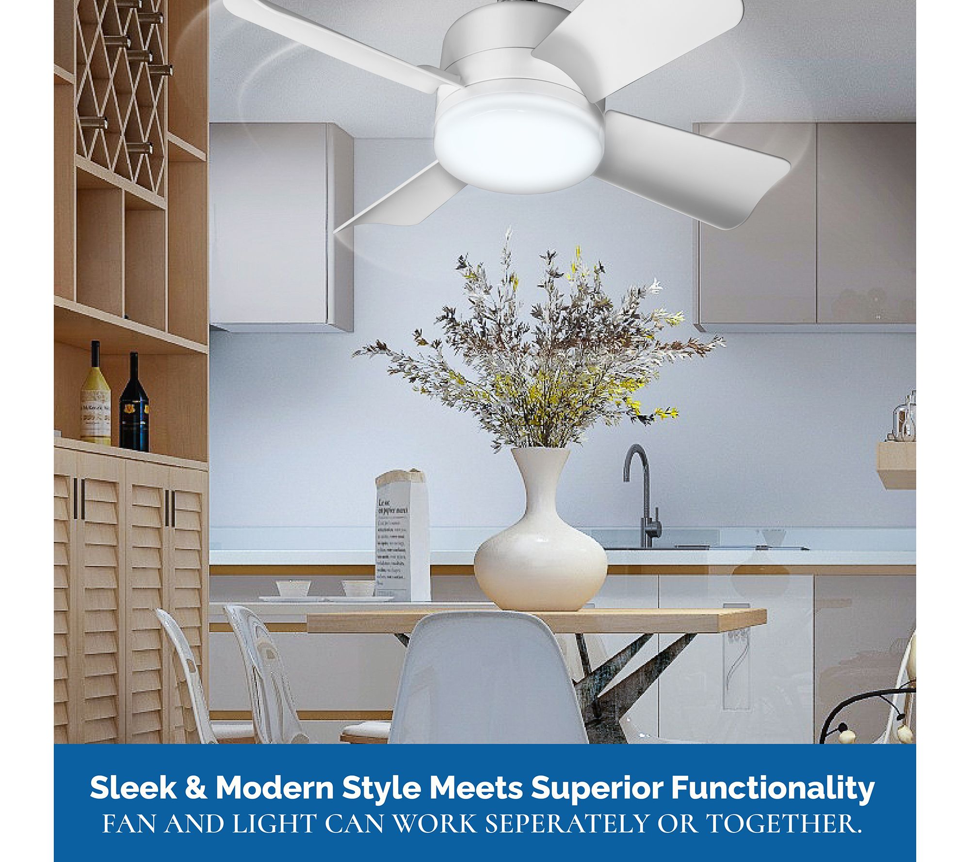Includes 2-in-1 ceiling fan/light and one-touch remote