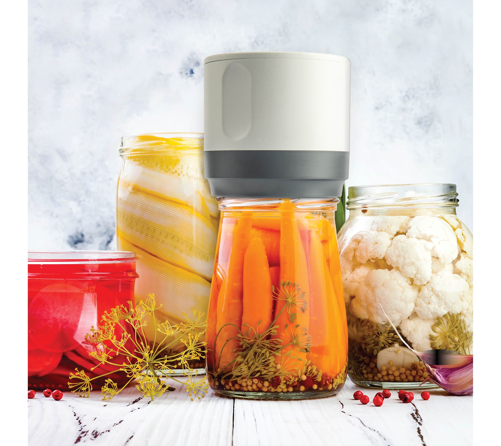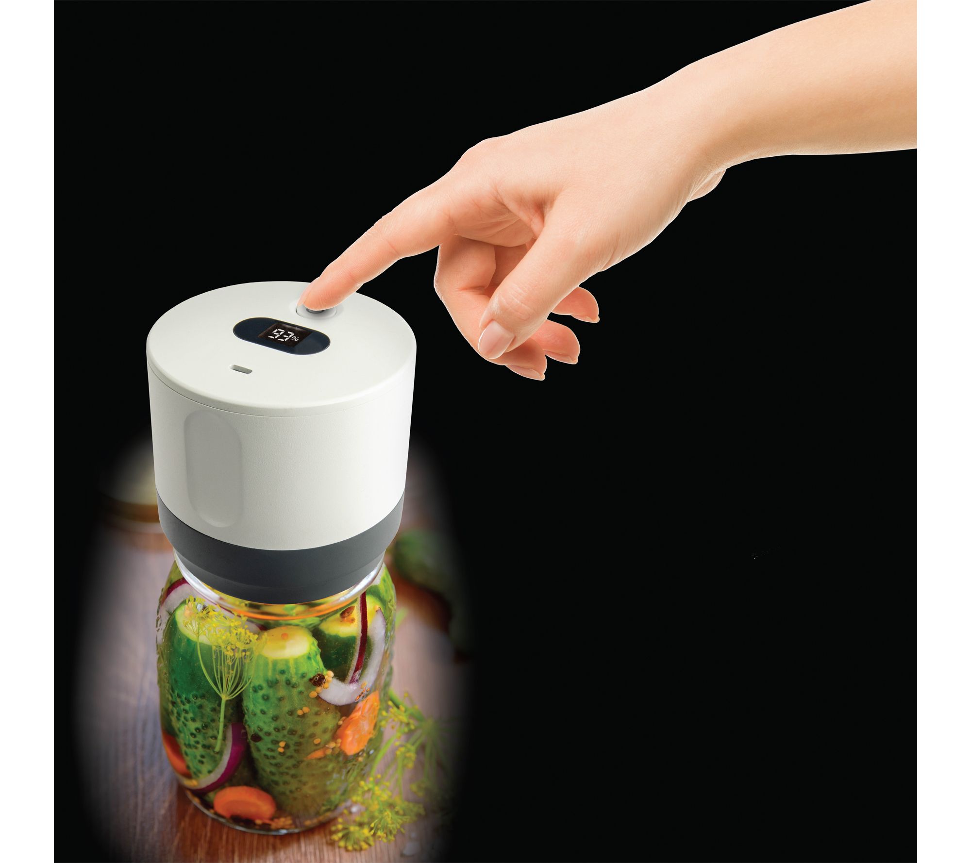 Designed to help with canning or storing snacks, salads, or sauces, this RoboSeal rechargeable mason jar sealer features an automatic stop function. With 10 easy-seal lids for both large and regular jars, it's a pantry essential you'll turn to time and again. A lid opener tool is included for your convenience. From Bell & Howell.