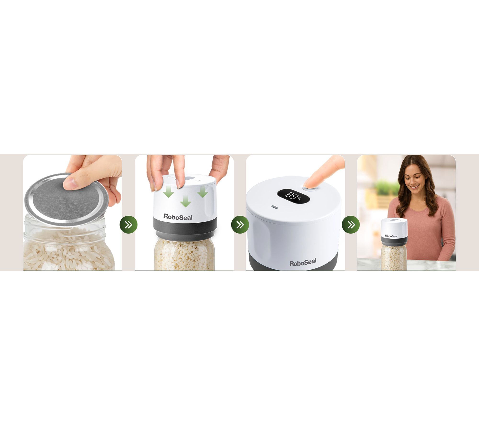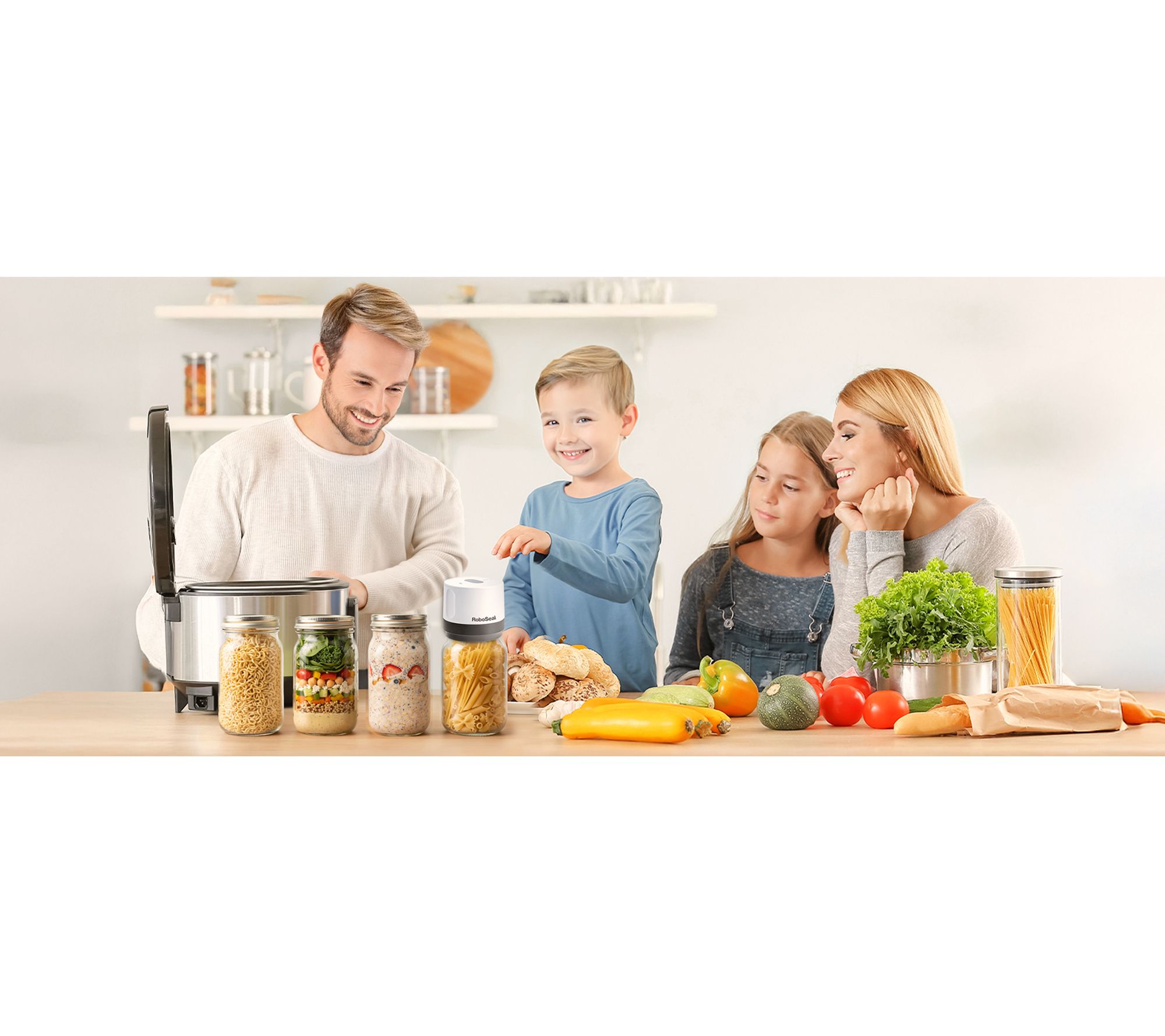 Includes RoboSeal rechargeable mason jar sealer, lid opener tool, five regular lids, and five large lids