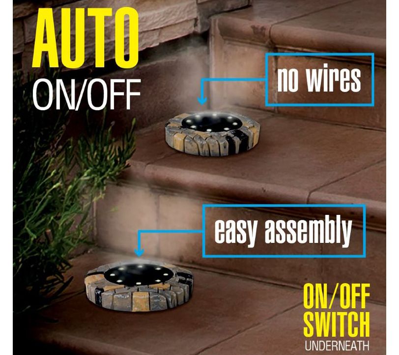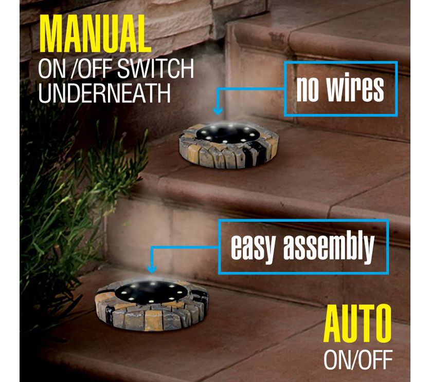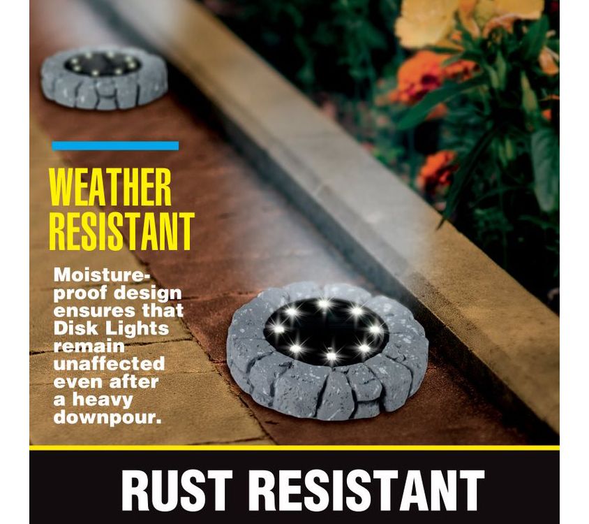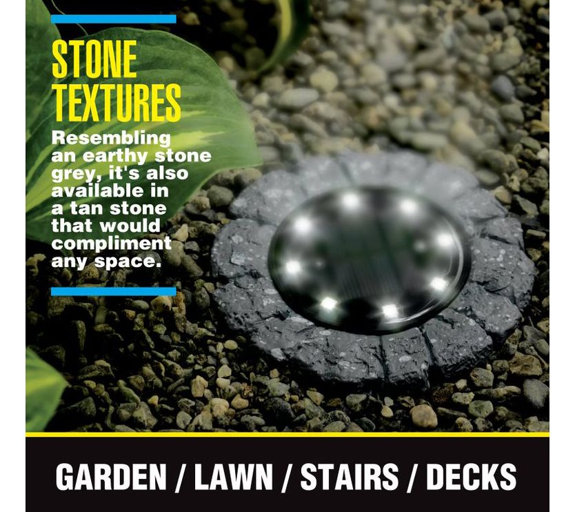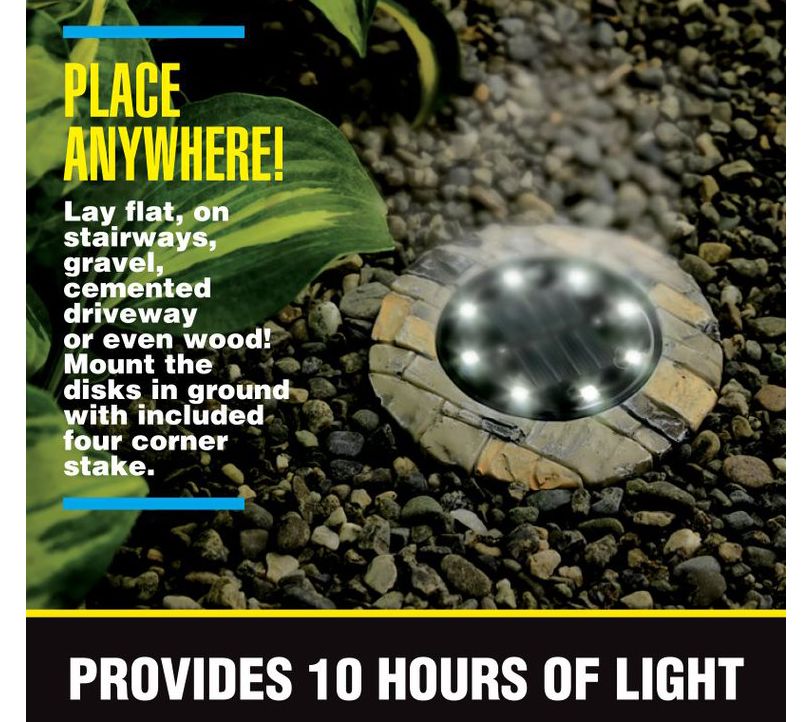 Bell + Howell 8 LED Solar Powered Slate Disk Lights 8-Pack
