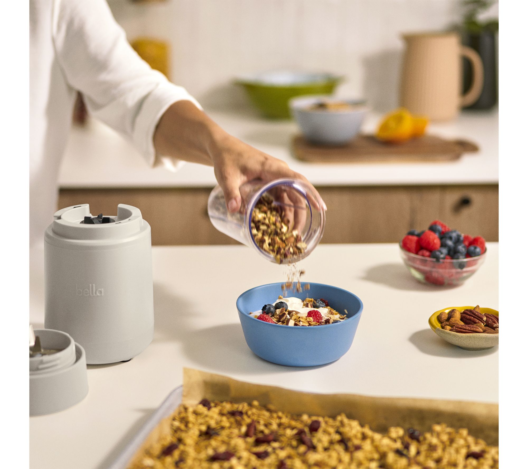 Start your mornings off right with this rocket blender, designed to simplify your eating and nutrition goals whether you're at home or darting out the door. Quick to use with its easy fill, press, and twist steps, it effortlessly blends ingredients (even frozen berries and ice) for smoothies, sauces, and more -- while the stackable design and dishwasher-safe cups make clean up and storage easy. From Bella.