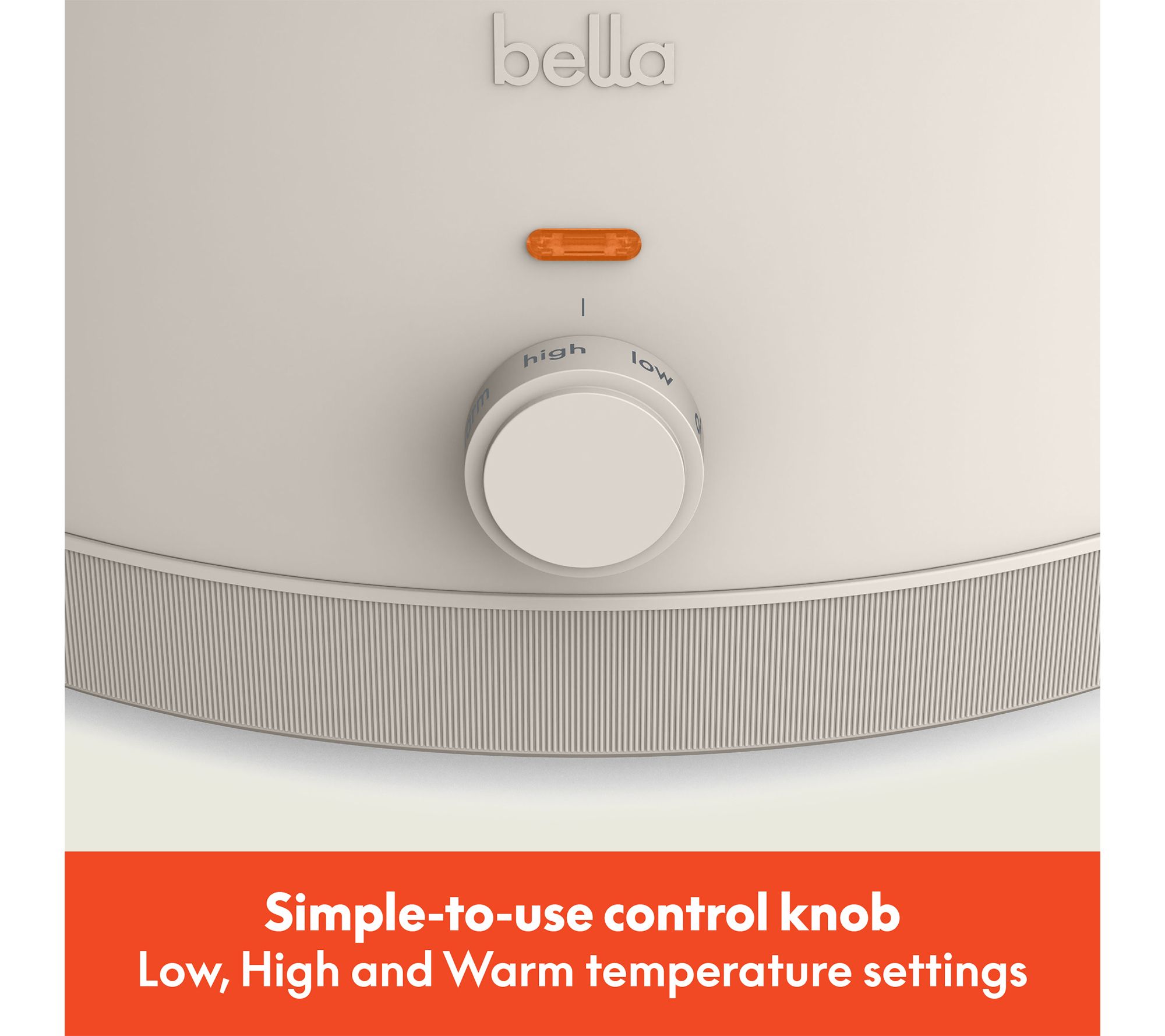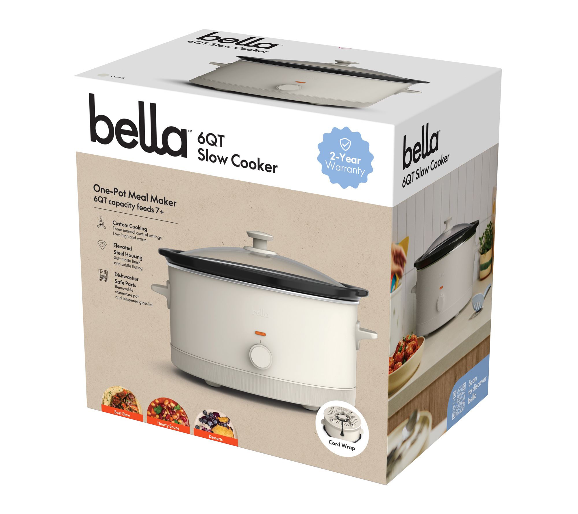 Bring on the big batches -- for game days, holidays, and weeknight dinners! This streamlined 6-qt slow cooker is ready to cater to your crew's cravings for soup, stew, chili, and more. Low, medium, and high temperature settings allow for straightforward temperature control, while the tempered glass lid gives you a bird's-eye view of the deliciousness cooking inside. From Bella.