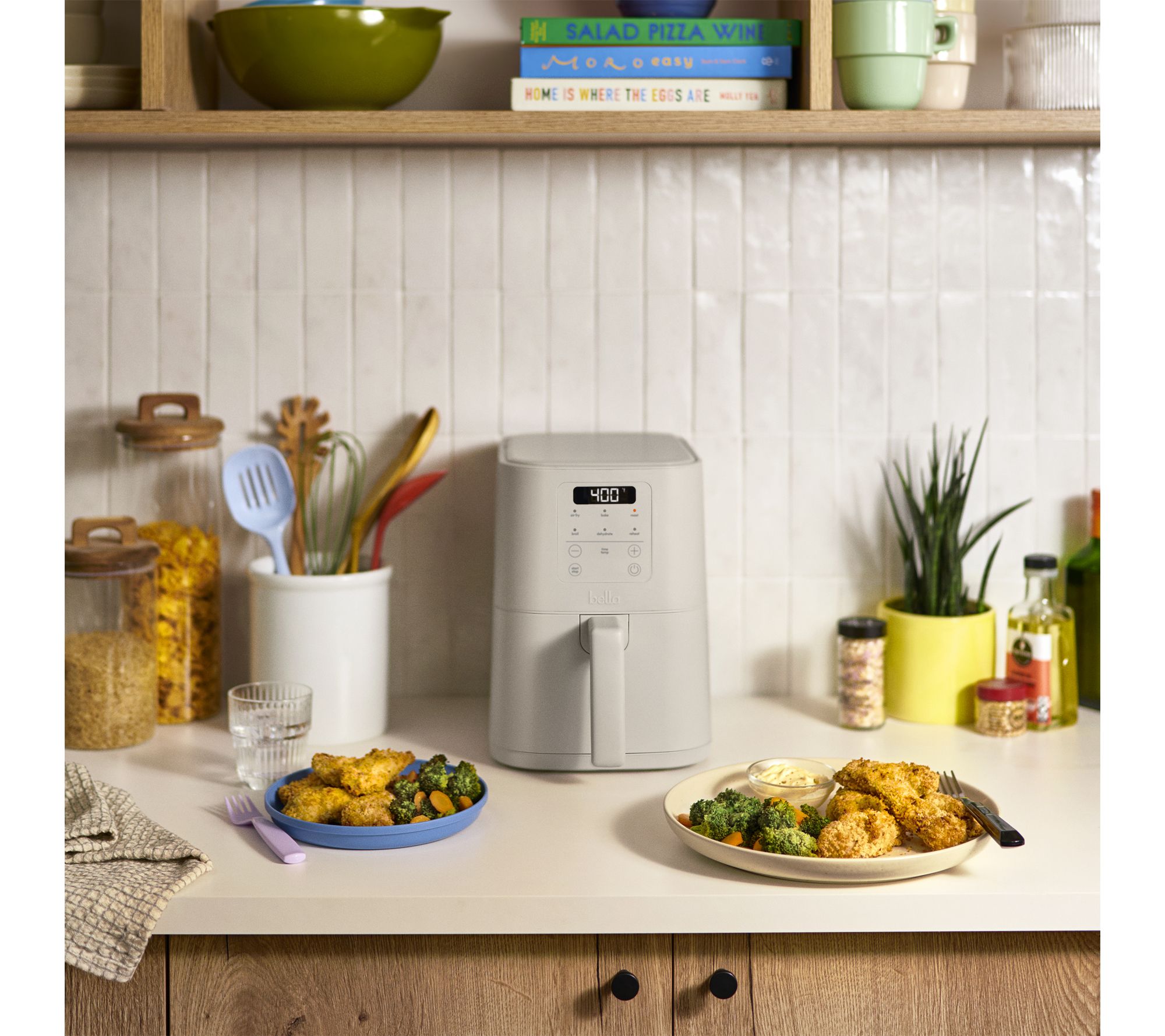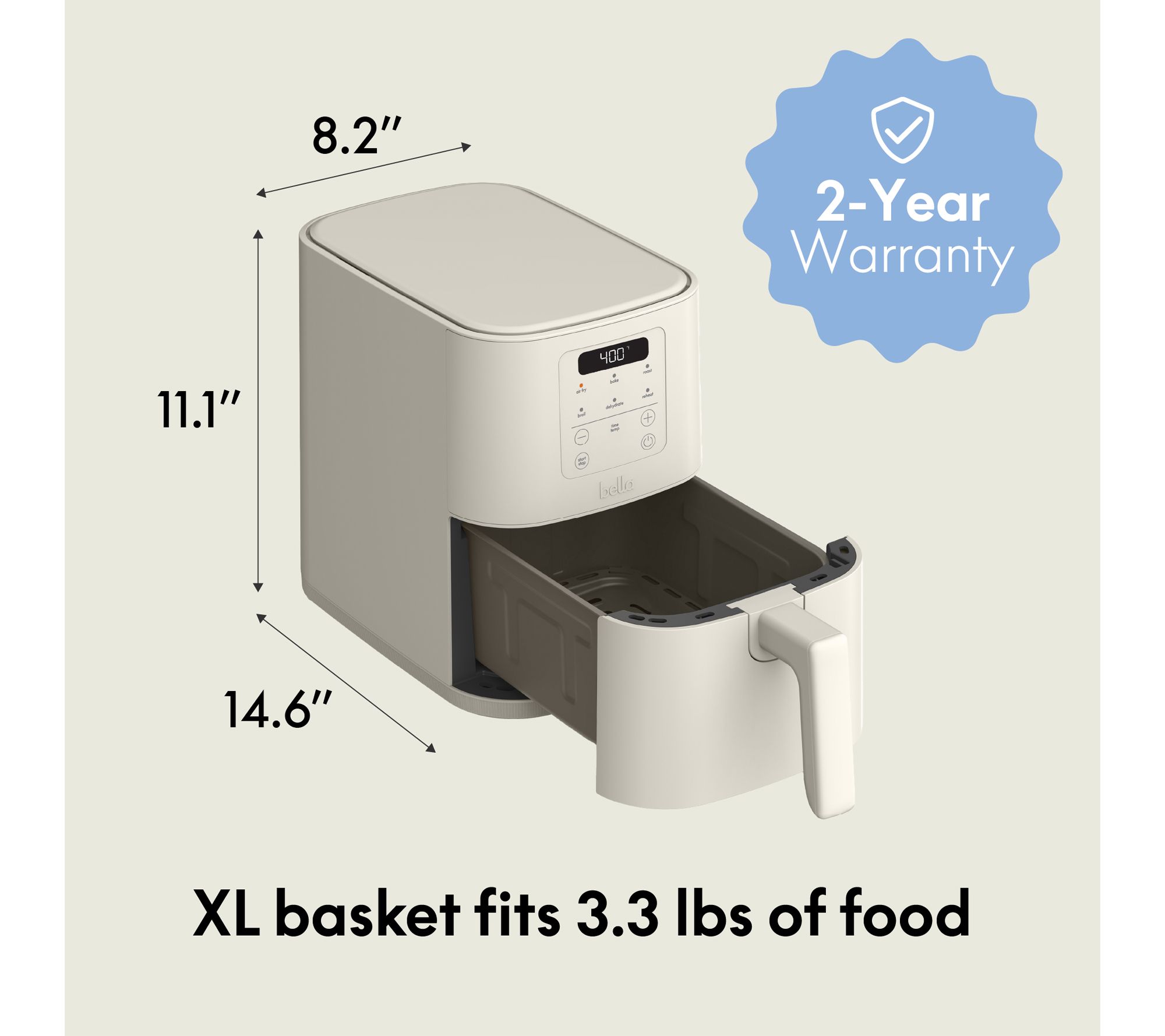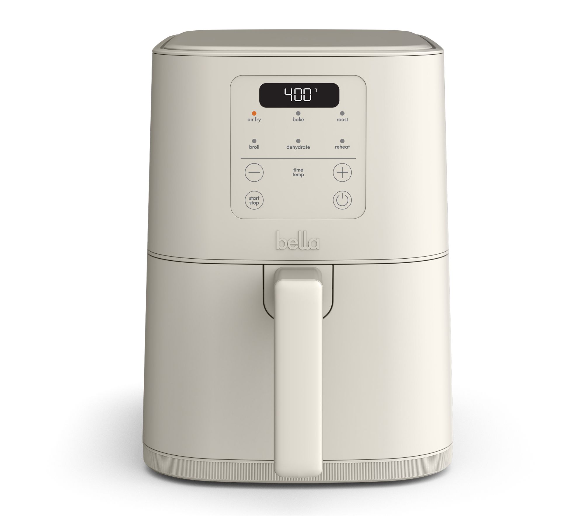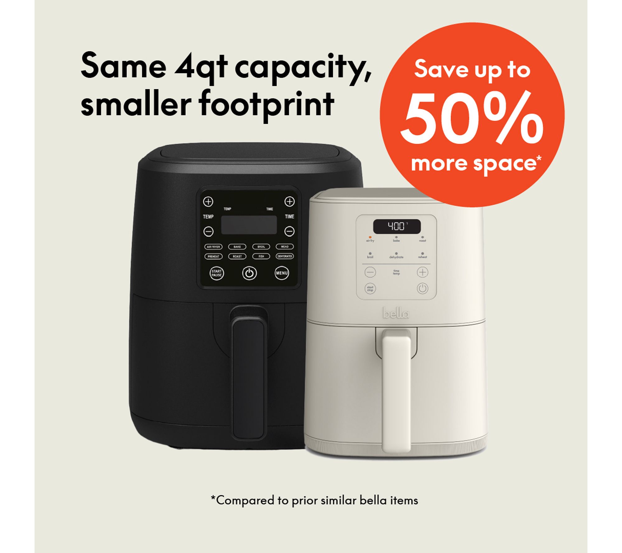 Bring big flavor to your countertop -- without the clutter! Designed as part of the Fits-anywhere kitchenware system, the Bella 4-qt Air Fryer packs powerful cooking into a slim, modern profile that seamlessly fits even smaller spaces. Its extra-long basket lets you cook bigger batches of your favorite fries, wings, salmon, veggies, and more, making family meals and entertaining easier than ever. From Bella.