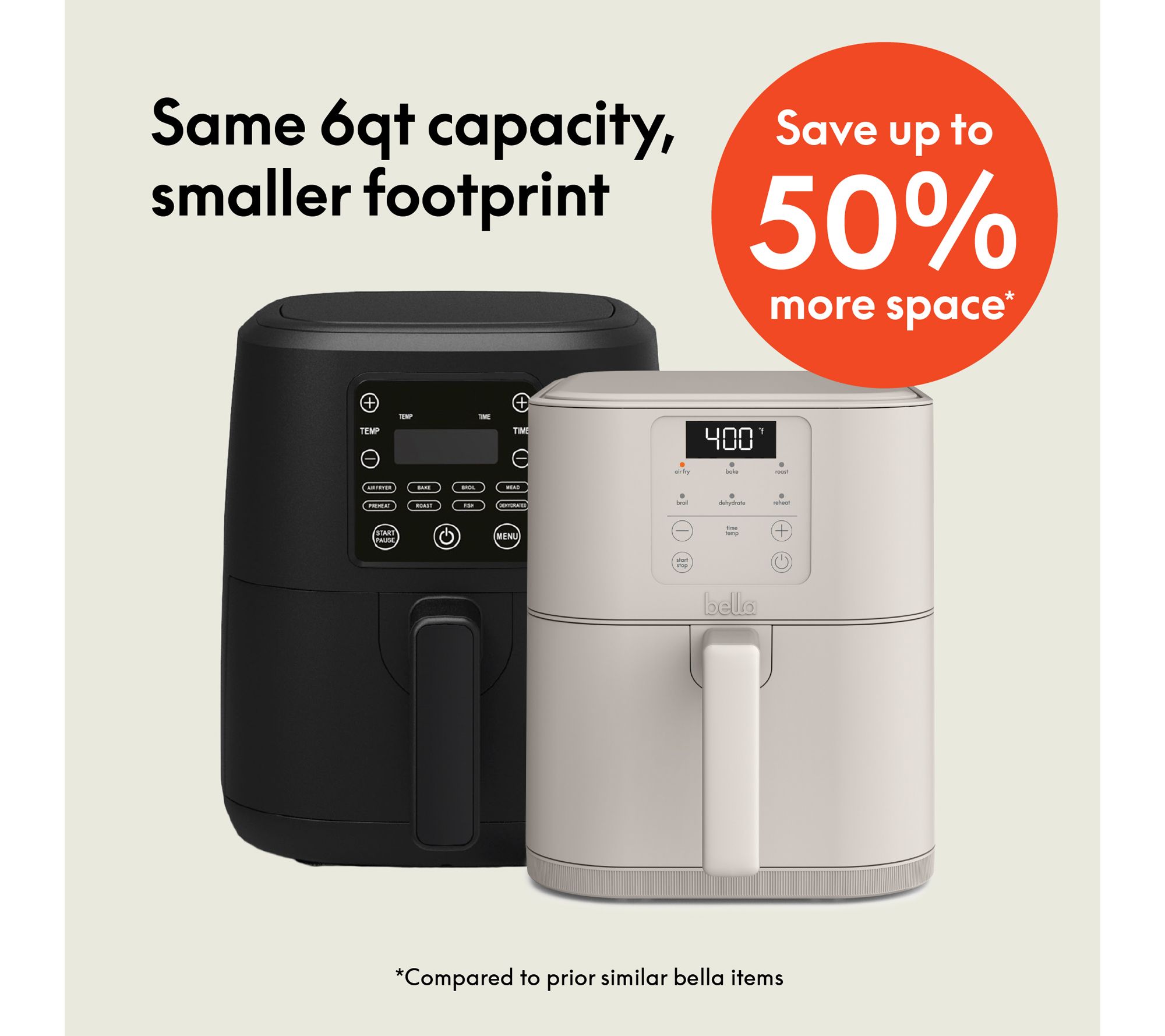 • Intuitive digital controls and 6 cooking presets: air fry, bake, roast, broil, reheat, dehydrate