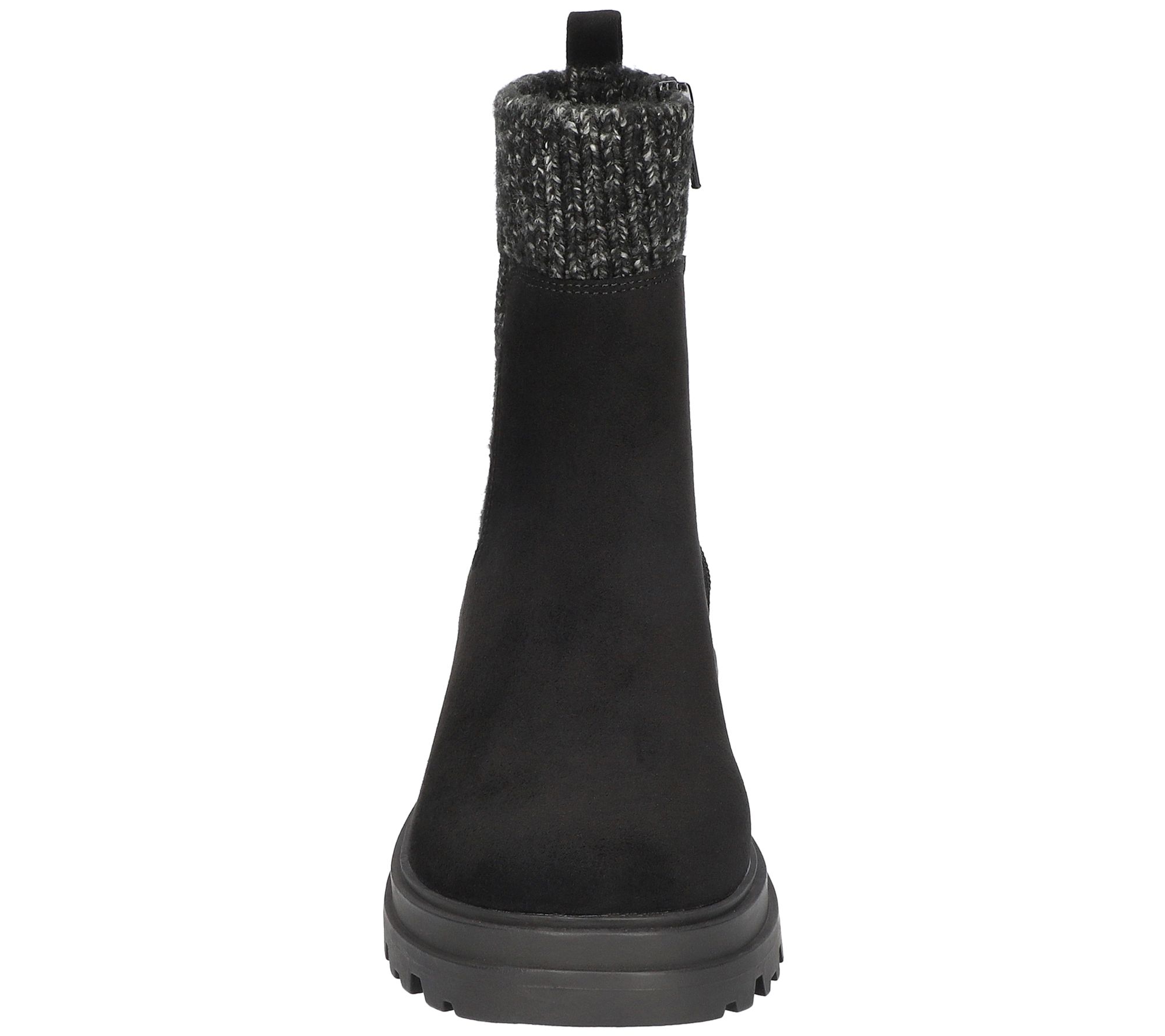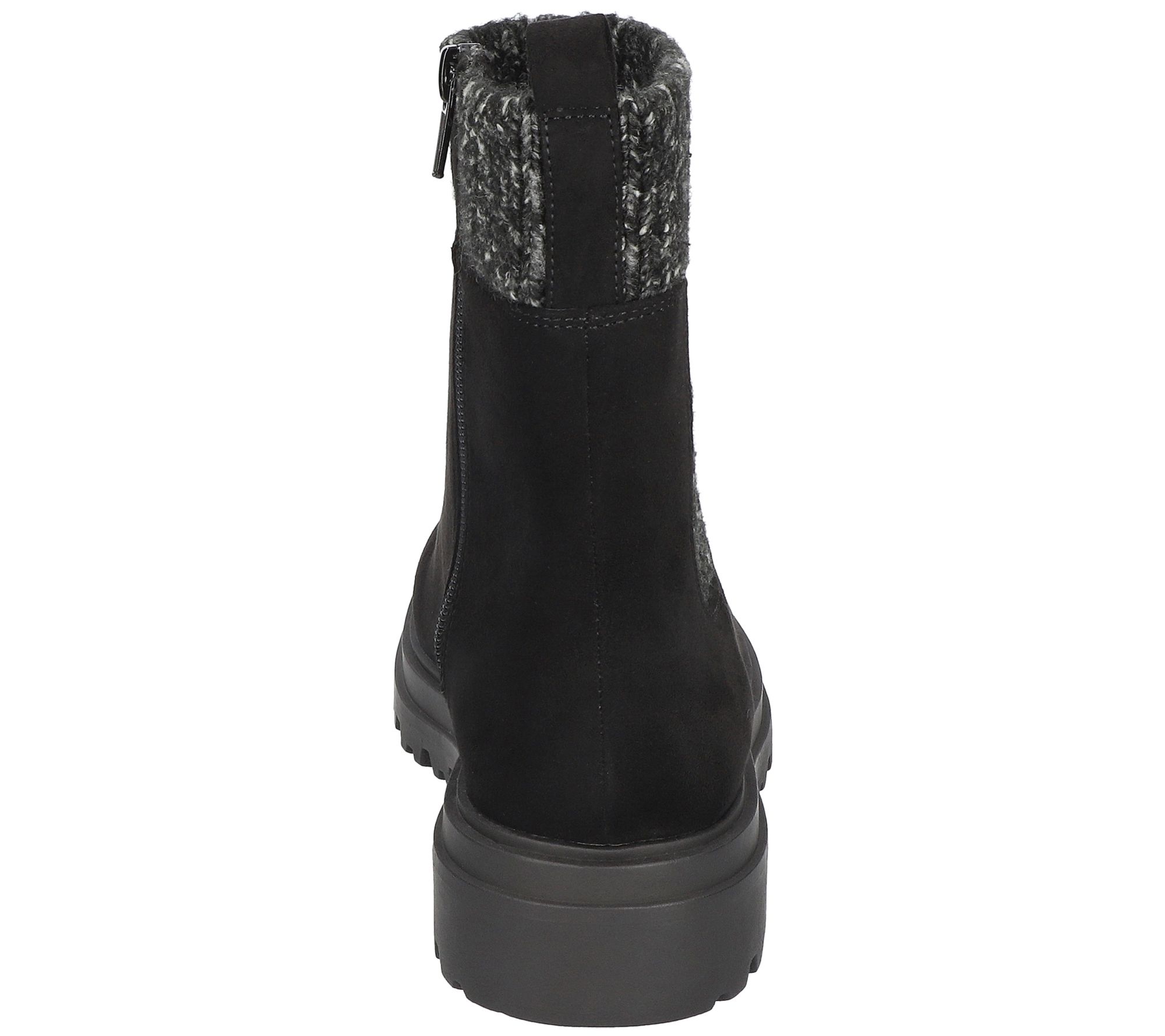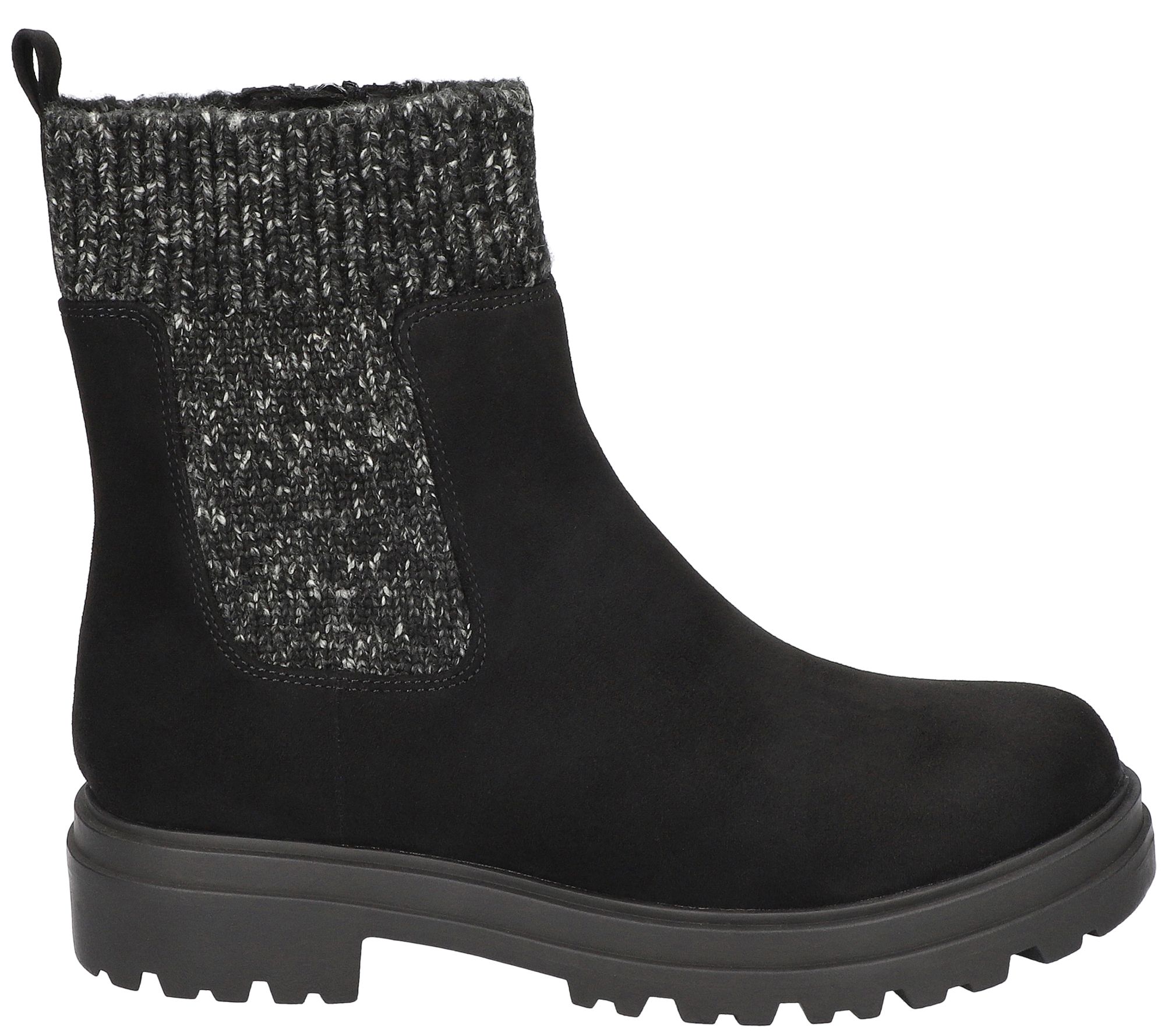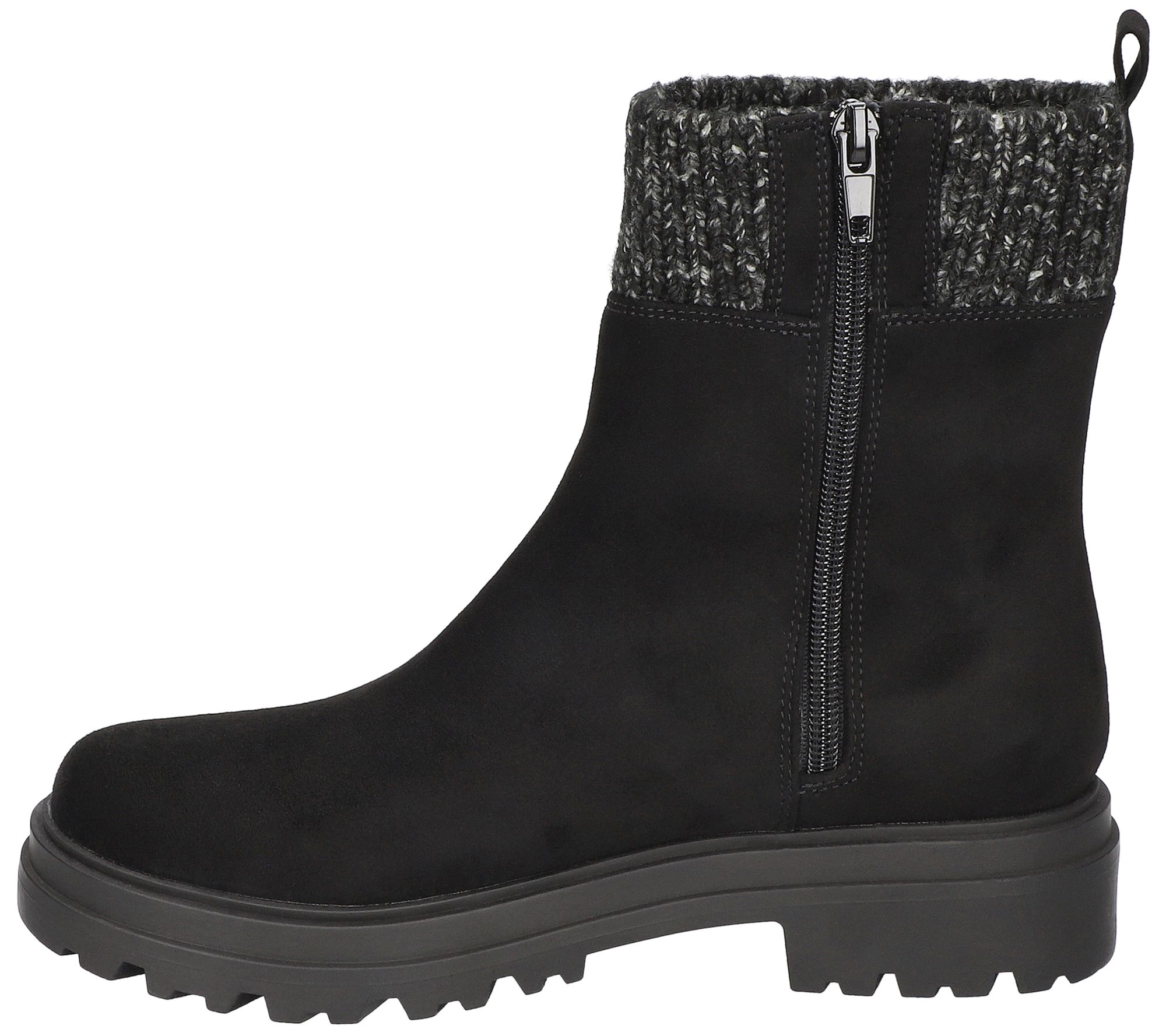 • Side-zip closure, stretch sweater detail, rounded toe