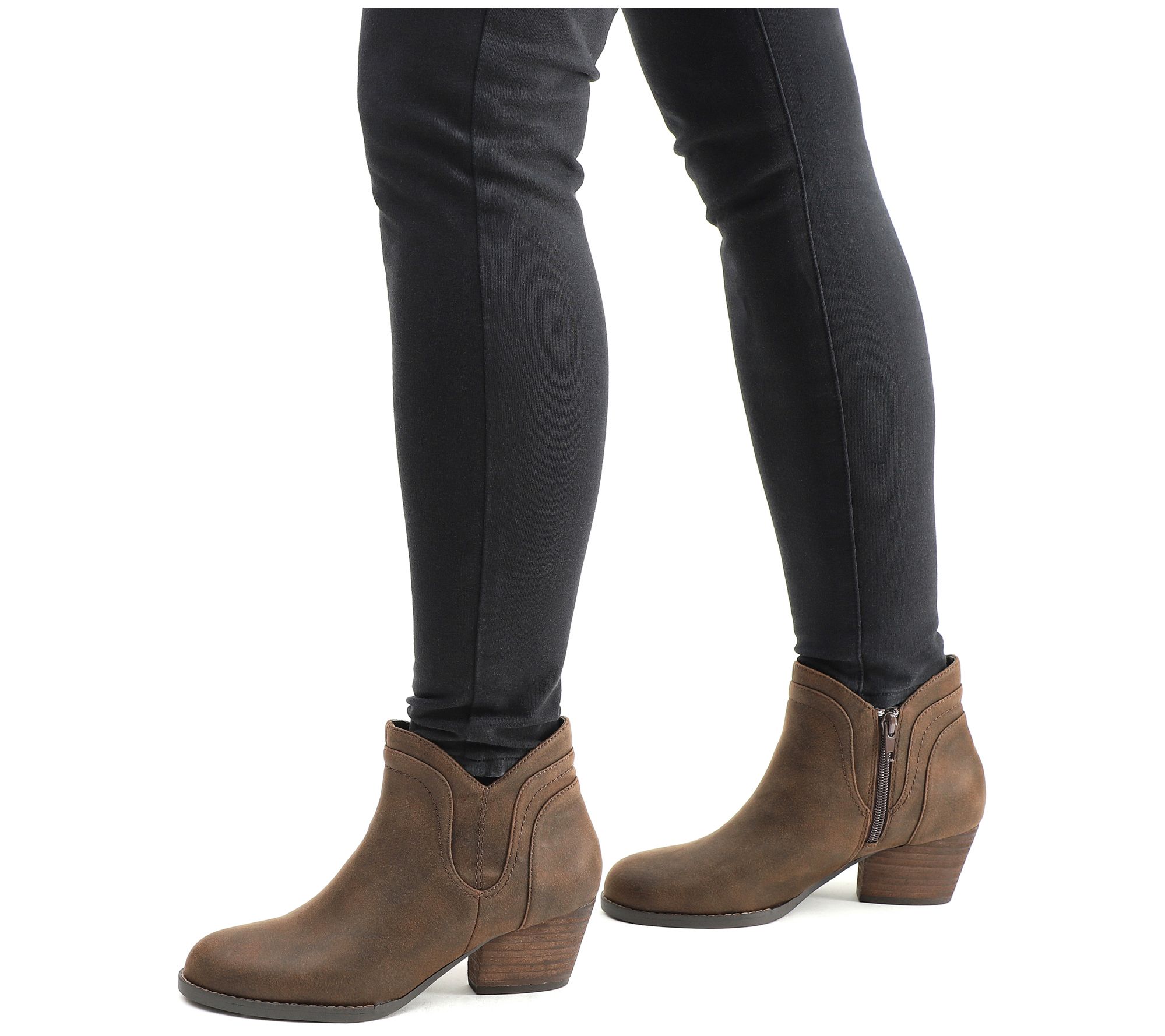 Step into contemporary fashion with the Bella Vita Trust booties. These ankle boots feature a chunky underslung block heel and a unique western-inspired topline for eye-catching detail. The round toe and inside zipper make them both modern and easy to wear. From Bella Vita.