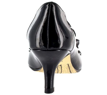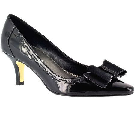 Say good-bye to plain pumps and step into this well-adorned shoe. Pretty patent leather is decorated with stitching detail and topped off with a bow. Perfect for the boardroom or the ballroom. From Bella Vita.