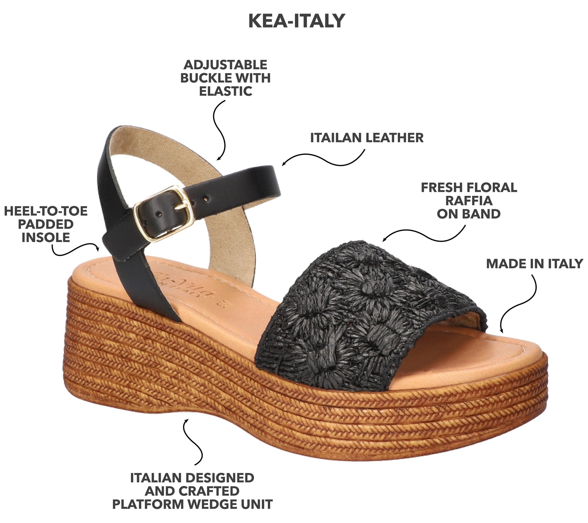 Step into Italian elegance with the Bella Vita Kea-Italy wedge sandals. Perfect for garden parties or strolls along the boardwalk, these sandals combine the finest leather with charming floral raffia details. The adjustable ankle strap ensures a perfect, custom fit, while the padded heel-to-toe insole promises all-day comfort. Elevate your summer wardrobe with these chic and versatile sandals. From Bella Vita.