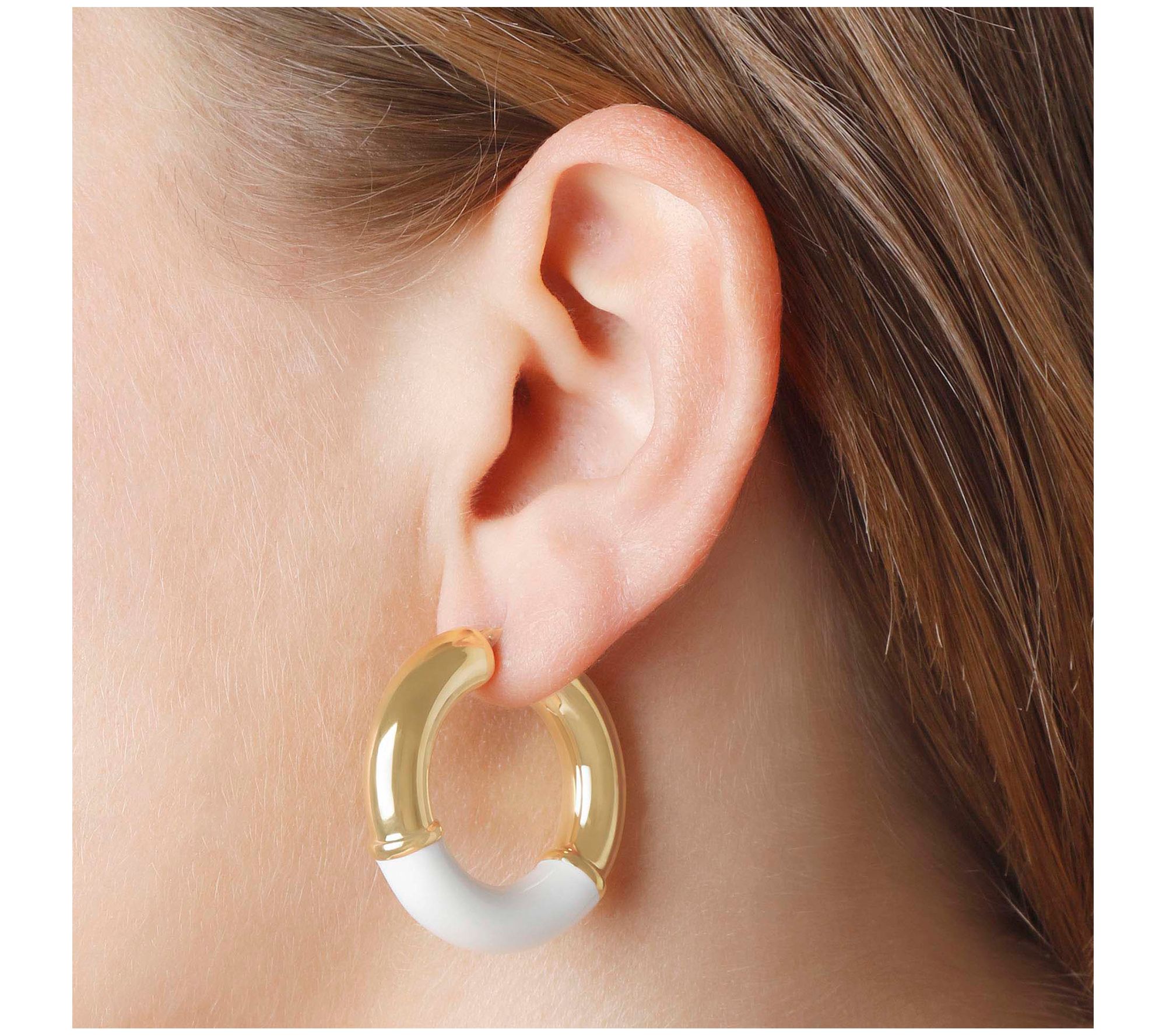 • Round, hoop earrings with enamel center section