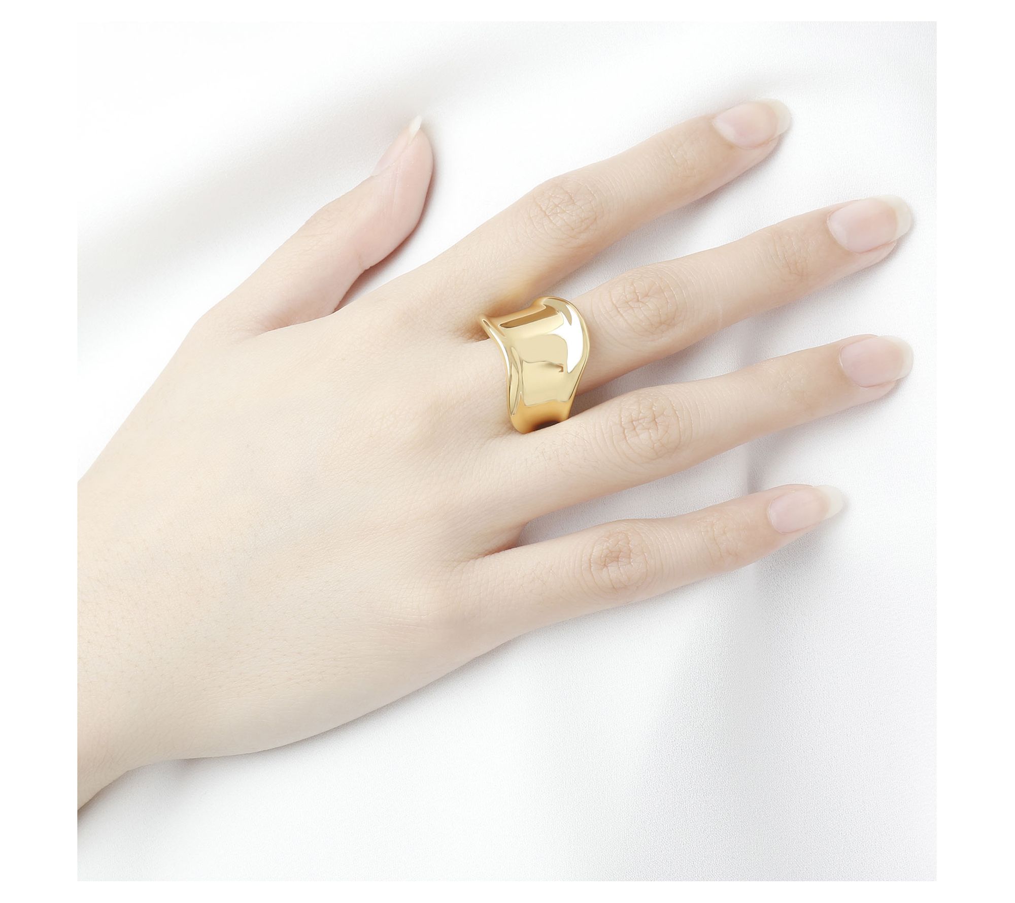 • Band ring with freeform design; polished finish