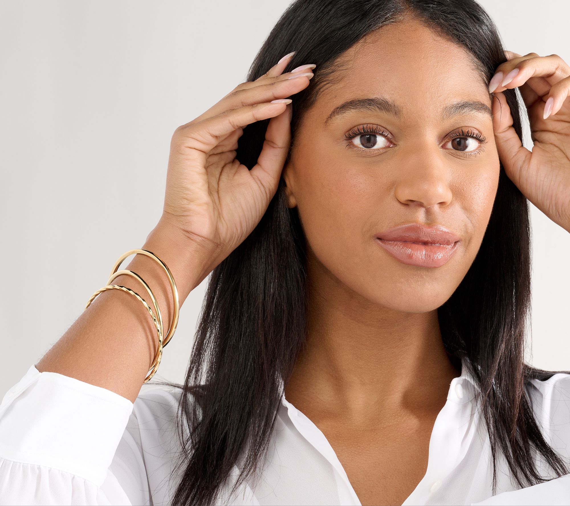 Create a classic layered look with this set of slip-on bangles. From BellaOro.