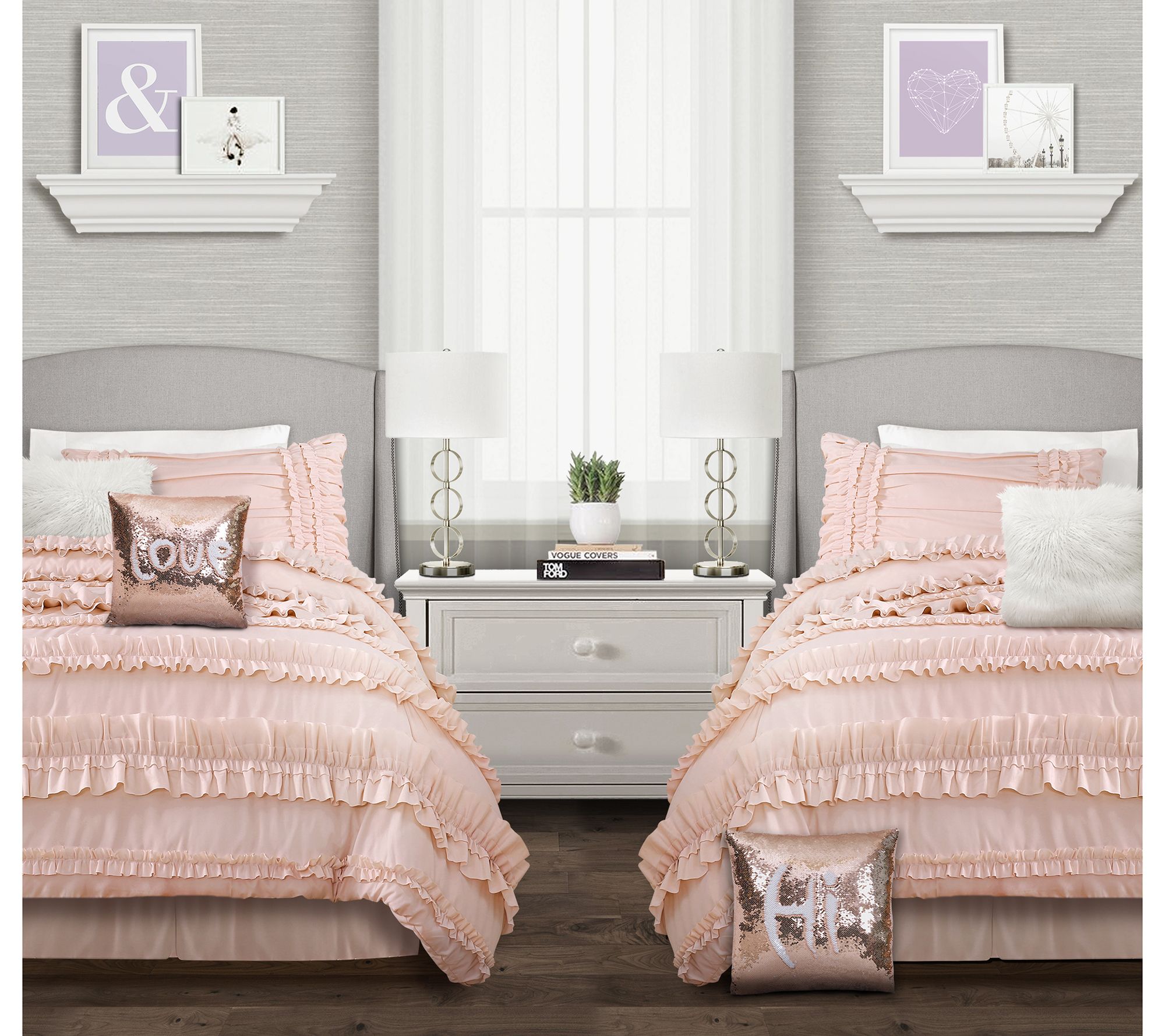 Dress up your dorm room with layers of ruffles and revel in this comforter's glam appeal. You'll be the envy of all in your hall. From Lush Decor.