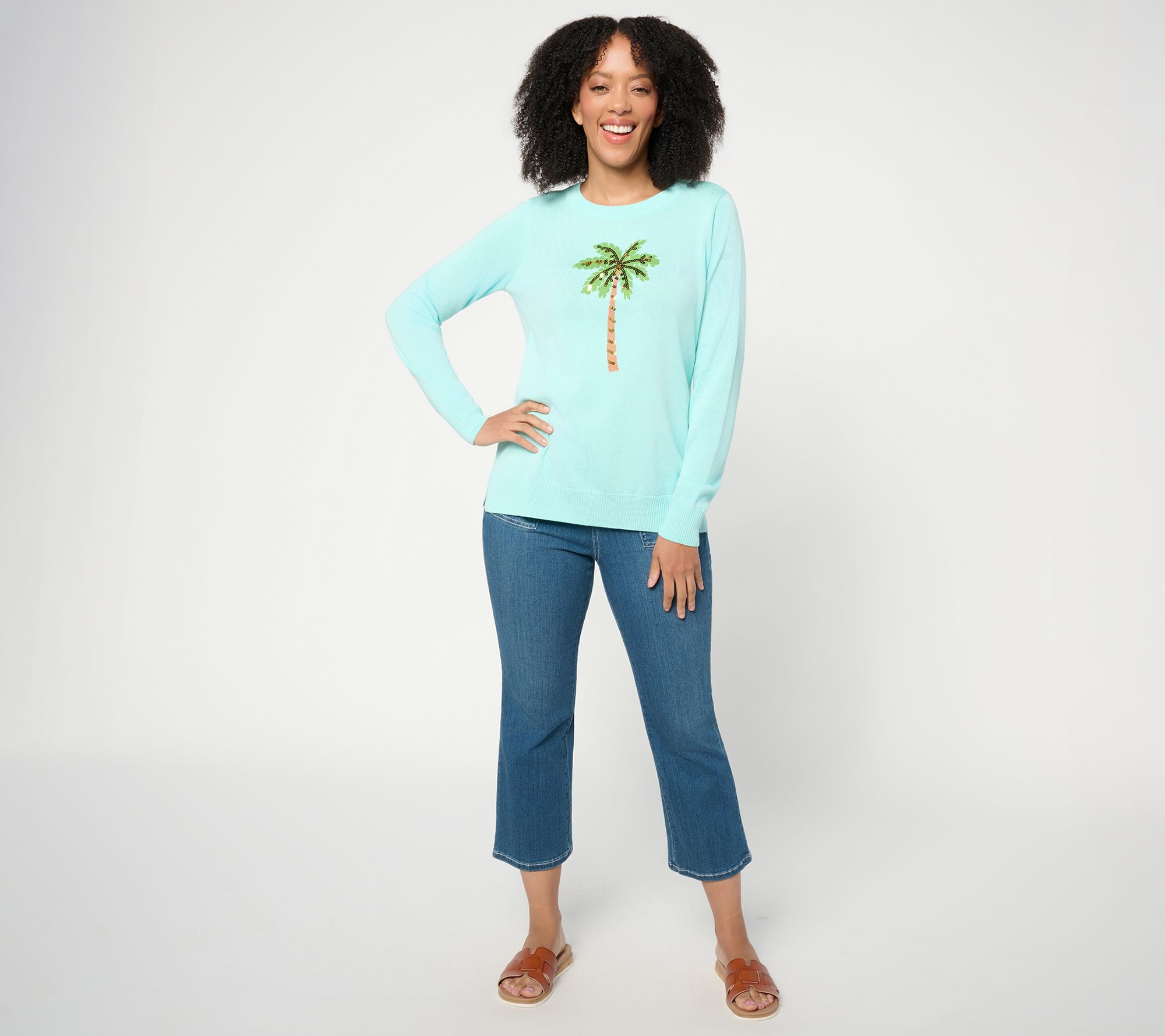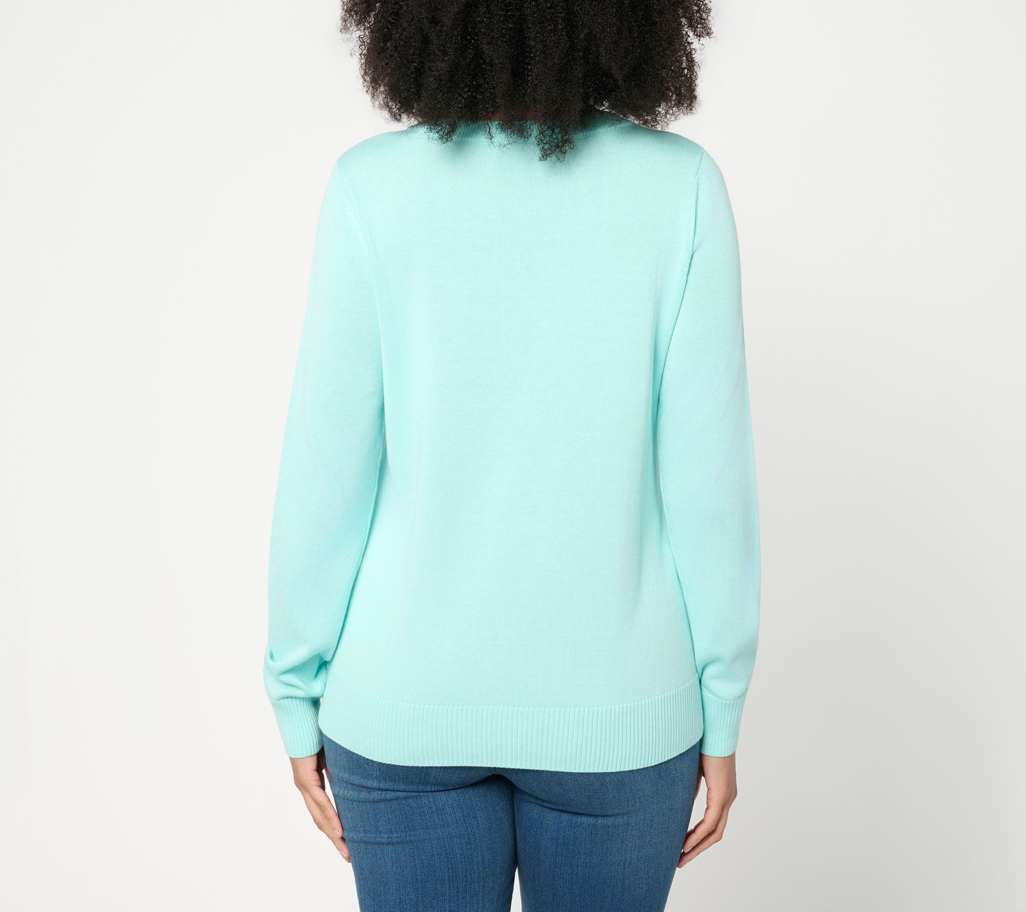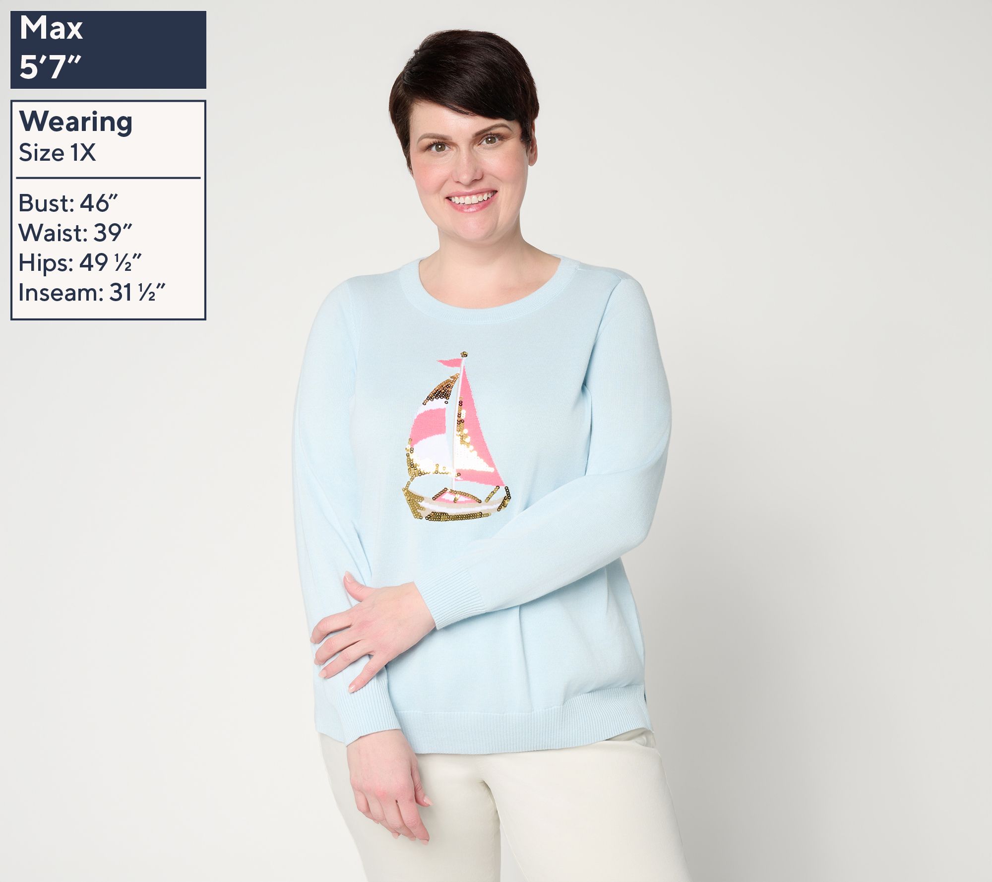 A touch of shimmer brings festive fun to everyday style with this Belle Beach sweater -- ideal for days when you want to feel just a little more polished, whether running errands or grabbing lunch with friends. Long sleeves and a graceful silhouette easily pair with your favorite jeans or skirts, lending versatility to your wardrobe. From Belle Beach by Kim Gravel.