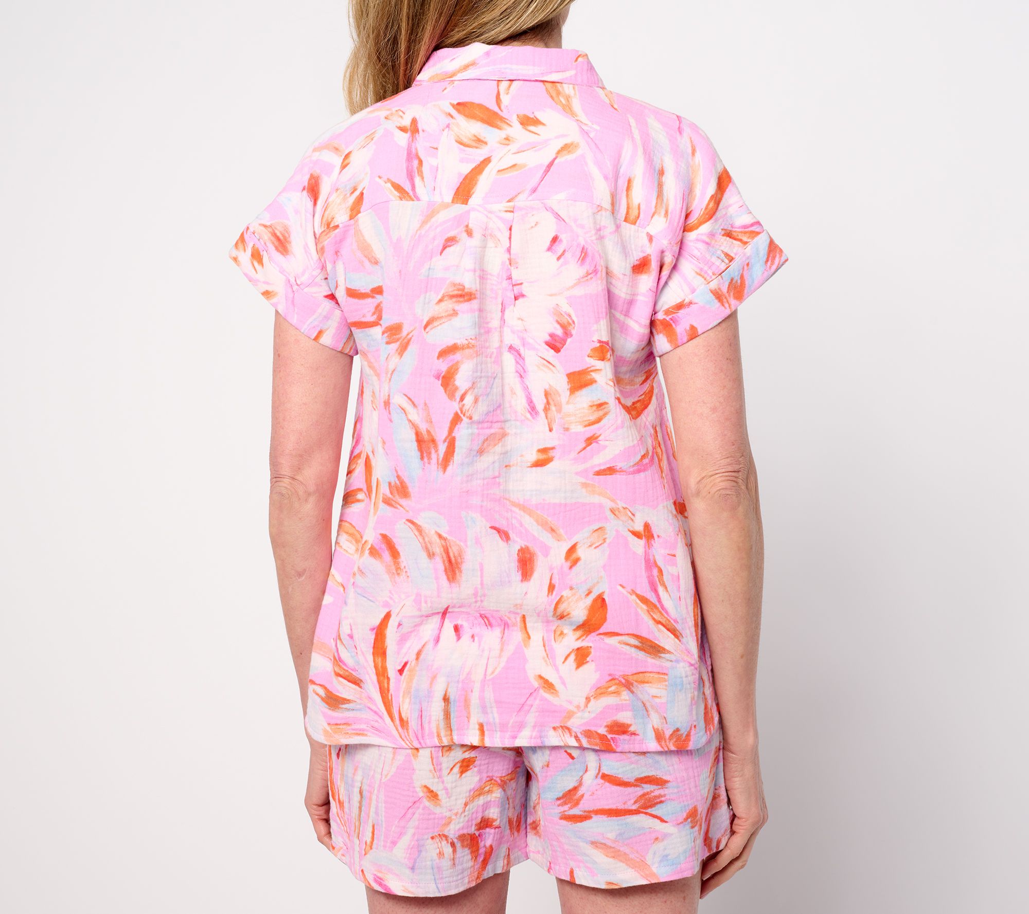 Your beach day just got an upgrade! Embrace the island vibe with this Palm Beach gauze shirt. Its breezy, 100% cotton fabric and short sleeves keep you sailing through the season in total comfort. From Belle Beach by Kim Gravel.
