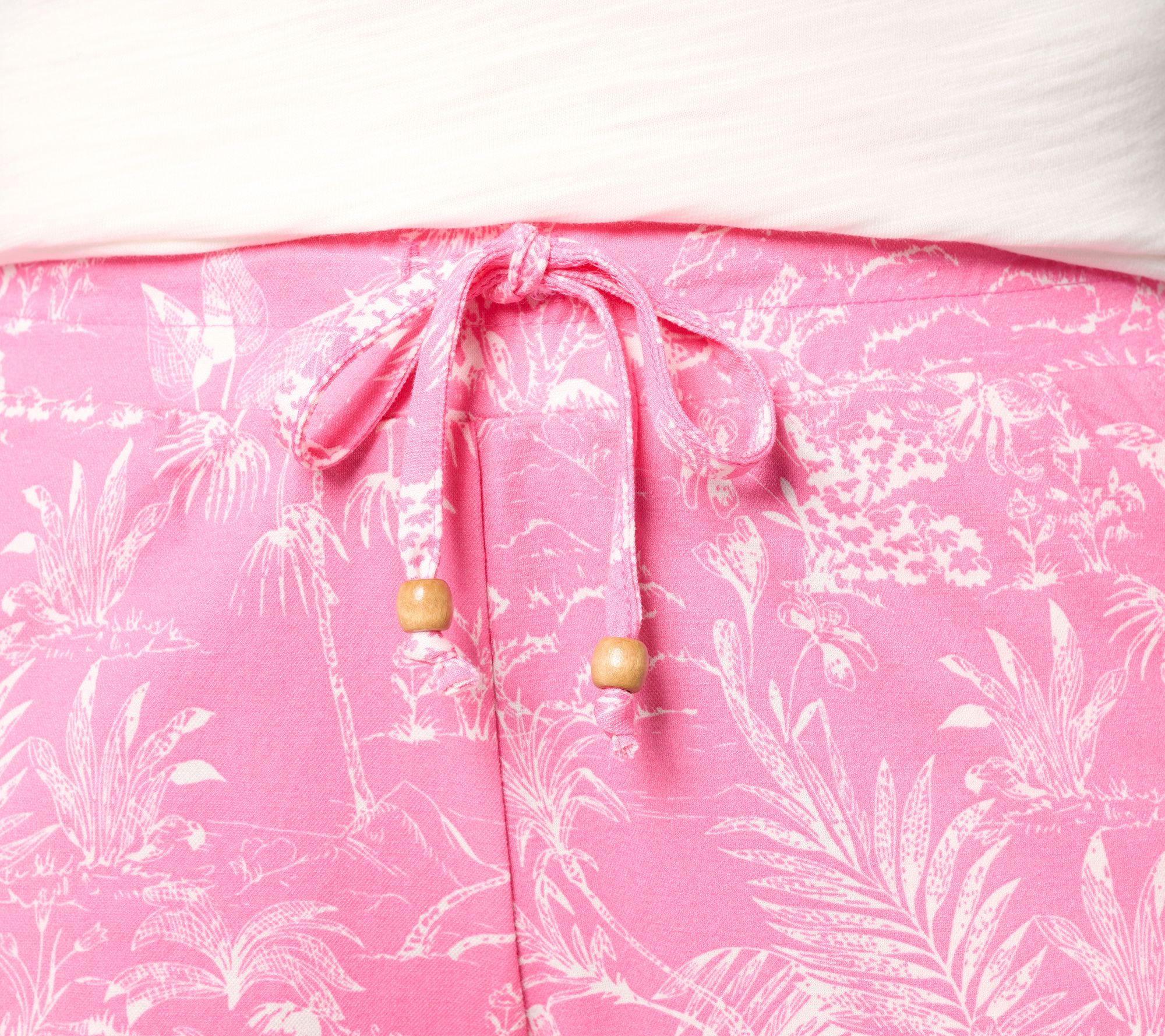 Even if there's no cabana or waves in sight, slipping into these printed cropped pants adds an energetic lift to your 'fit. Ready to take you from bustling morning errands to busy afternoon appointments (and maybe even a trip to the beach), the soft Cabana Knit and comfortable drawstring waist come together for an easygoing style you'll reach for again and again. From Belle Beach by Kim Gravel.