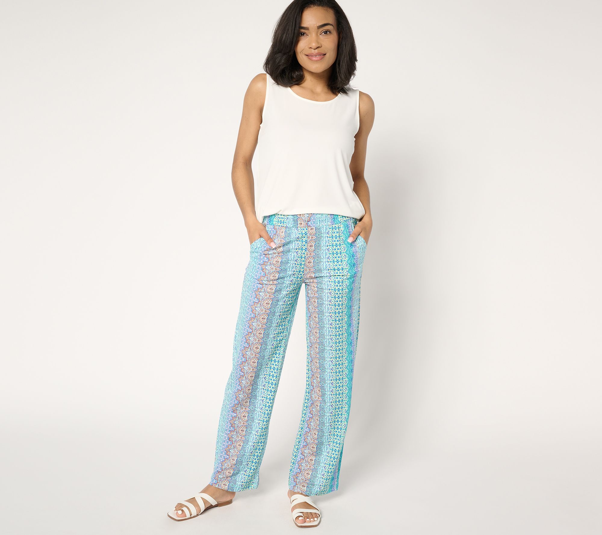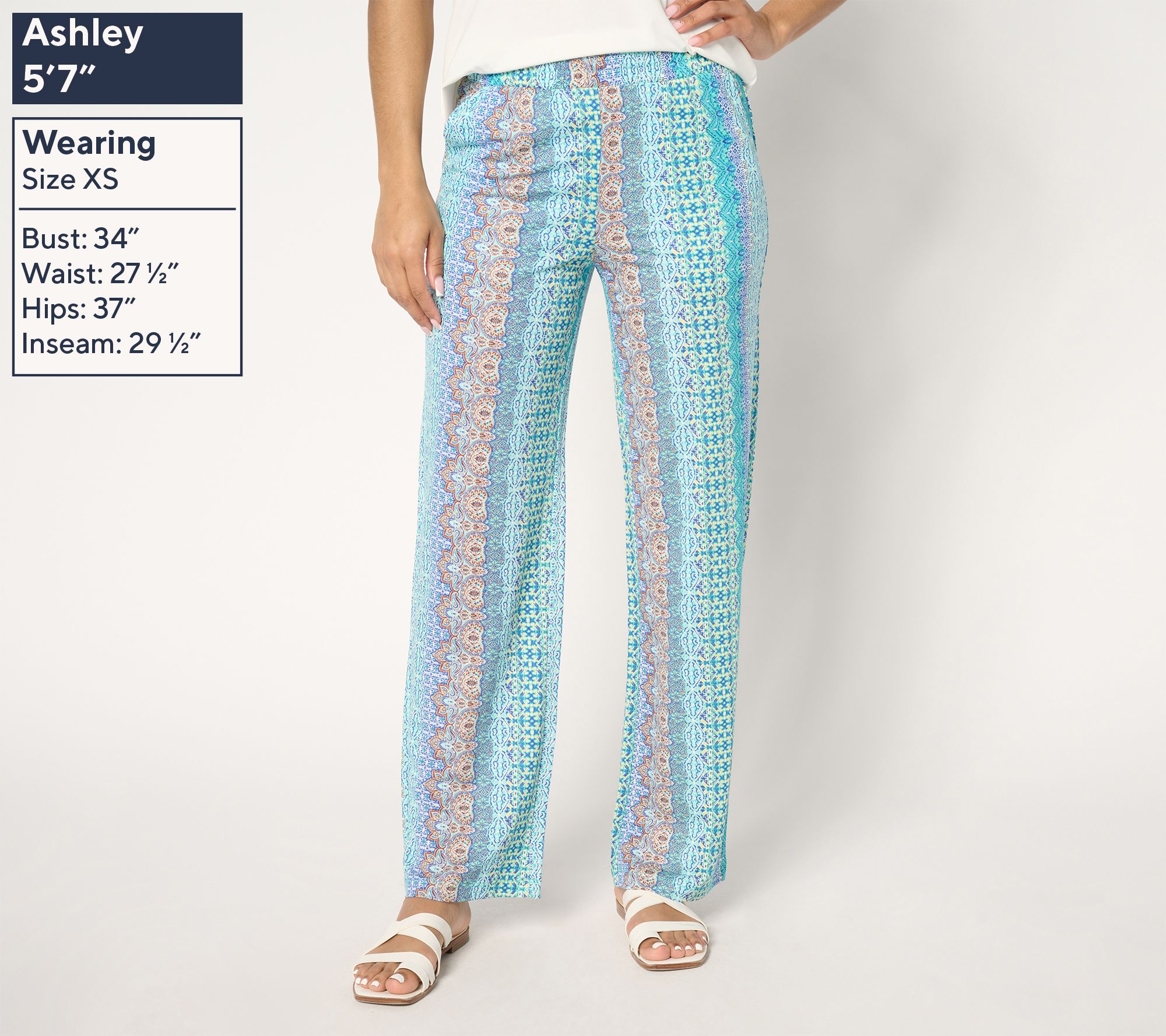 Bring on the boho! The perfect blend of comfort and coastal style, these Cabana Knit striped pants will become your go-to for casual outings and relaxed weekends. Their easy pull-on design and relaxed style fit right into your laid-back mantra, while the vertical striped pattern adds a free-spirited flair. Pair them with a solid top and sandals for a chic, effortless look that transitions seamlessly from beach to brunch. From Belle Beach by Kim Gravel.