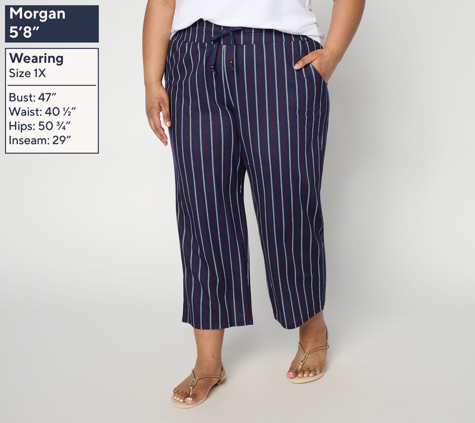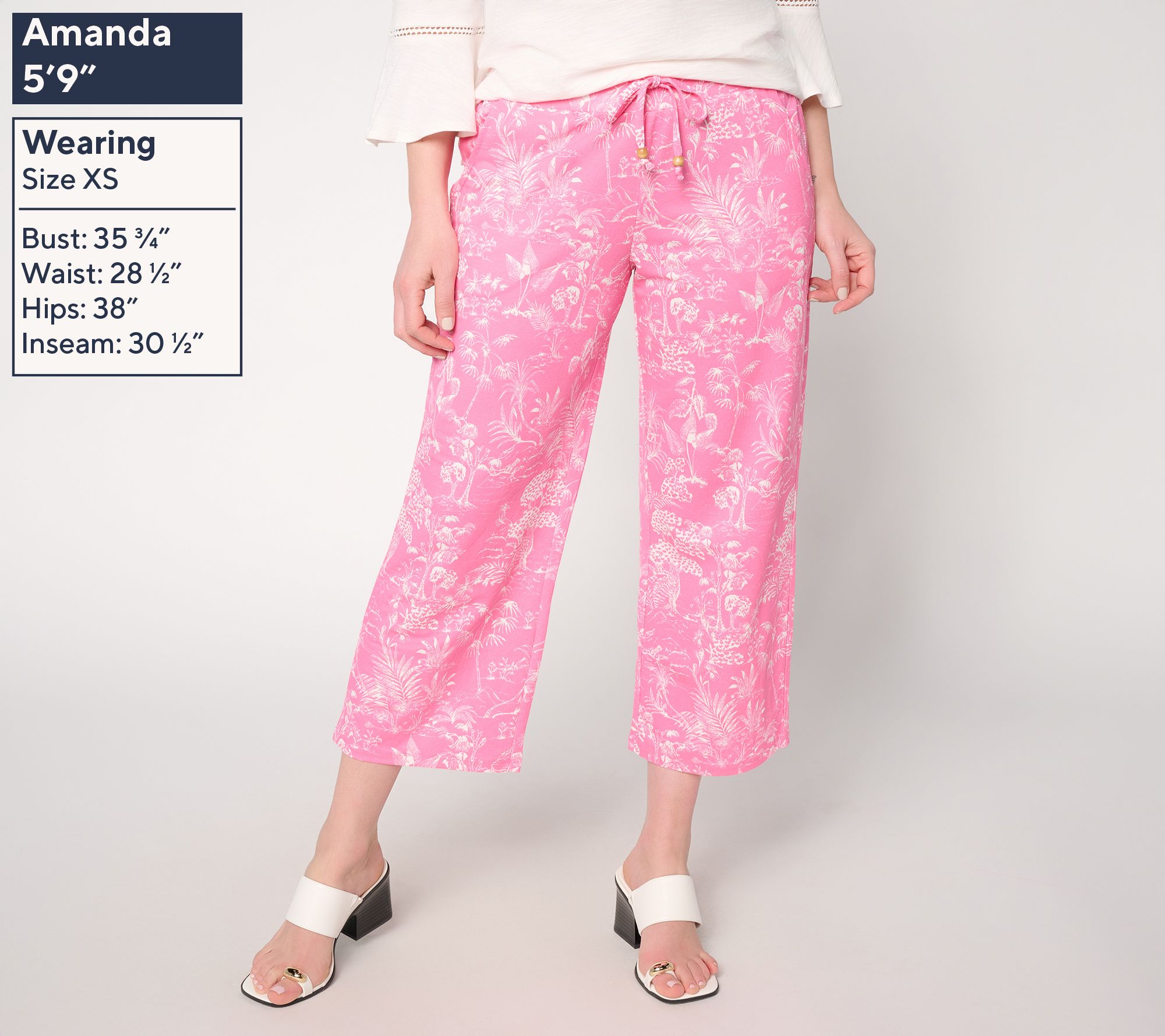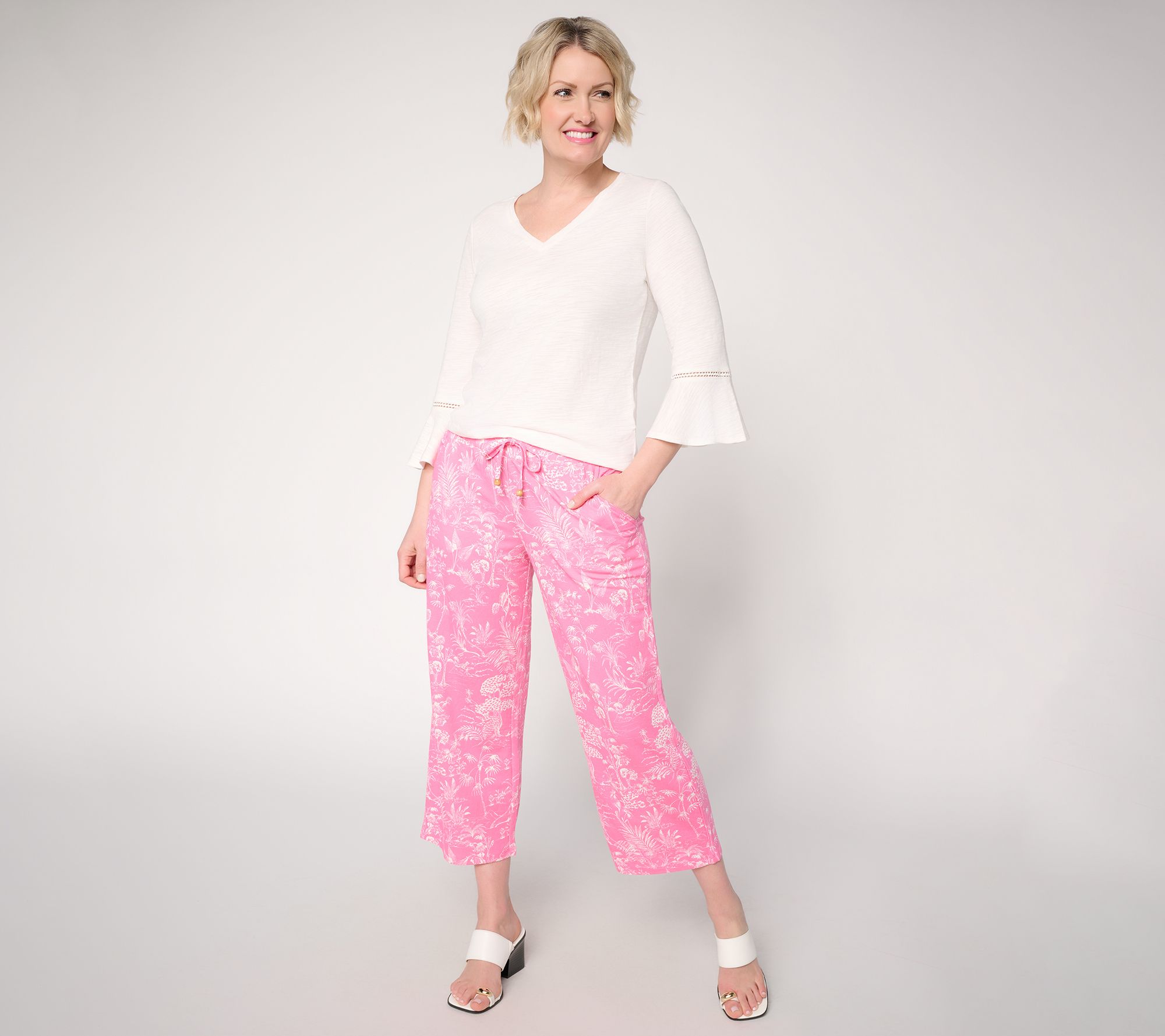 Even if there's no cabana or waves in sight, slipping into these printed cropped pants adds an energetic lift to your 'fit. Ready to take you from bustling morning errands to busy afternoon appointments (and maybe even a trip to the beach), the soft Cabana Knit and comfortable drawstring waist come together for an easygoing style you'll reach for again and again. From Belle Beach by Kim Gravel.