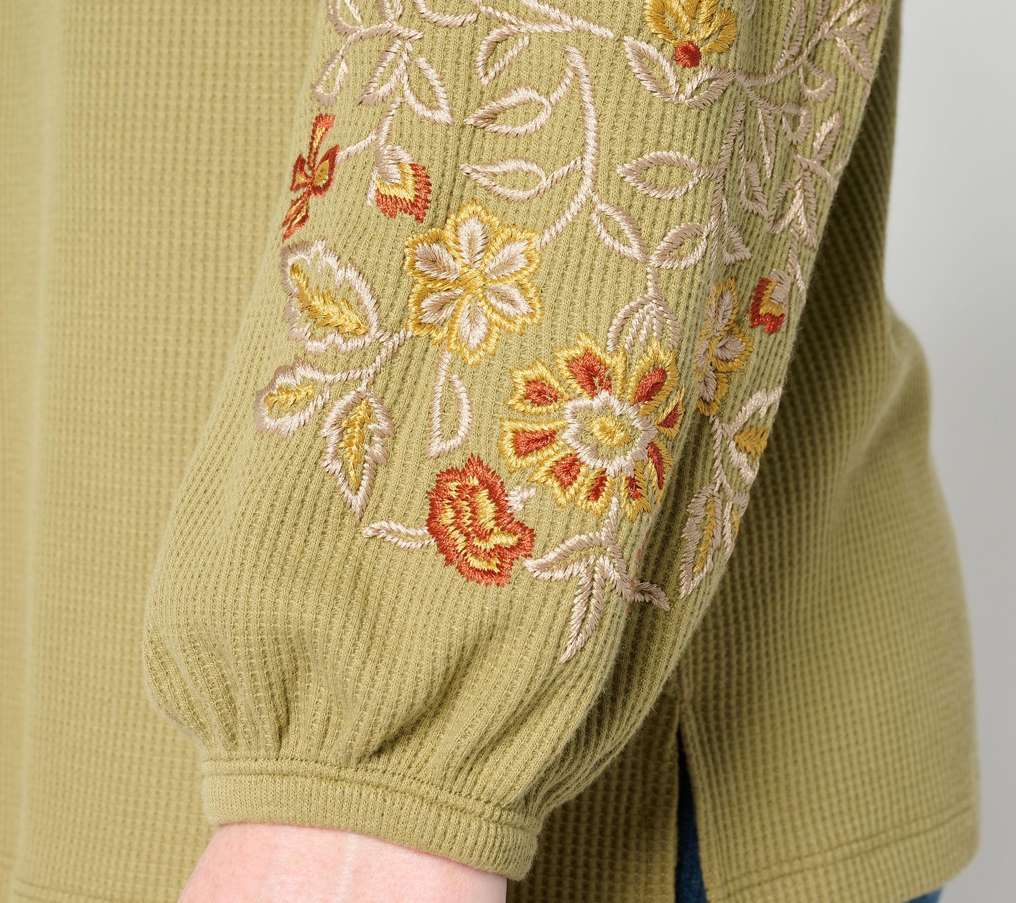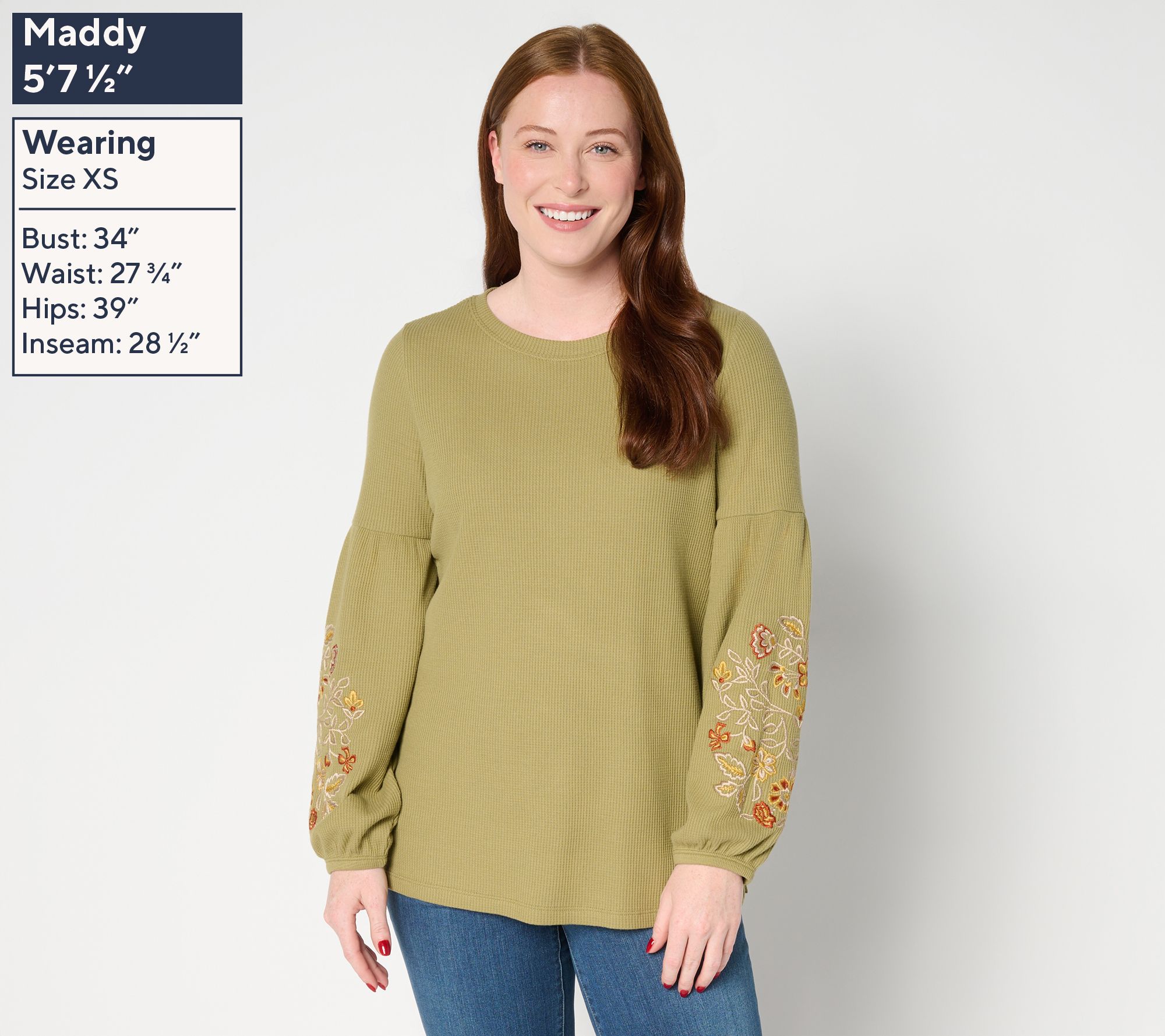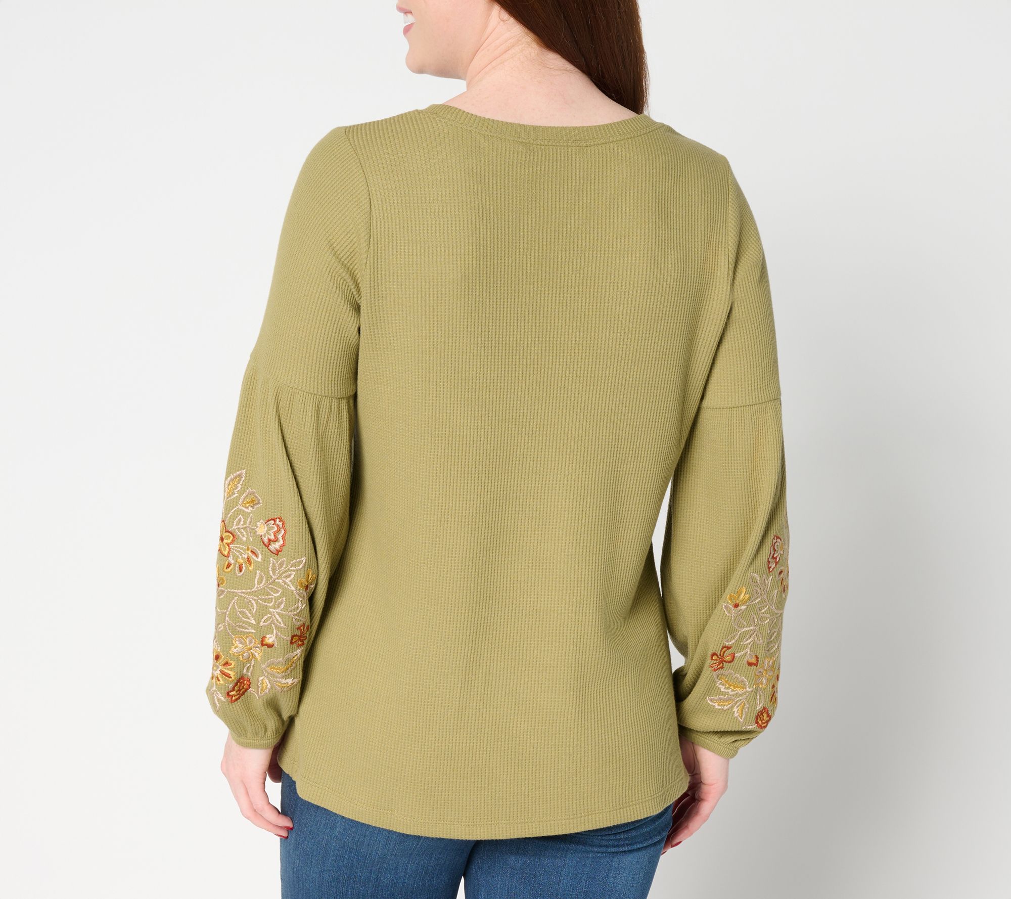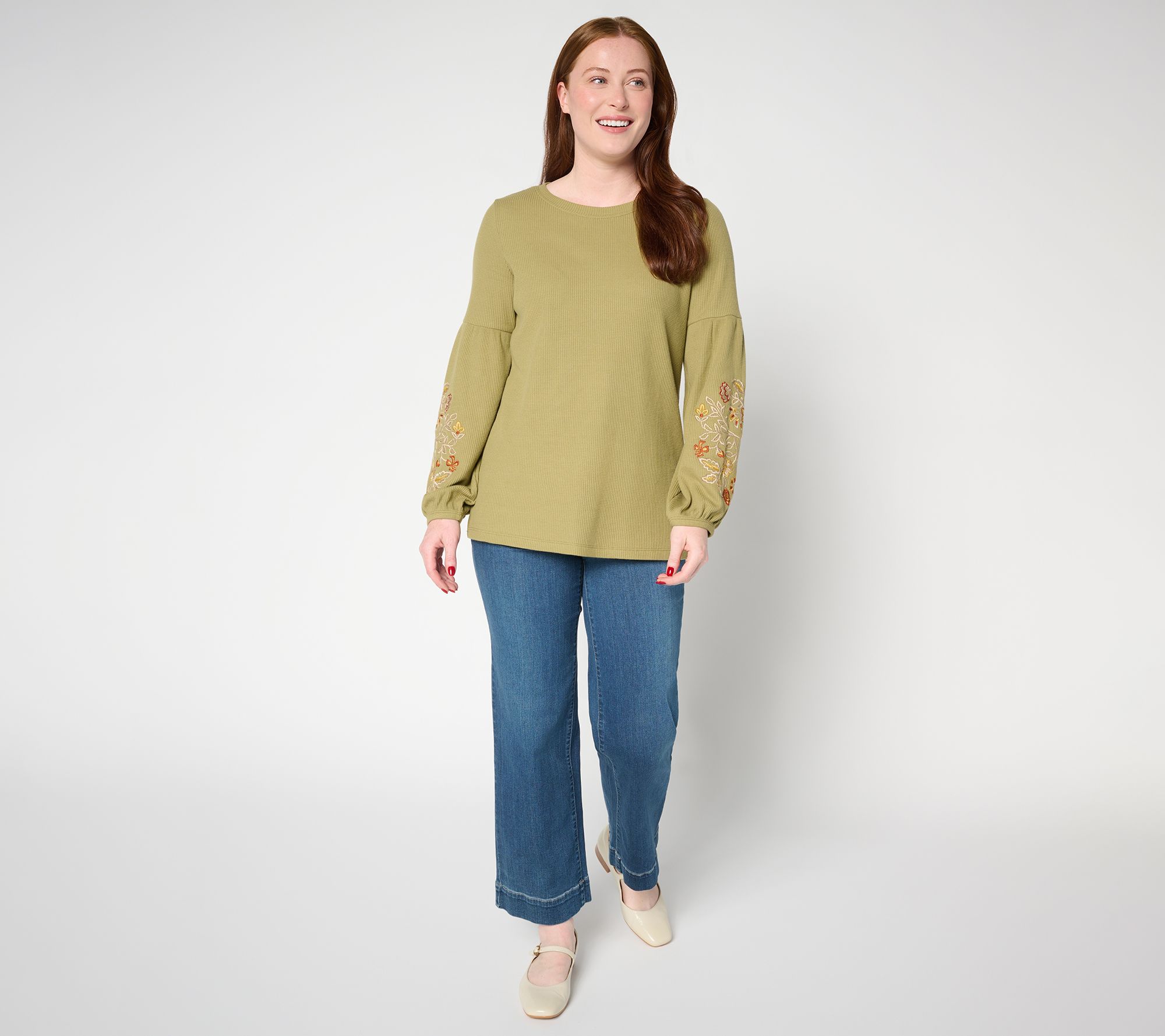 Weekday errands or weekend outings both feel a little more special with this lantern-sleeve top. The micro-waffle knit adds a touch of texture, while the boatneck flatters and frames your neckline -- ideal for pairing with your go-to jewelry. Slight side slits at the hem give you room to move, so slipping this semi-fitted style into your lineup is a breeze. From Belle Boho by Kim Gravel.