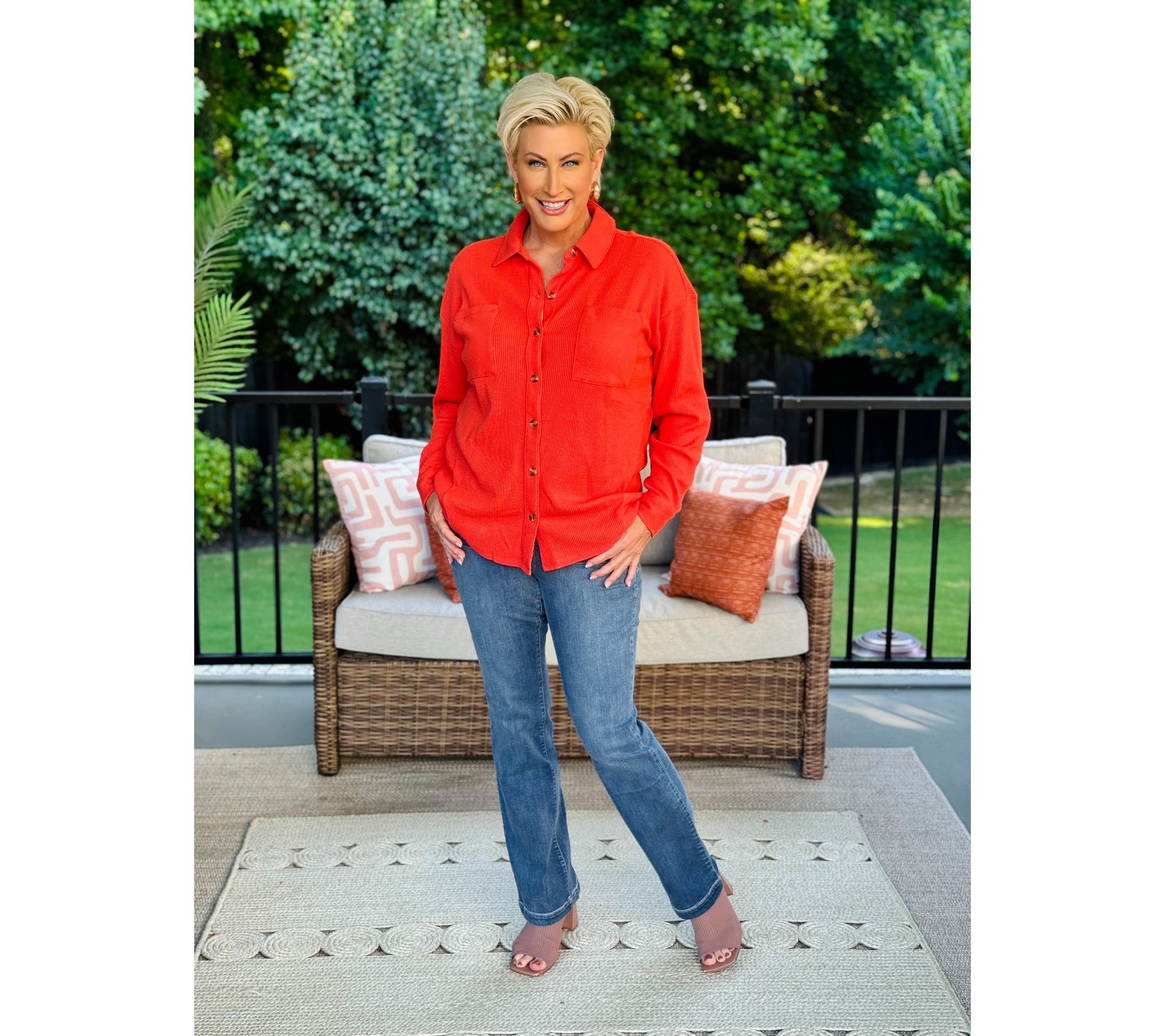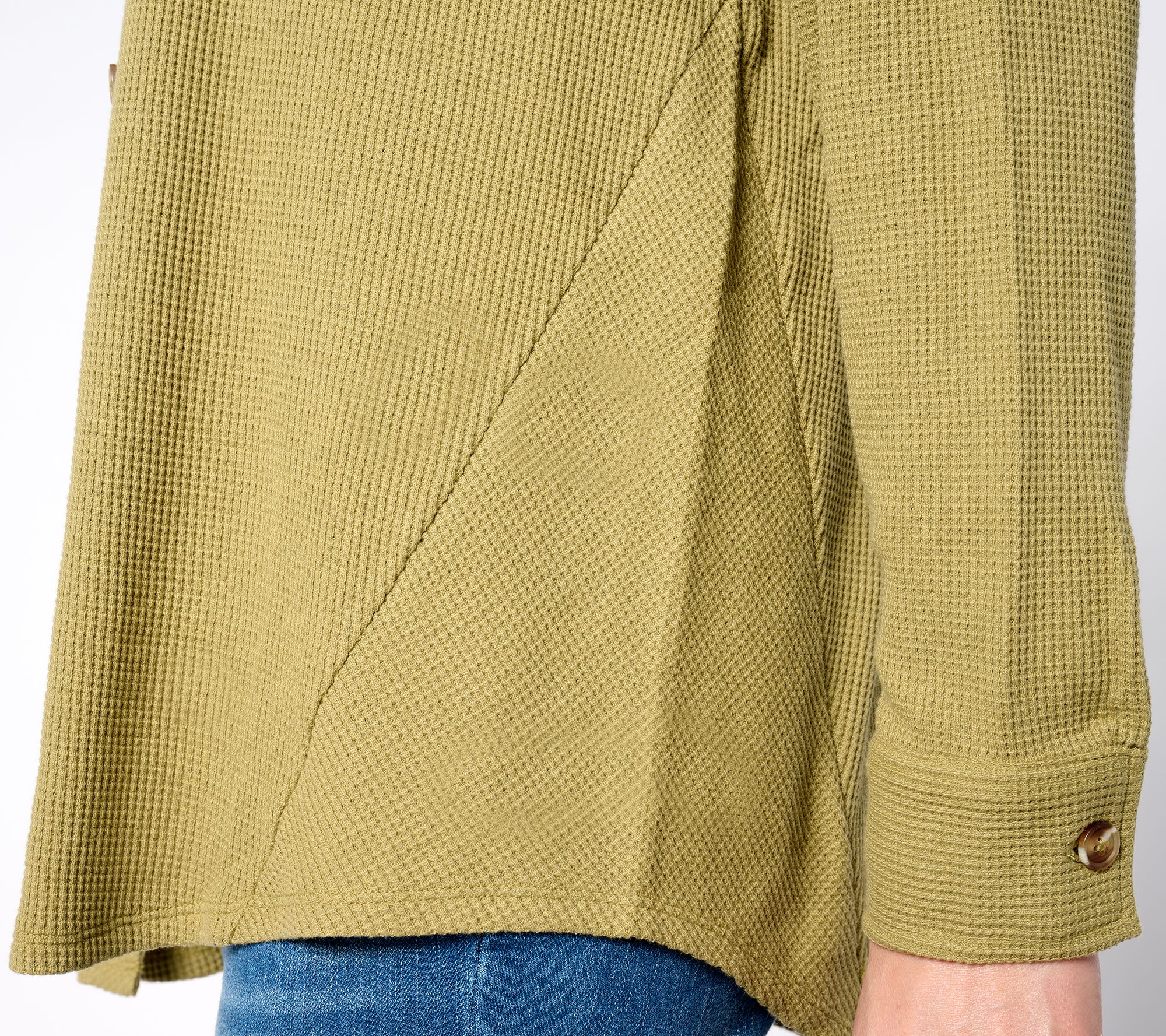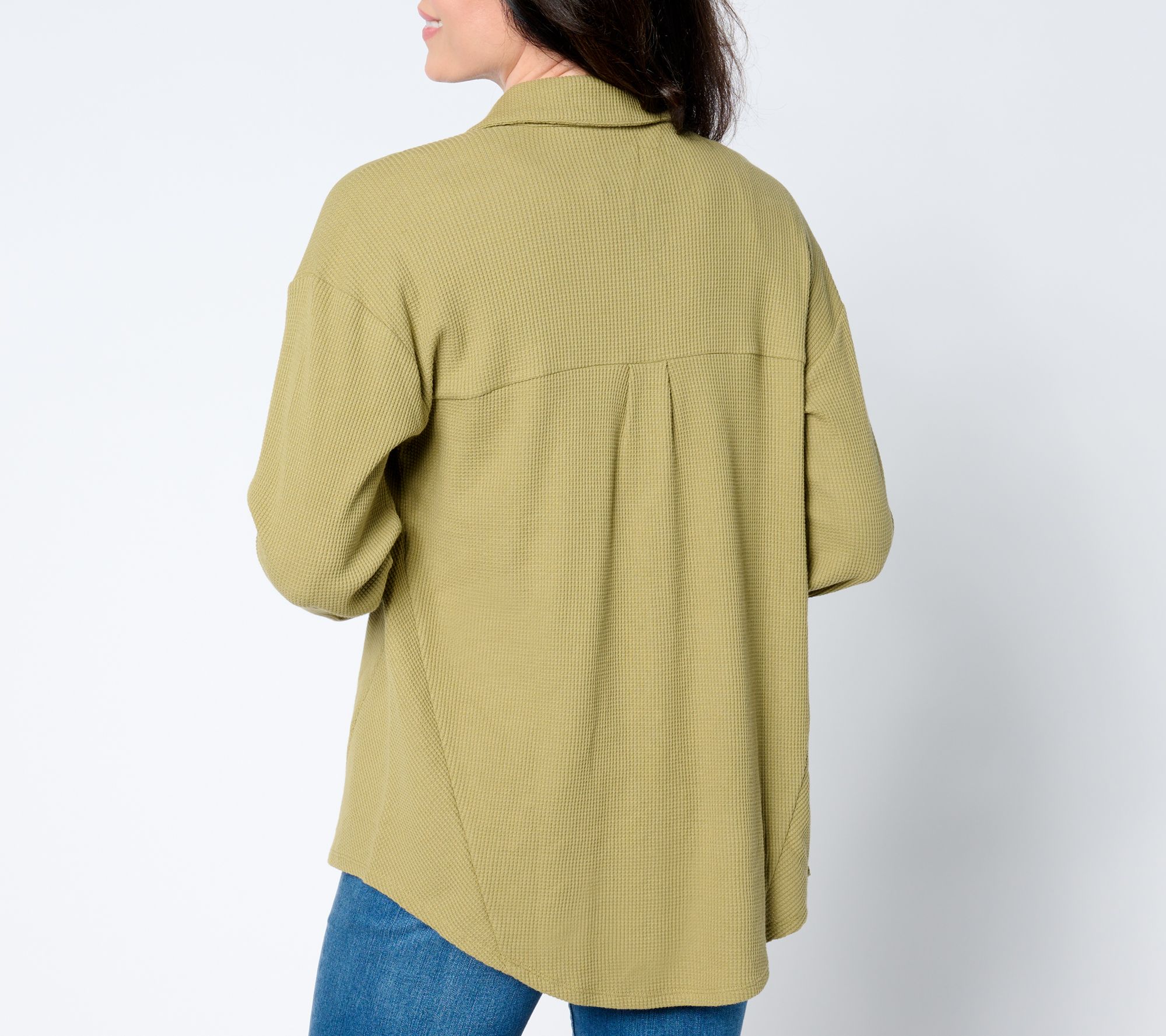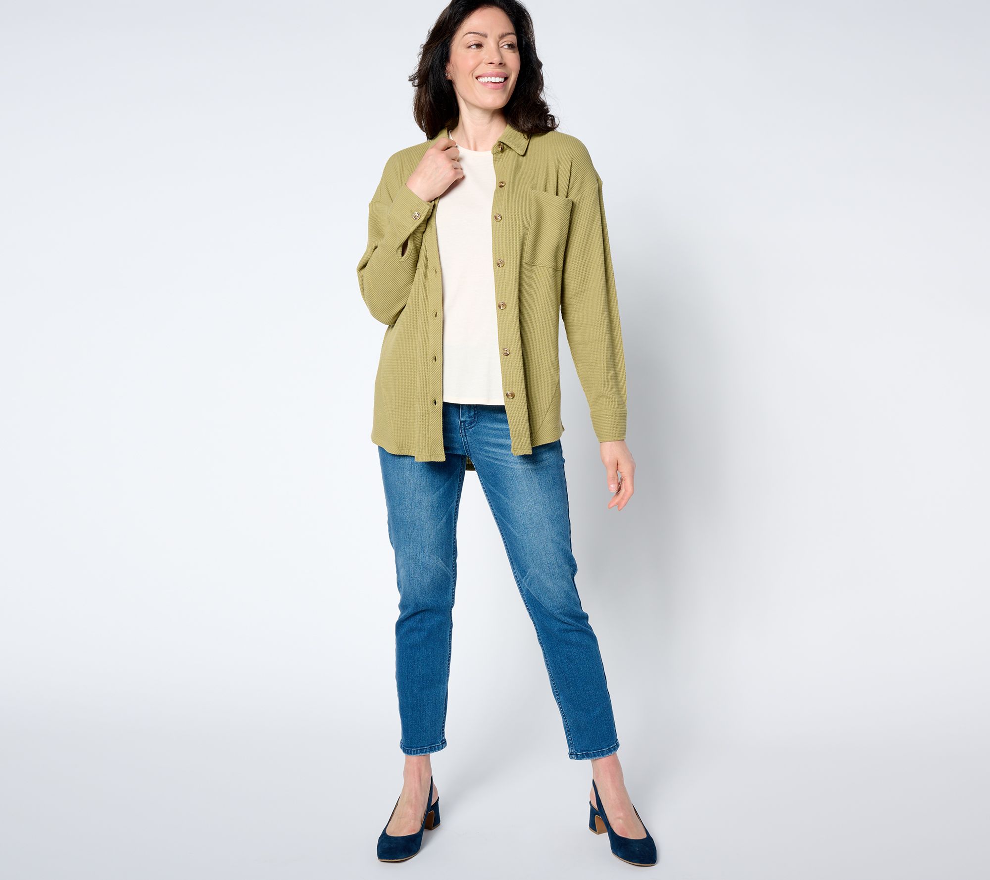 Leave the cardigan in the closet and opt for this waffle knit shacket instead. After all, it pairs perfectly with all your tanks and tees and adds a touch of casual sophistication. From Belle by Kim Gravel.