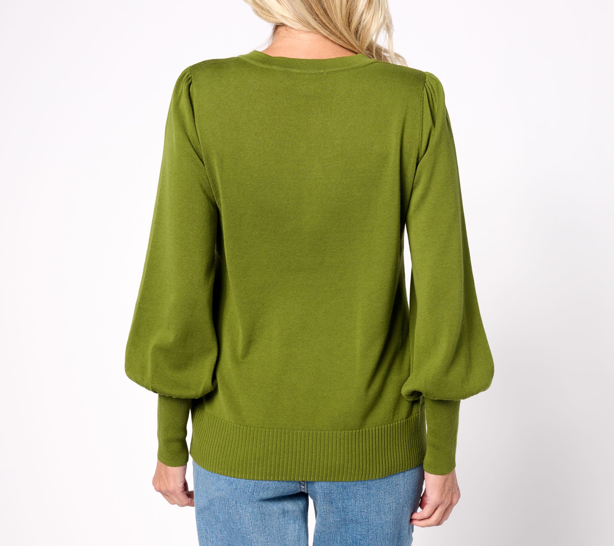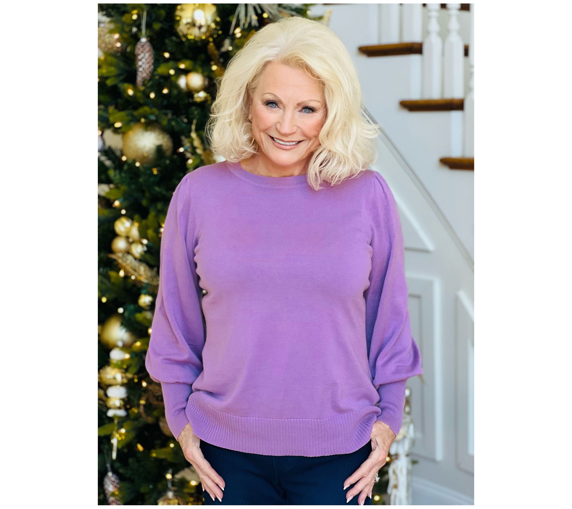 Looking for a distinctive piece that matches your fabulous sense of style? Look no further than this lovely sweater that stands out with fantastic bishop sleeves. From Belle by Kim Gravel.