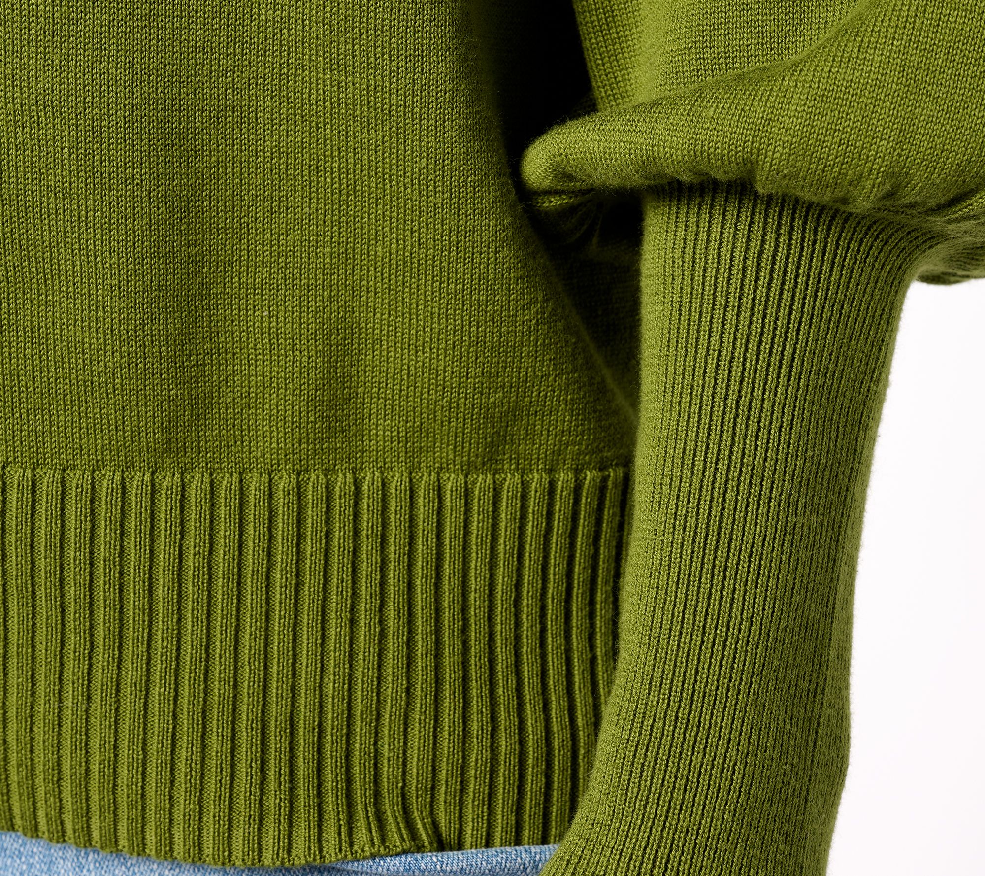 Features: long bishop sleeves, crew neck, long ribbed cuff, straight hem, ribbed bottom band