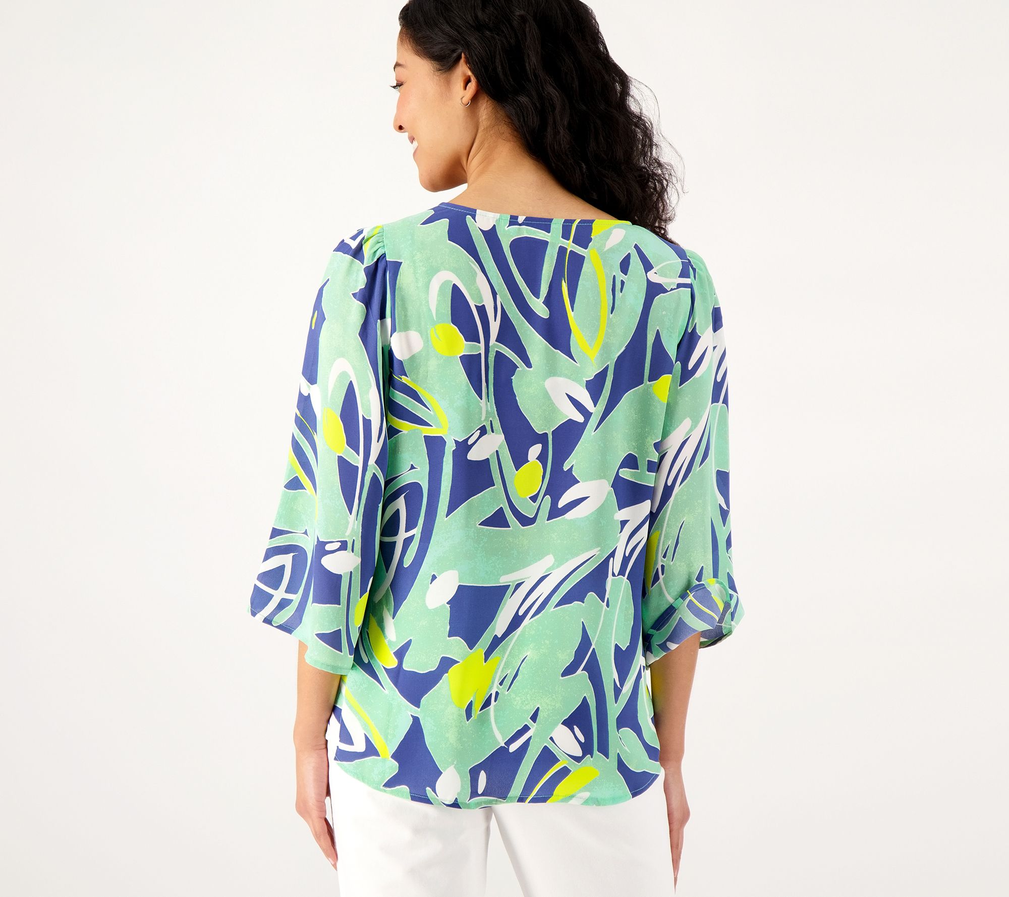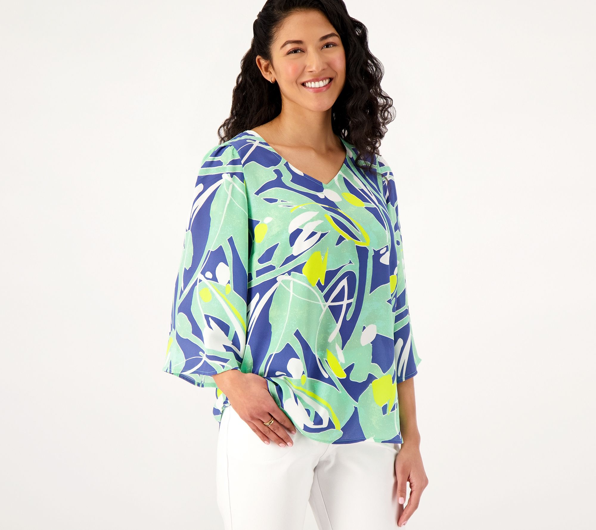 Headed out? Heads will turn when you make your entrance wearing this color-splashed Kim Gravel top. It has all those first-date feels (when you want to be casual but make a great first impression) and will definitely steal plenty of second glances. From Belle by Kim Gravel.