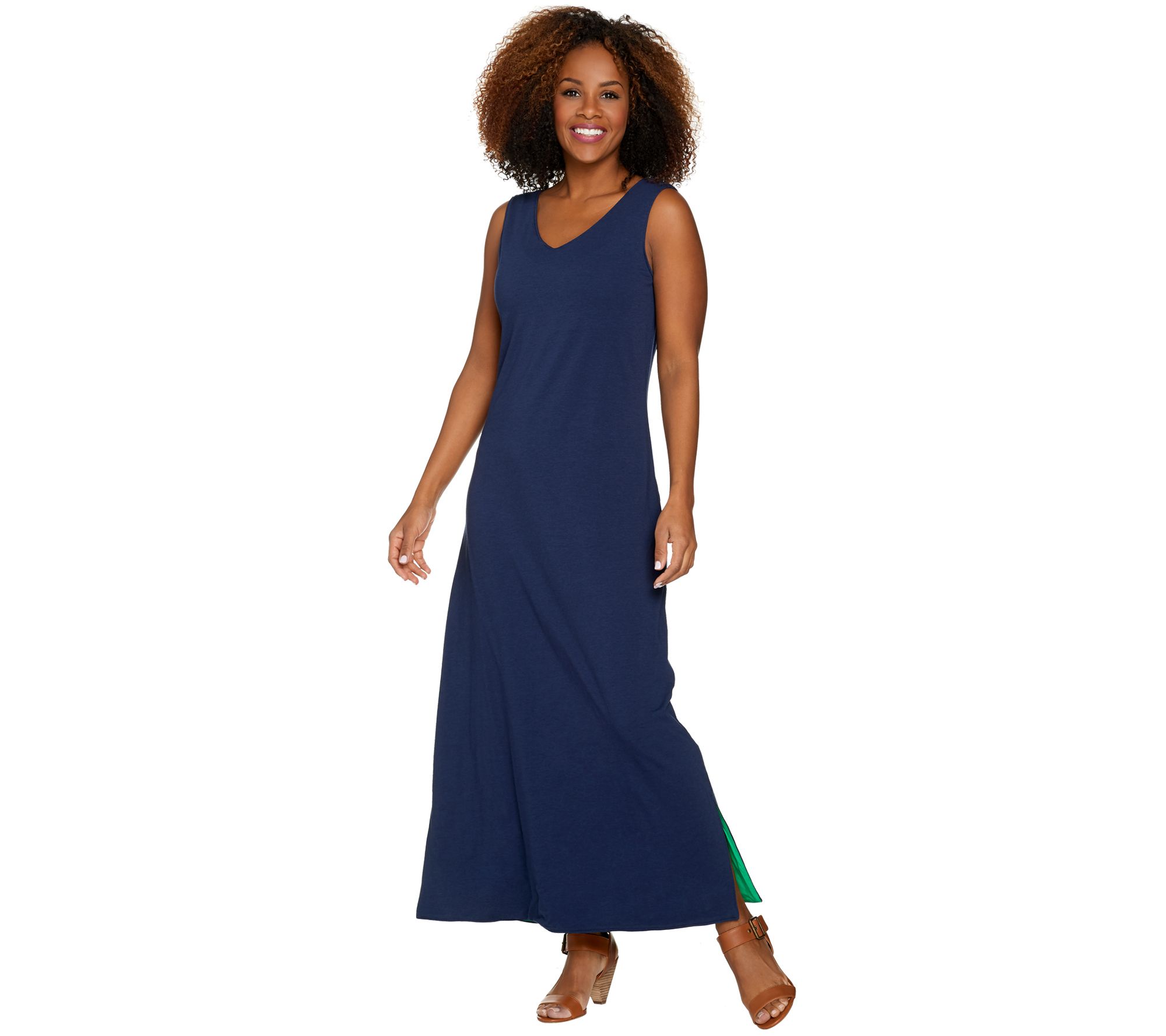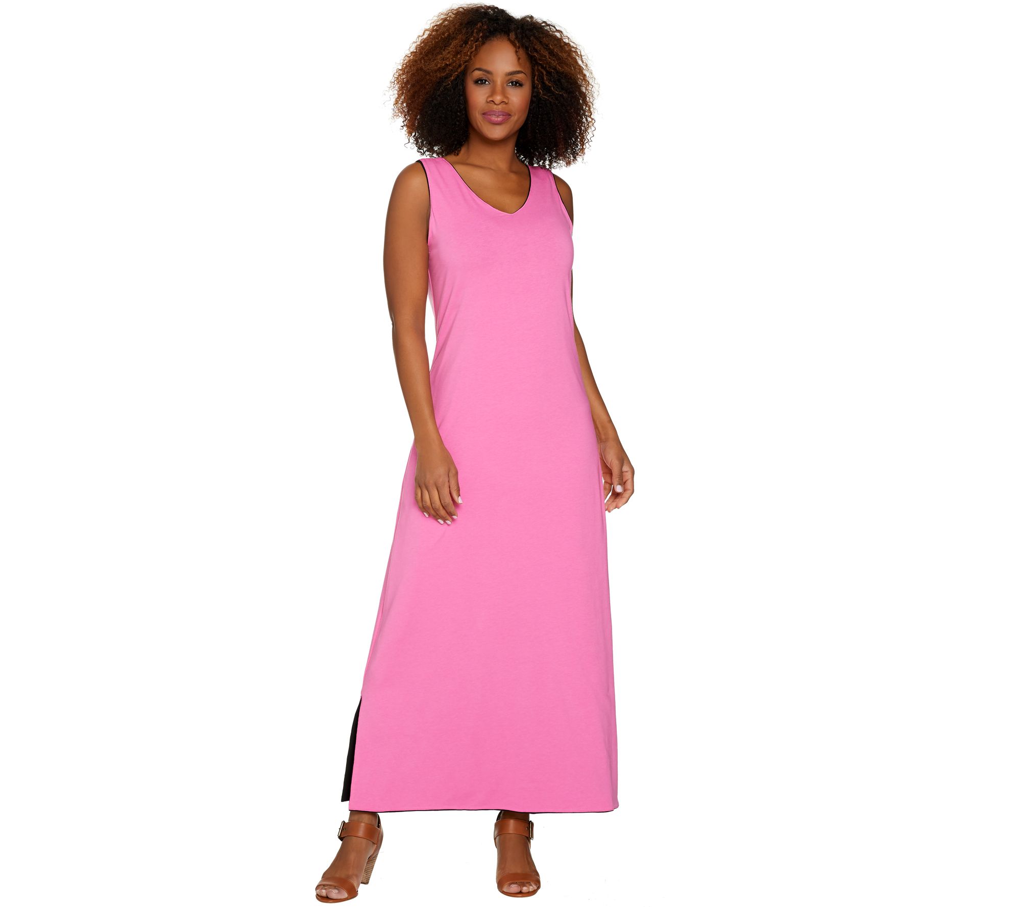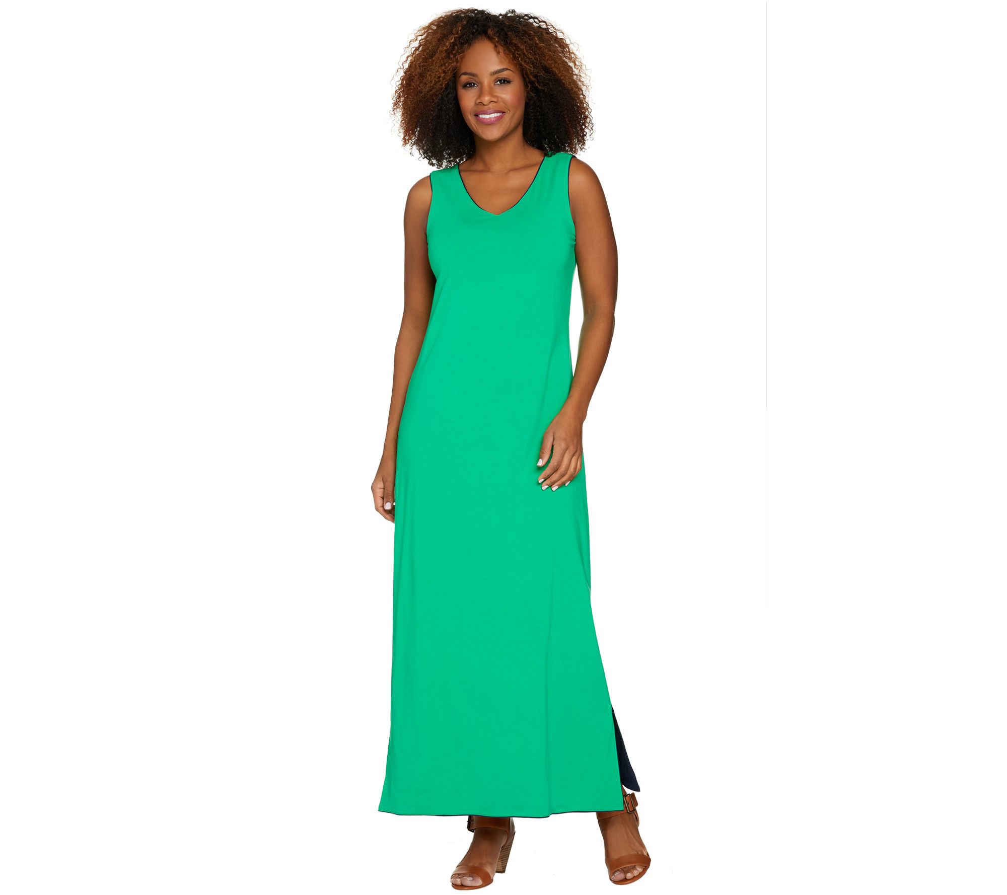 Double down. This Belle by Kim Gravel essentials maxi deals out two looks in one great dress. The tank style maxi dress is reversible, allowing you to lounge by the pool during the day then reverse it and dine out with friends at night. From Belle by Kim Gravel.