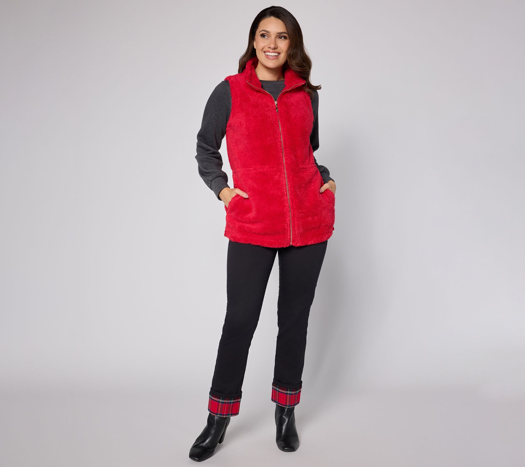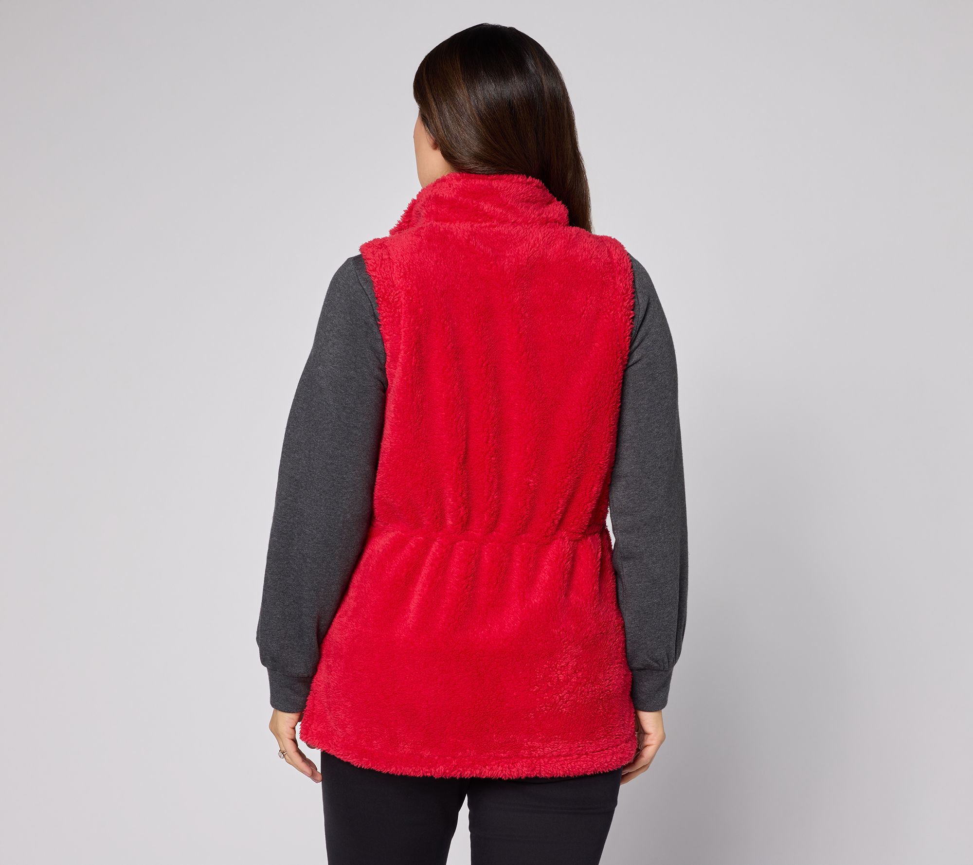 Embrace cozy moments, from running errands to enjoying coffee catch-ups, with this sherpa vest that brings plush warmth and style to cooler days. The adjustable waist lets you tailor the fit, and on-seam pockets make for easy storage of essentials. From Belle by Kim Gravel.