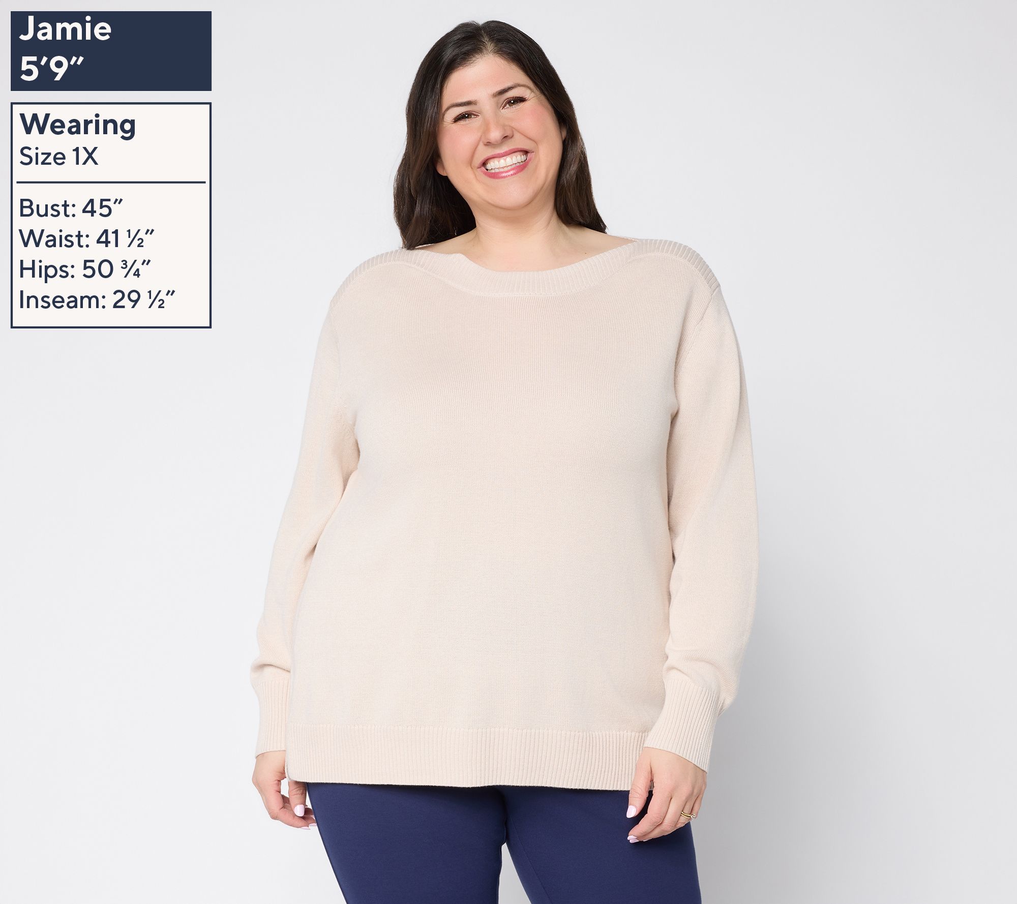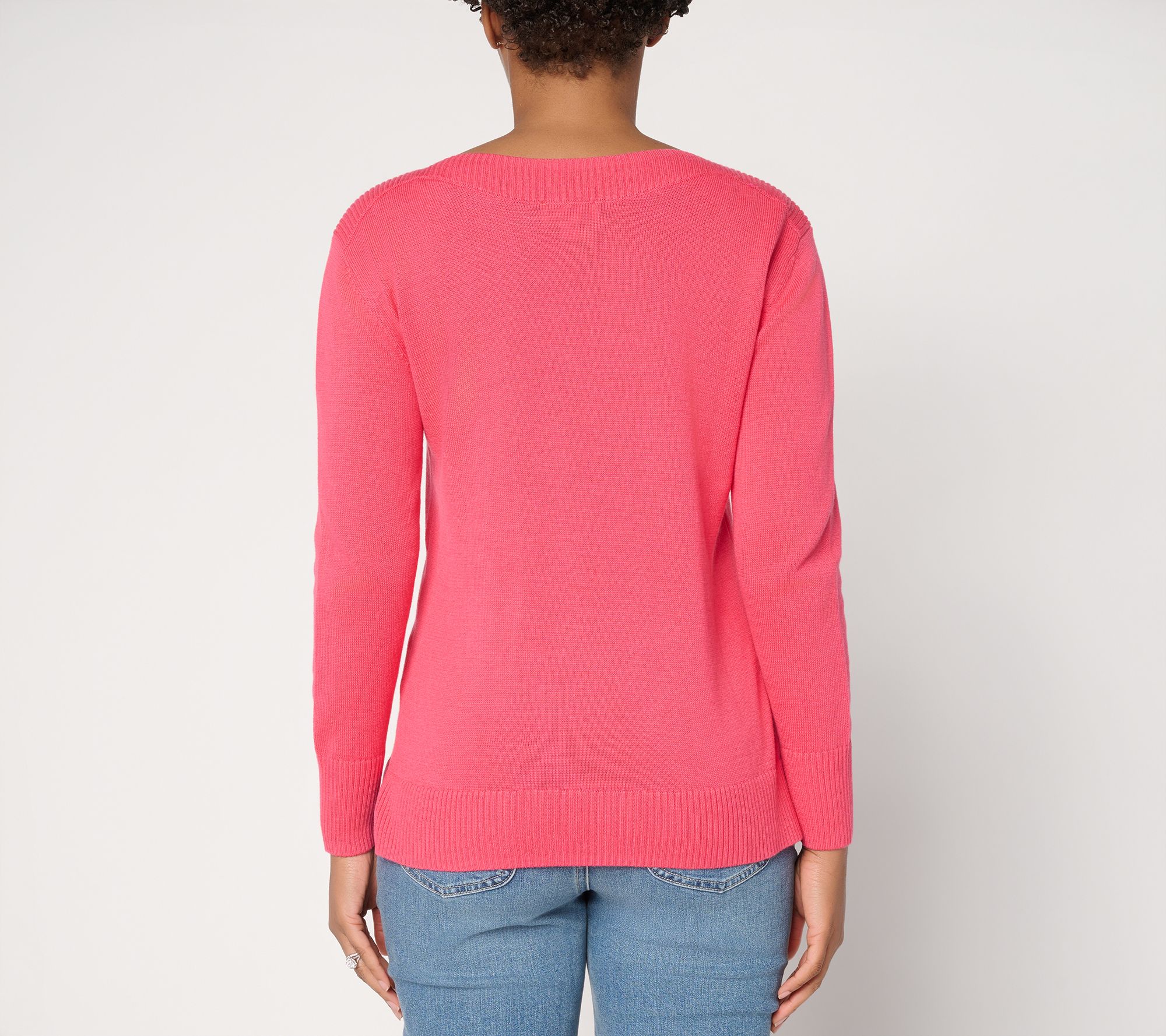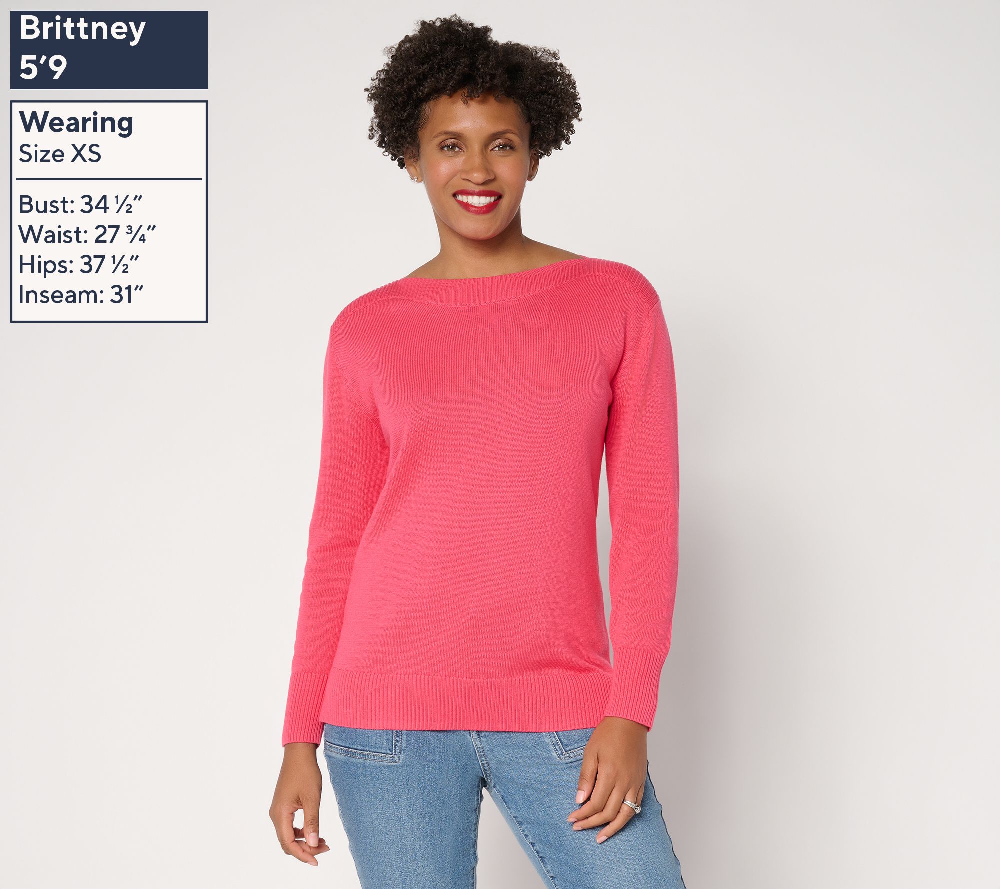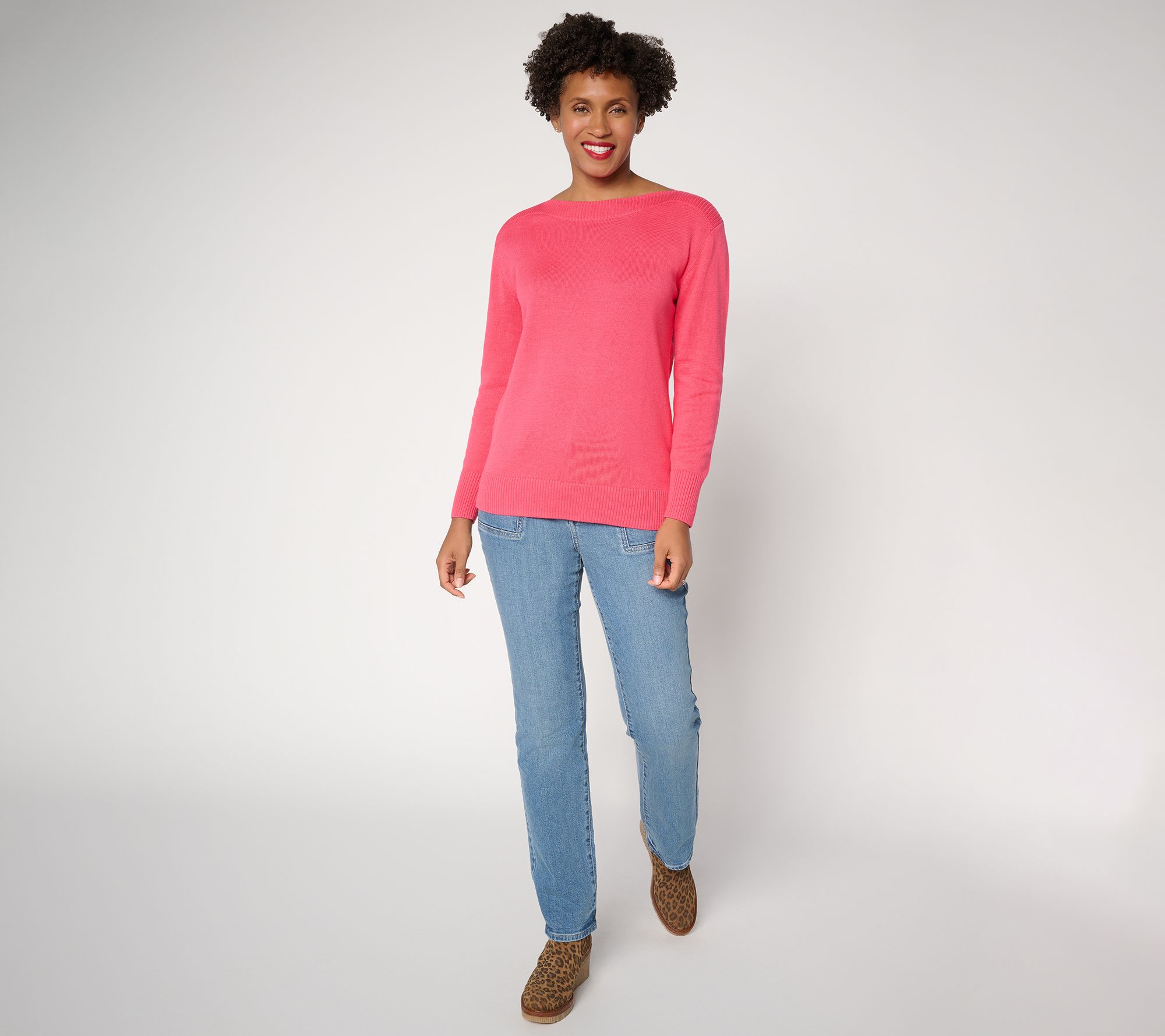How did this sweater get to be Kim's favorite? Start with a refined sweater knit as comfortable in front of a crowd as it is on the couch, add a visually elongating boatneck that provides that just-right coverage, and finish with fresh (or classic) colorways that keep us coming back for more. Winner, winner! From Belle by Kim Gravel.