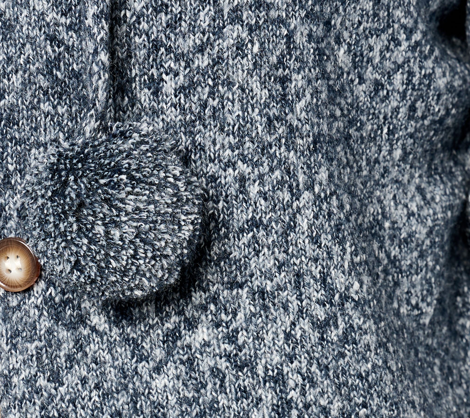 Stay cozy and stylish with the Belle by Kim Gravel Let's Get Cozy pom-pom cardigan. This semi-fitted cardigan features a ribbed mock neck, long sleeves with ribbed cuffs, and playful pom-pom drawstrings, making it perfect for layering on chilly days. From Belle by Kim Gravel.