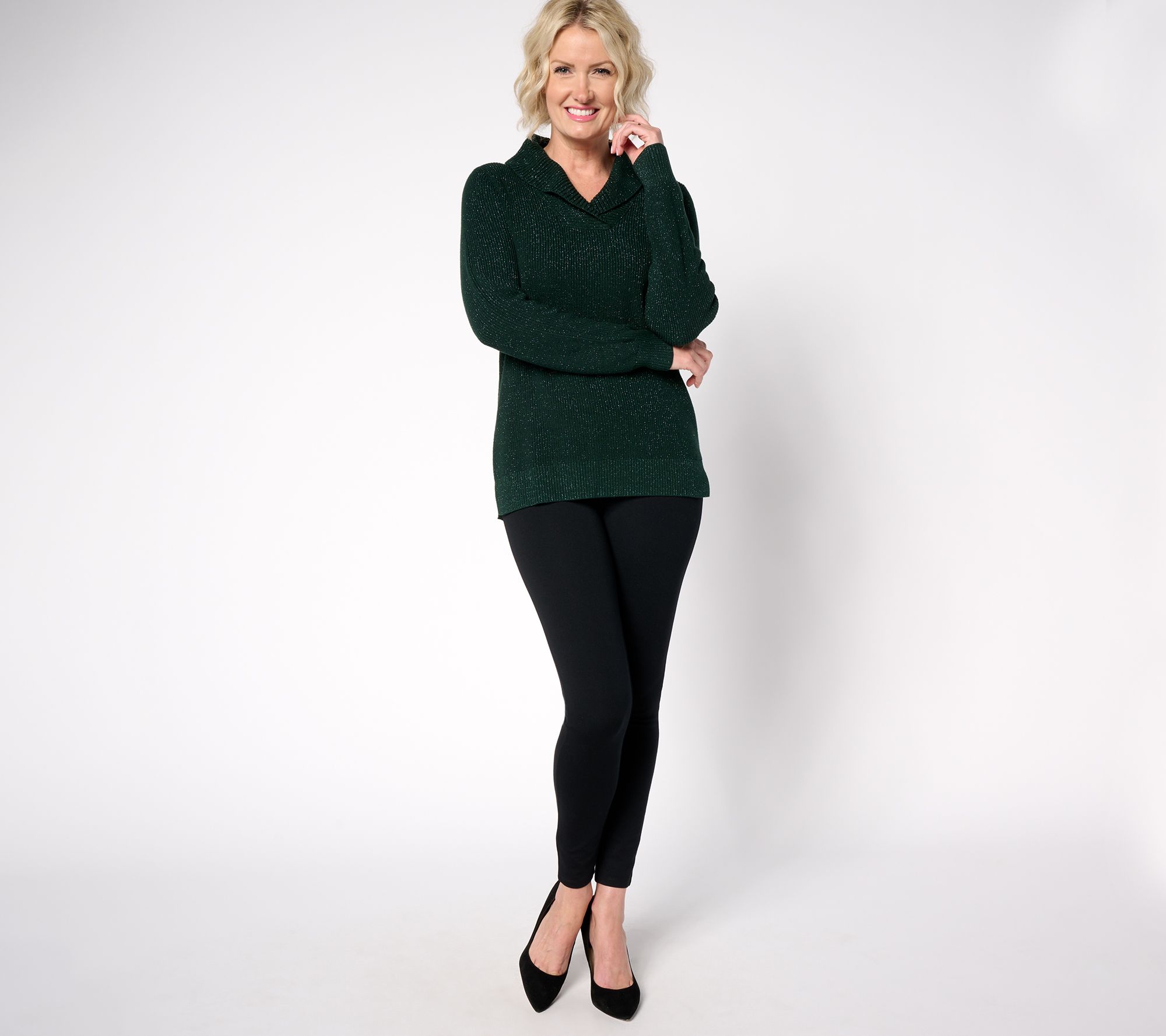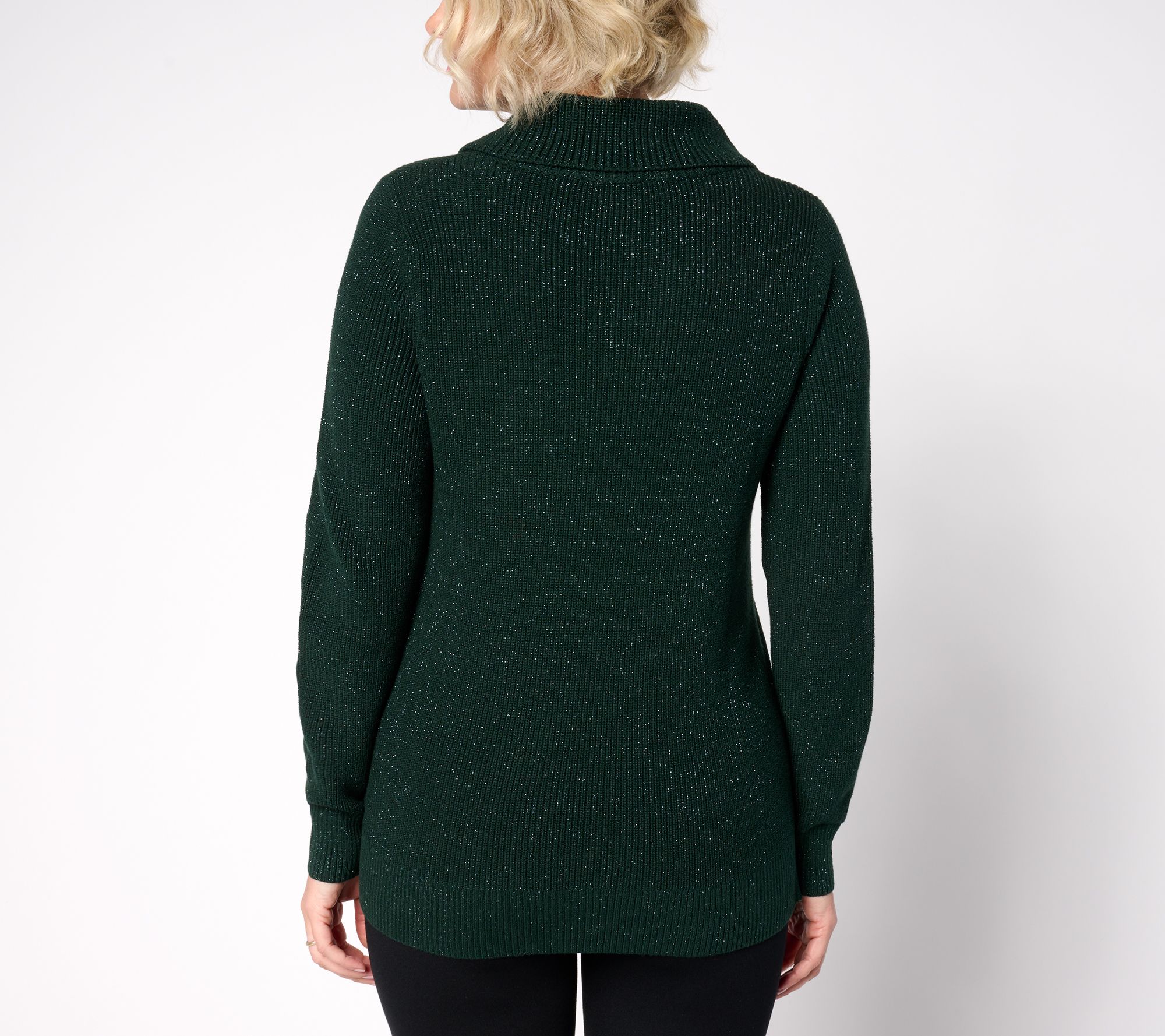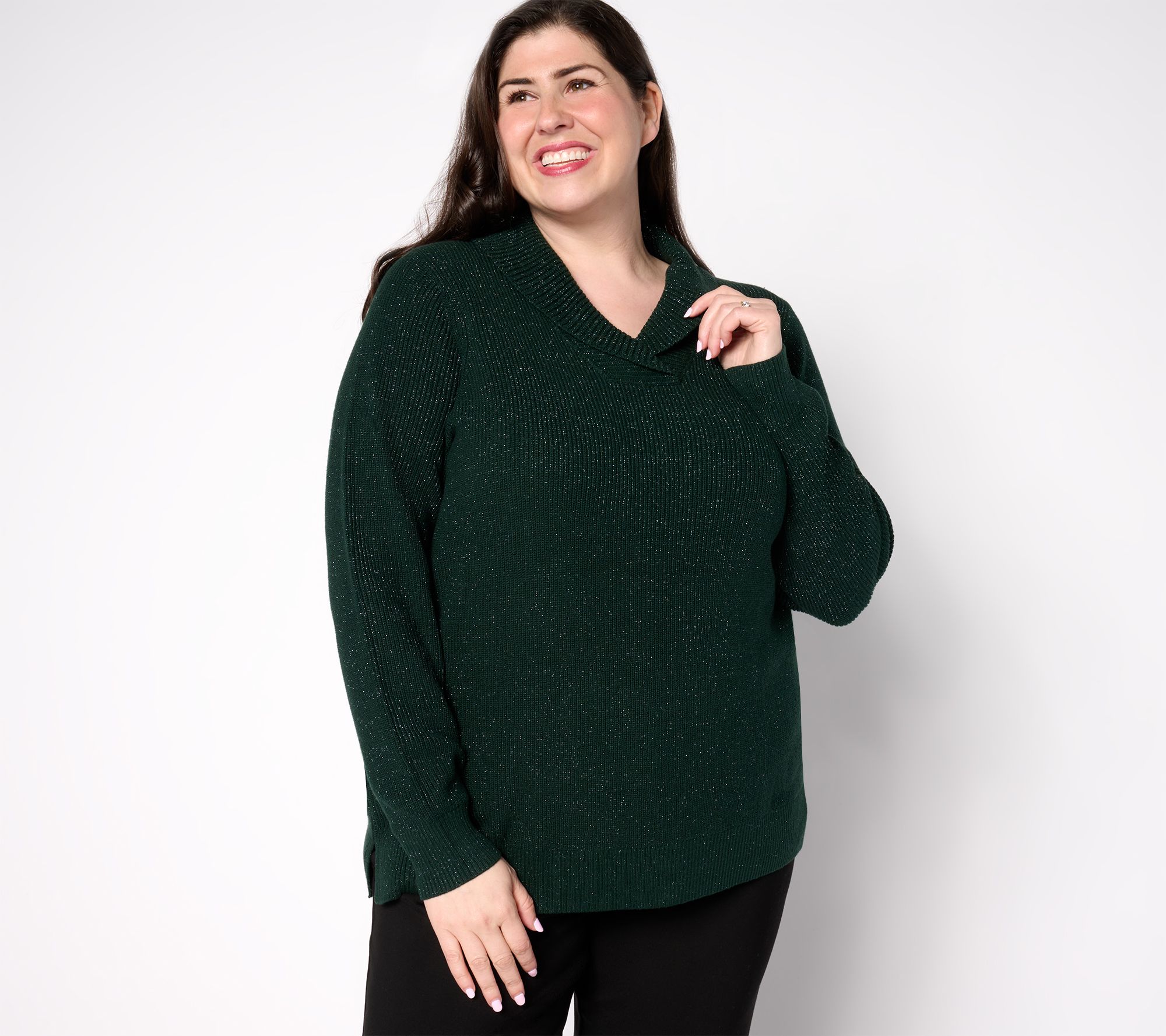 Get into the spirit! The subtle shimmer of this shaker-knit sweater reflects the good vibes of the season in an everyday kind of way. From Belle by Kim Gravel.