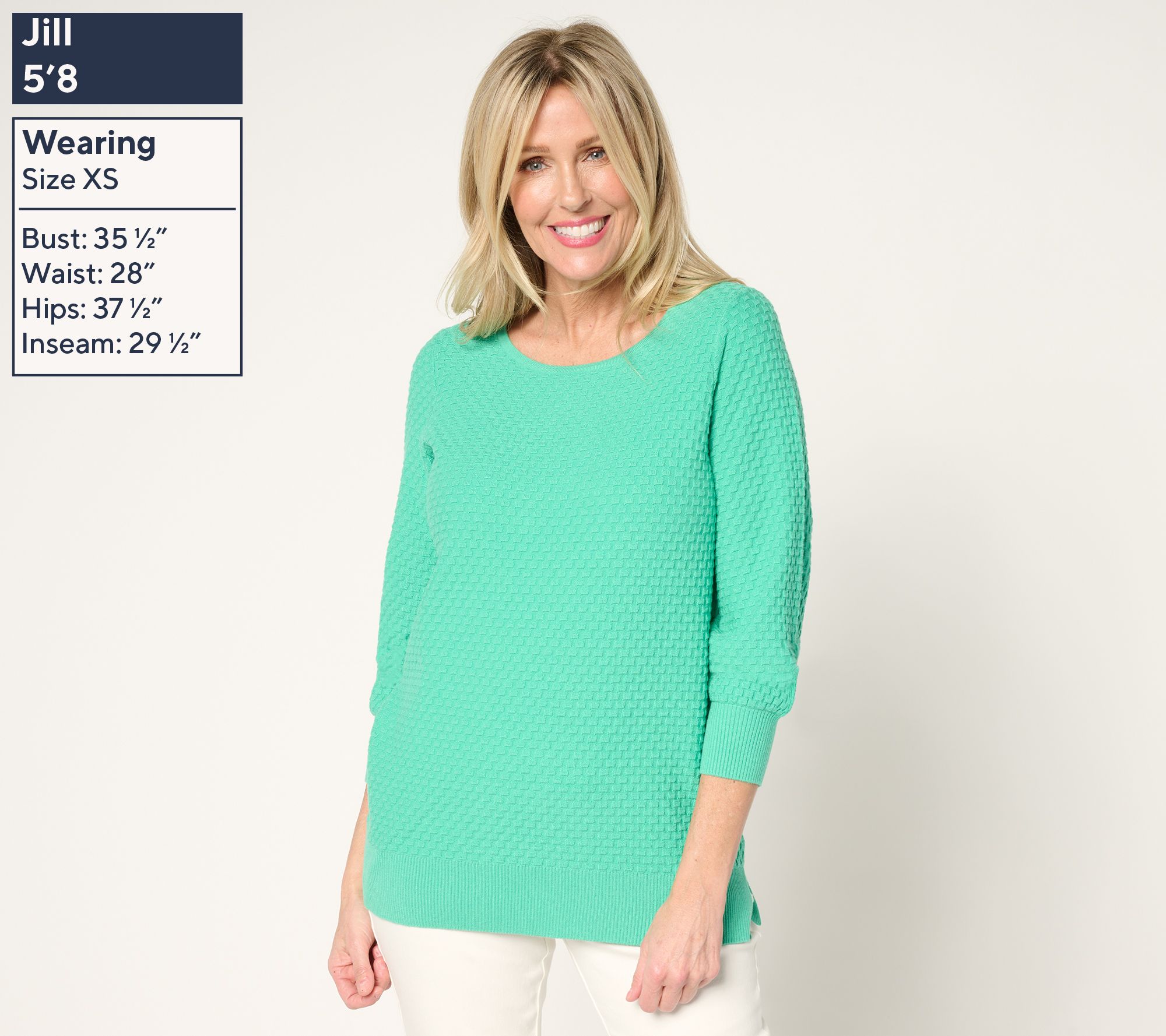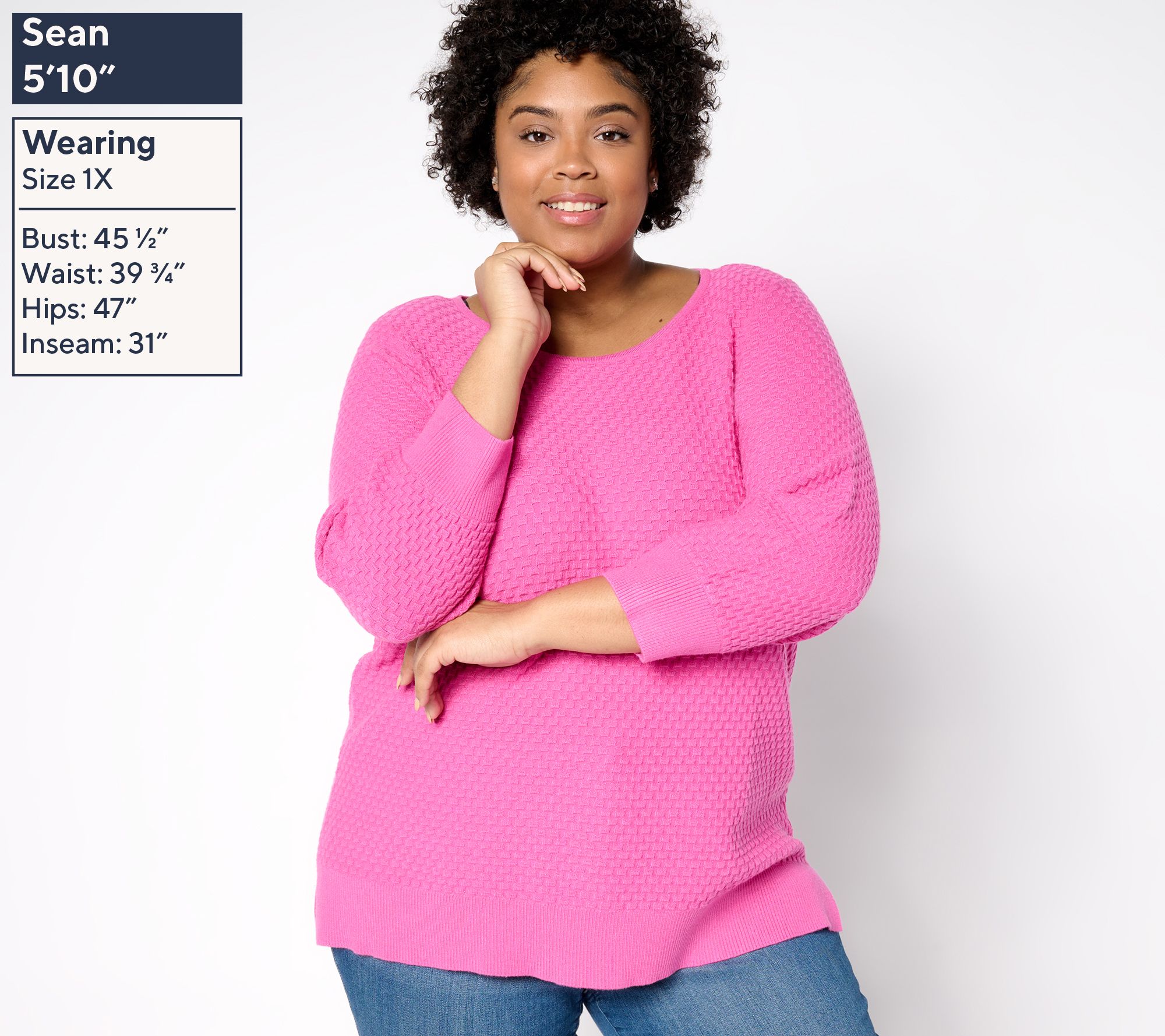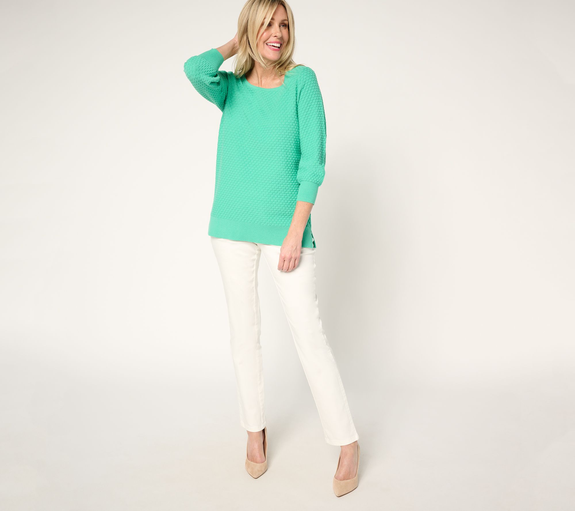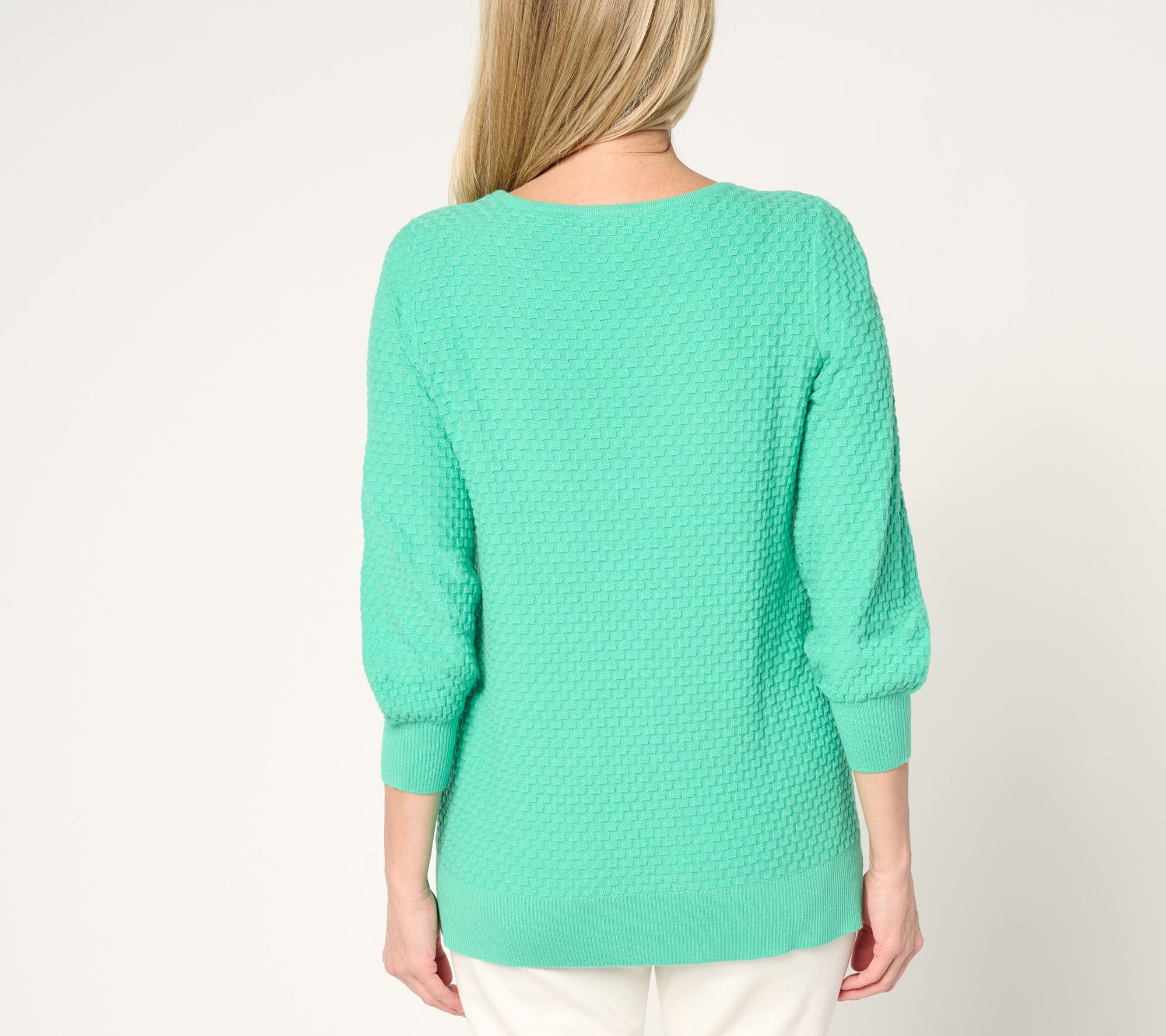Now serving: a winning look on and off the court with this luxe-textured sweater from Belle by Kim Gravel. Whether you're warming up for pickleball or relaxing with friends at dinner (while staying out of the kitchen), the blouson-sleeve beauty keeps your style on-point. From Belle by Kim Gravel.