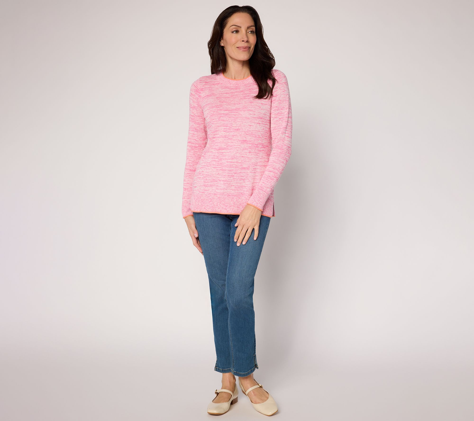 Sparkly sodas and '90s boy bands are fun, but Kim's favorite kind of pop? A color pop, of course! Whether layered over your favorite tee for morning walks or paired with jeans for casual gatherings, this splashy marled sweater (in 100% cotton!) brings warmth and charm to your everyday fabulous routine. From Belle by Kim Gravel.