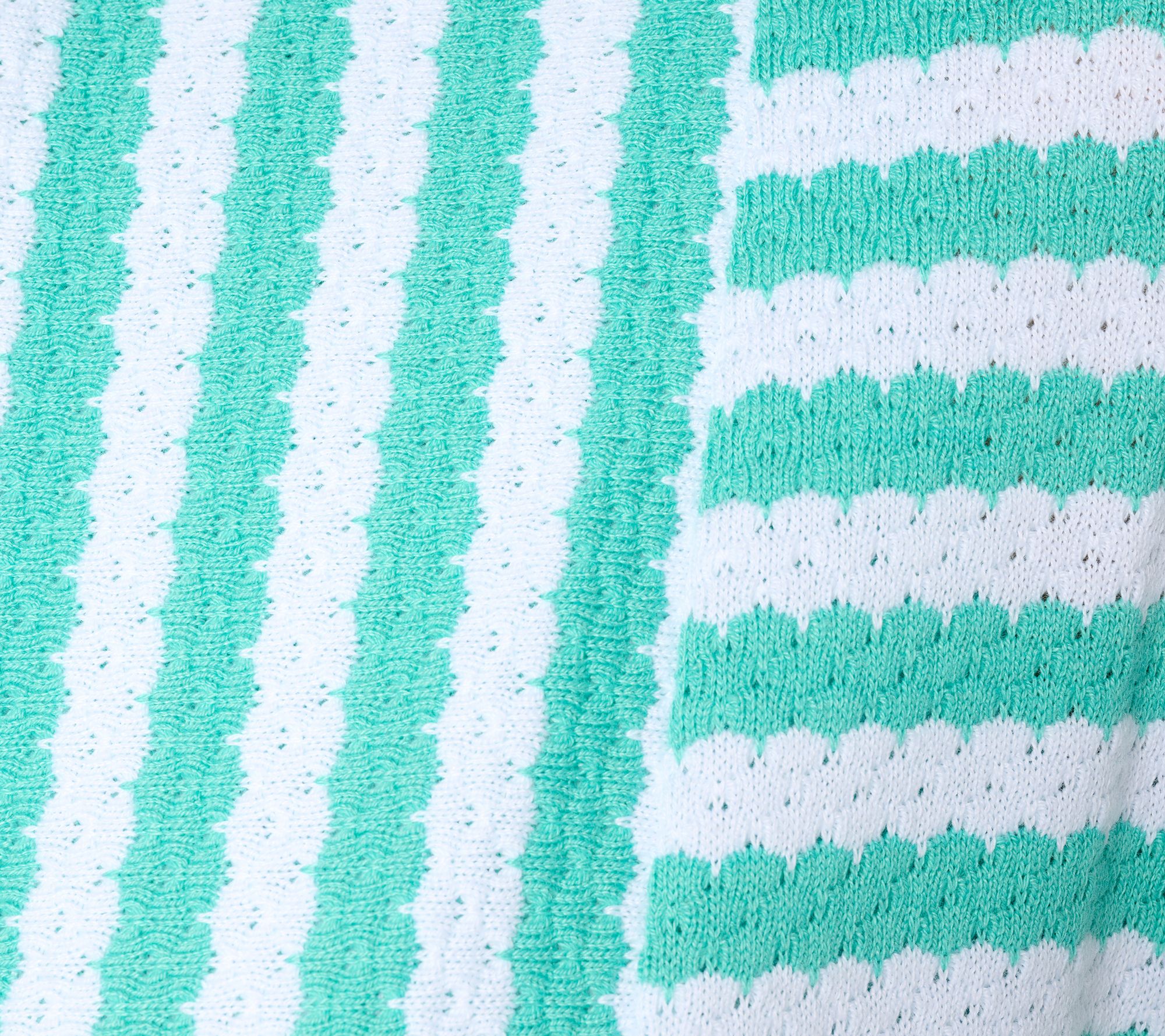 - Features: striped pattern, open front, long sleeves, patch pockets, straight bottom hem