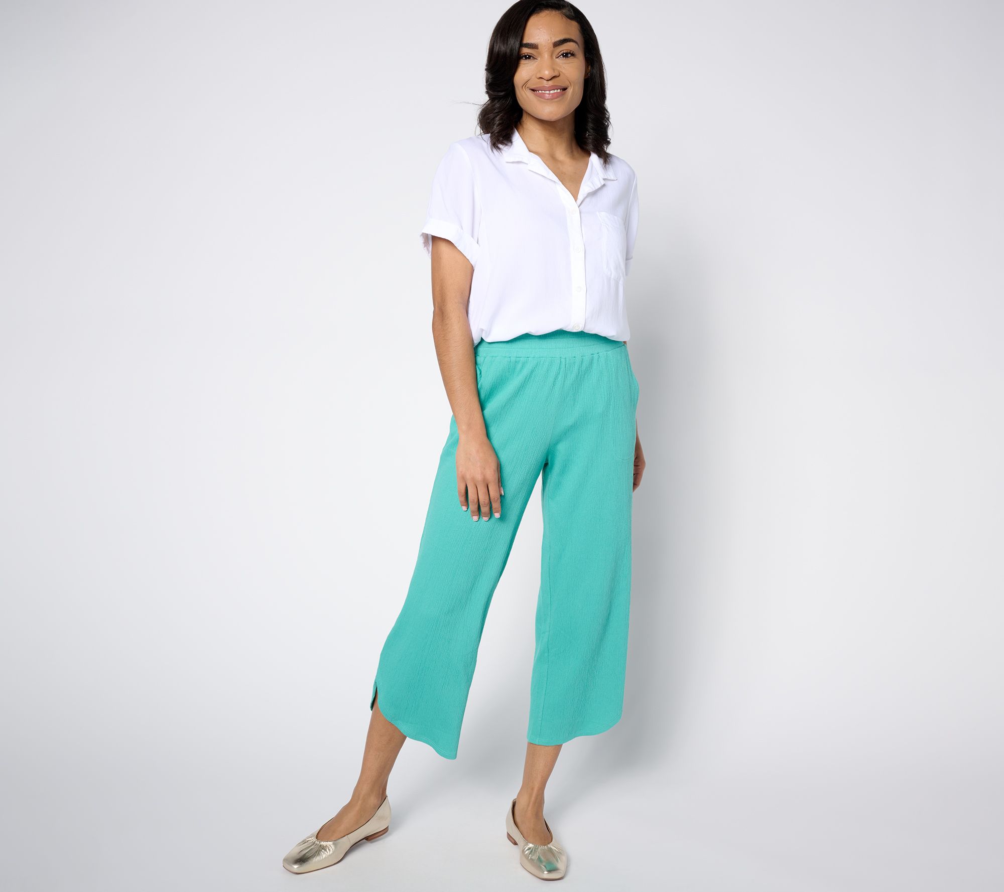 Style is in the (getaway) bag with these on-trend gauchos in easygoing Packabelle knit. From Belle by Kim Gravel.